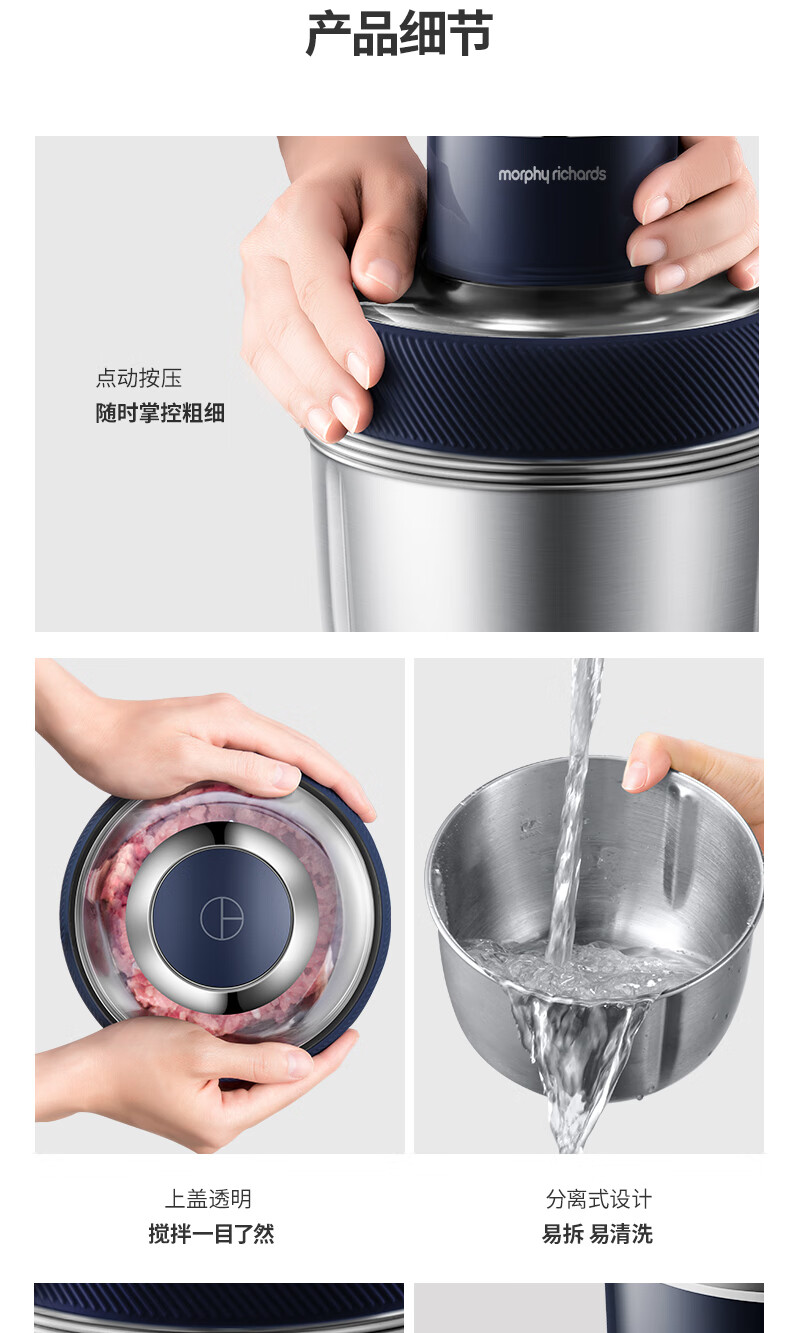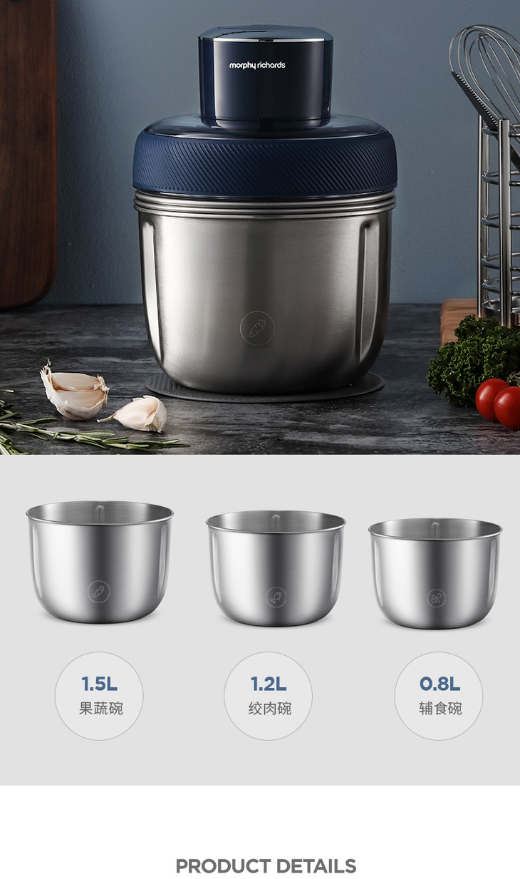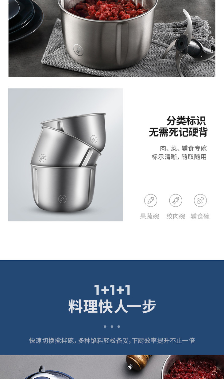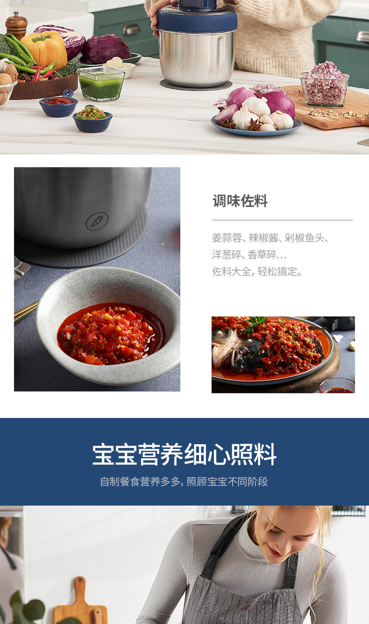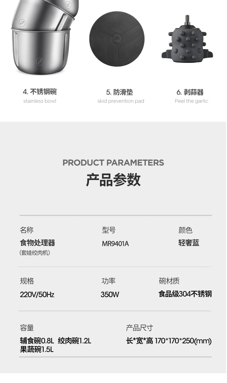 摩飞绞肉机家用自动料理机打碎肉辣椒小型大功率电动迷你多功能婴儿辅食机304不锈钢MR9401A 轻奢蓝