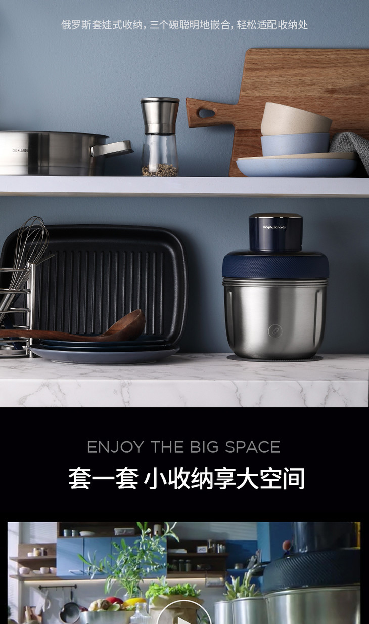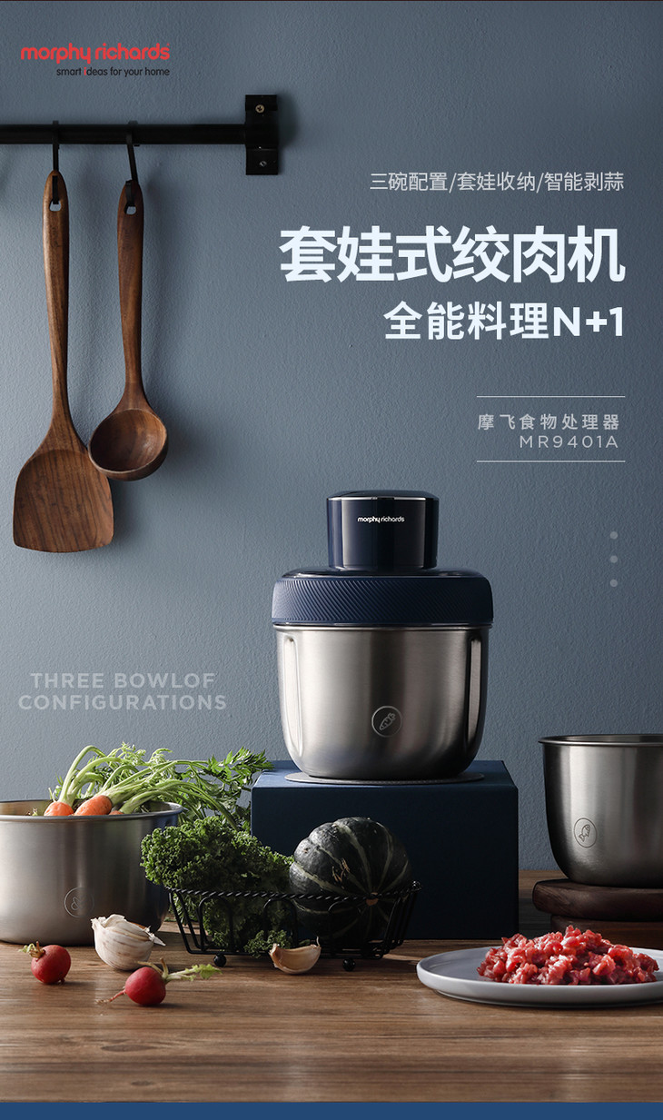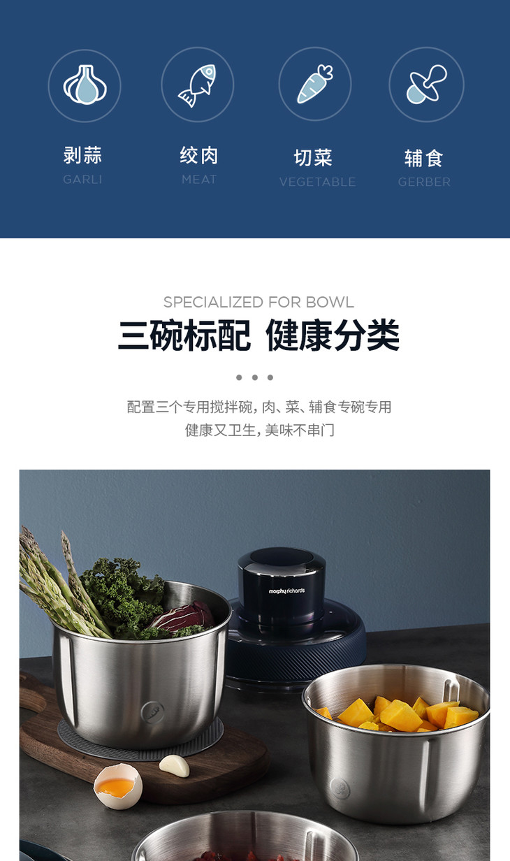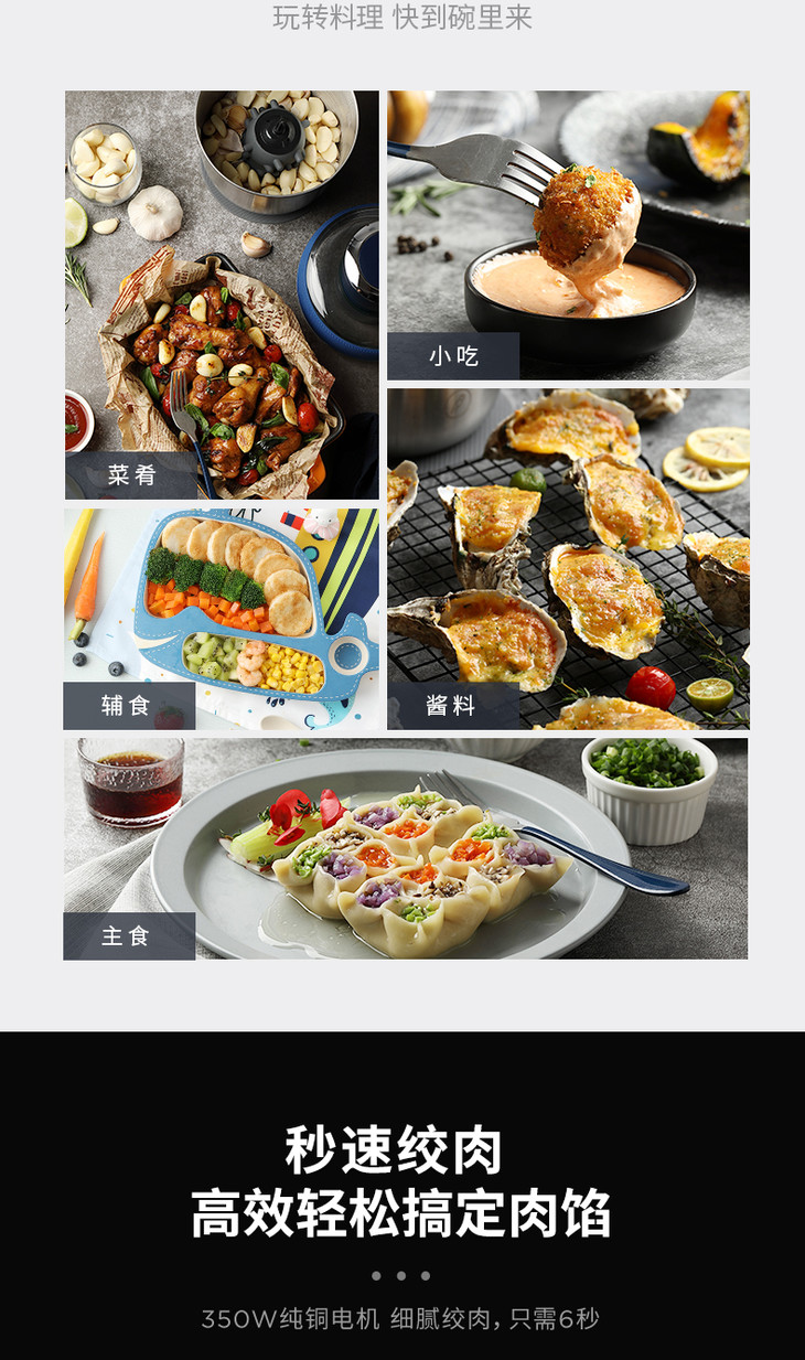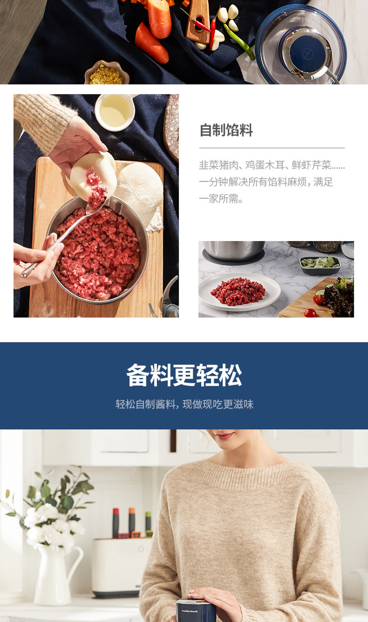 摩飞绞肉机家用自动料理机打碎肉辣椒小型大功率电动迷你多功能婴儿辅食机304不锈钢MR9401A 轻奢蓝