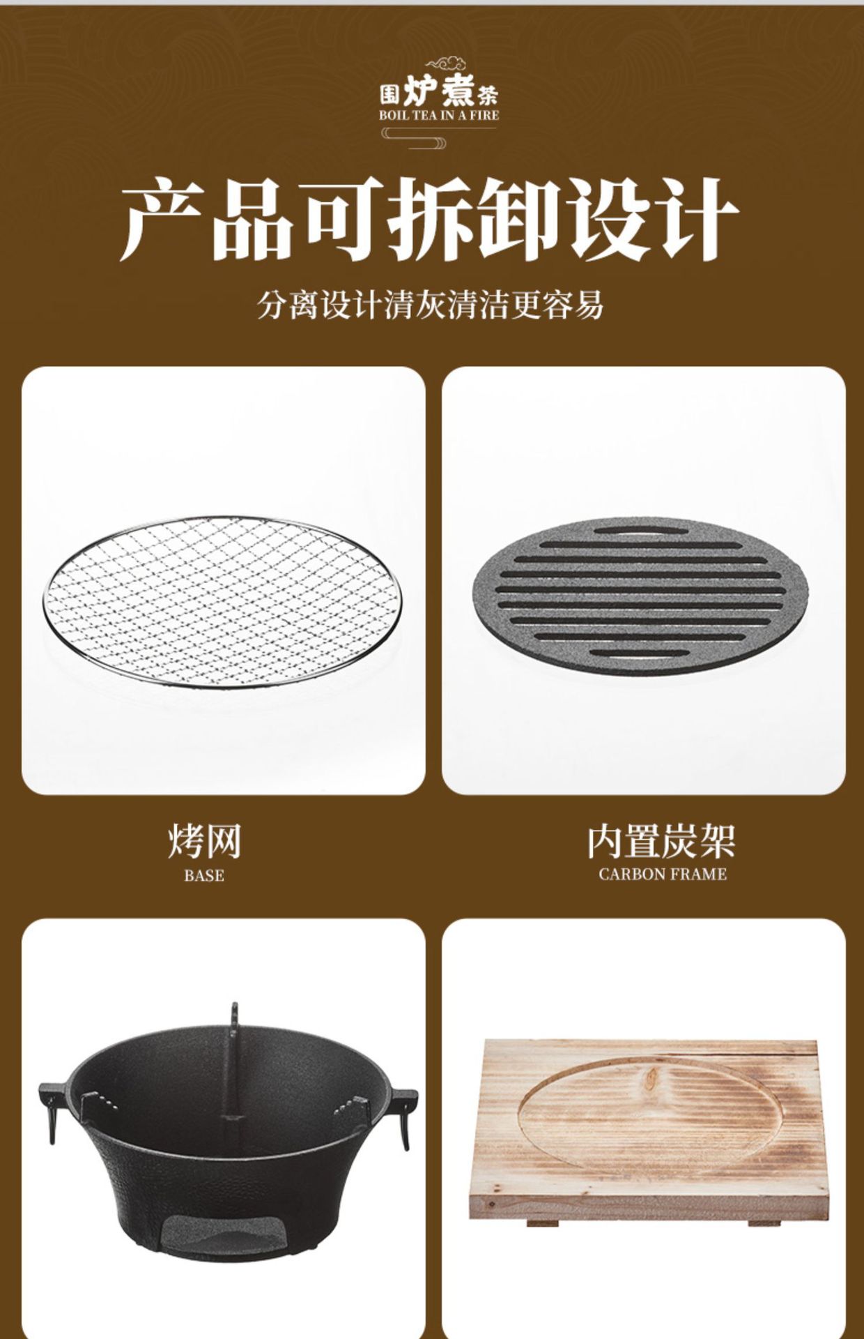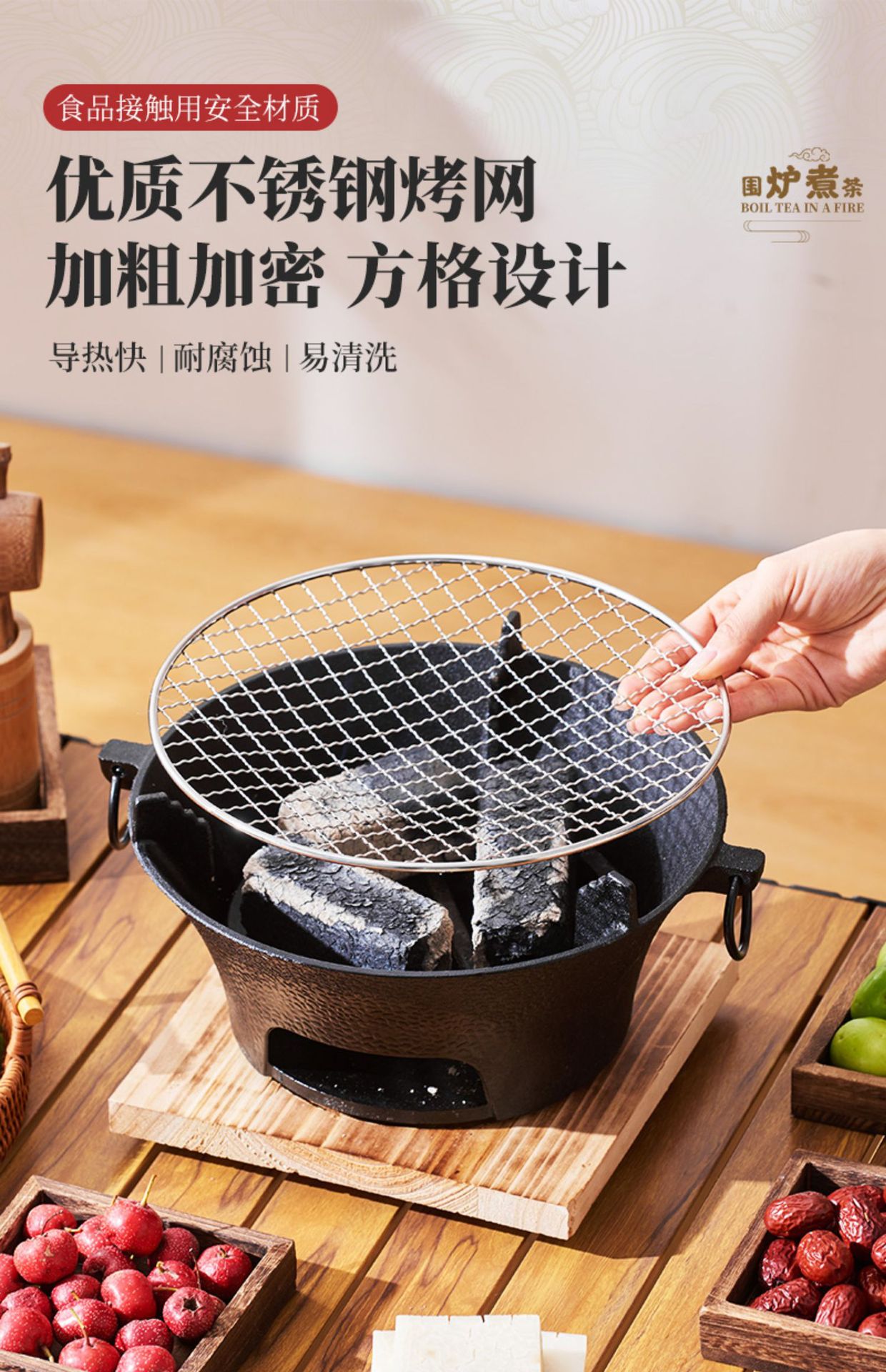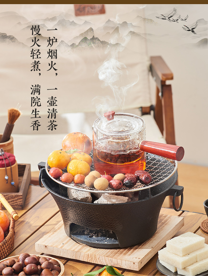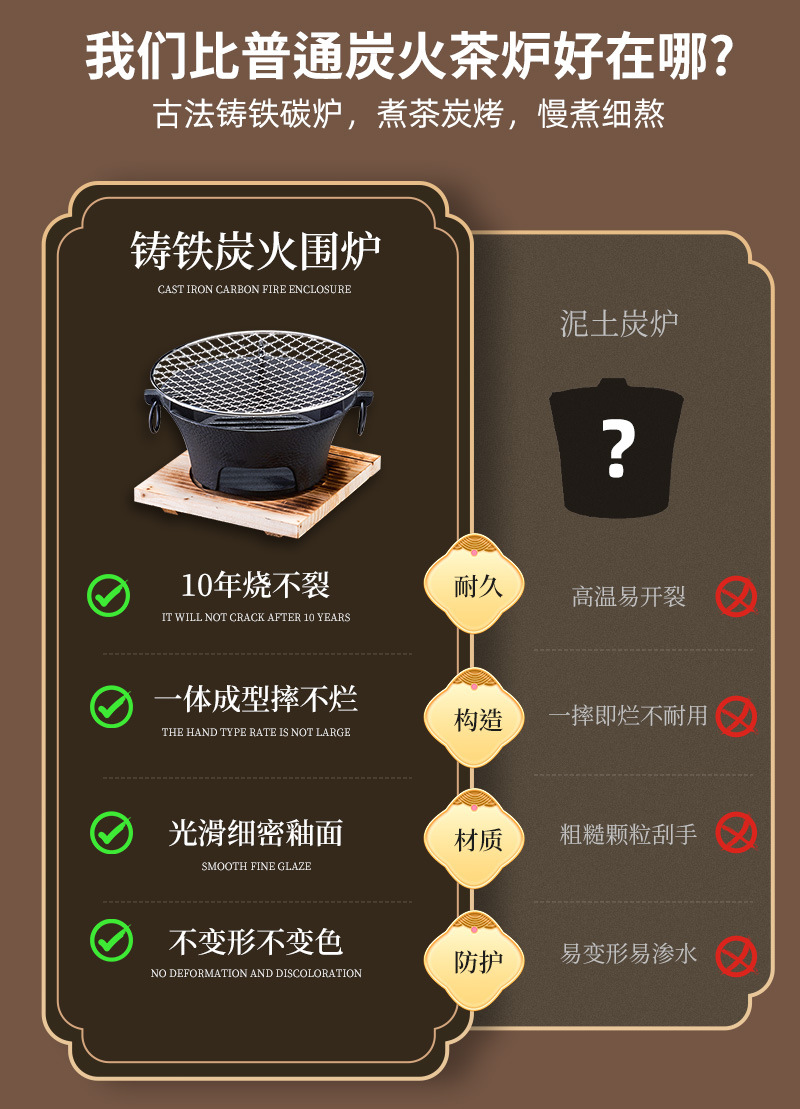 铸铁炭炉烧烤炉取暖碳火炉围炉煮茶家用室内器具全套烤茶泥炉套装