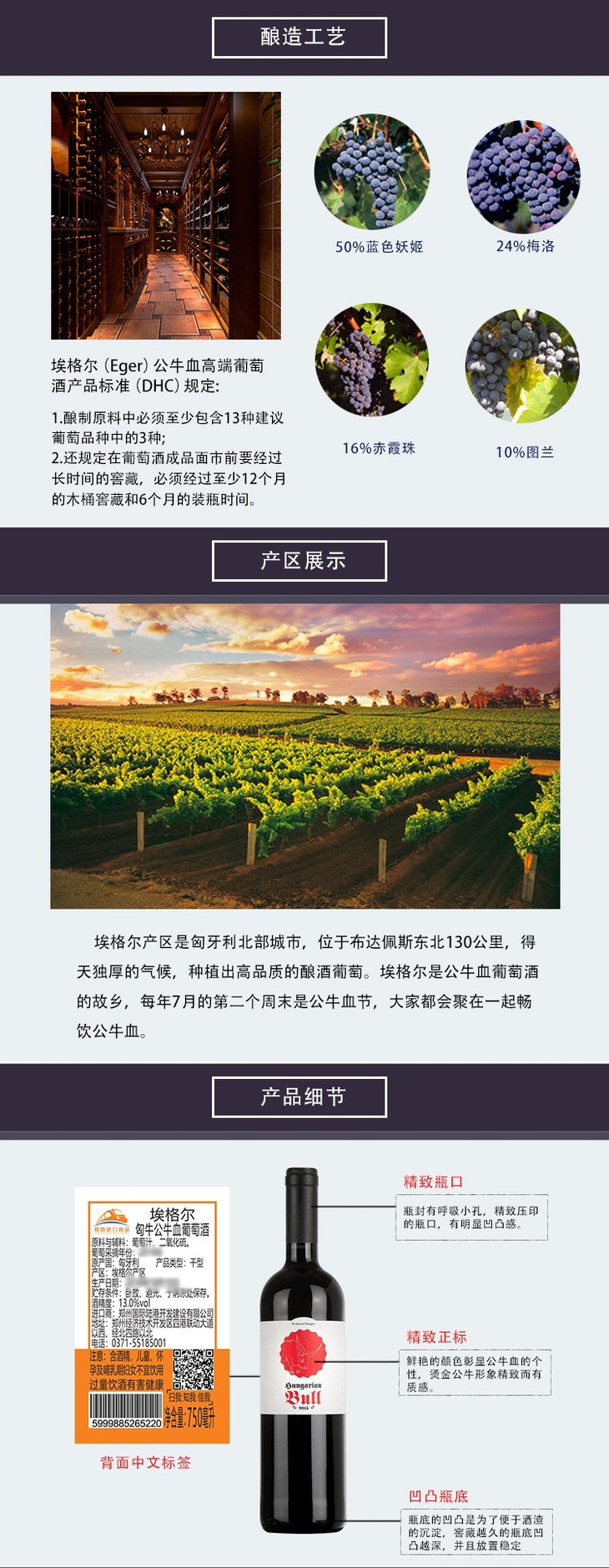 【中欧班列直供 】匈牙利进口 阿尔帕德埃格尔匈牛公牛血葡萄酒750ml/瓶