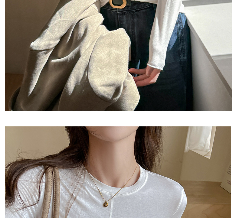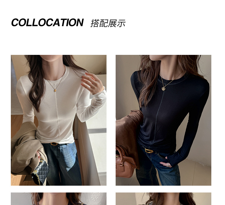 早秋莫代尔圆领设计感打底衫女内搭秋冬季高级感简约长袖t恤上衣 商品图4