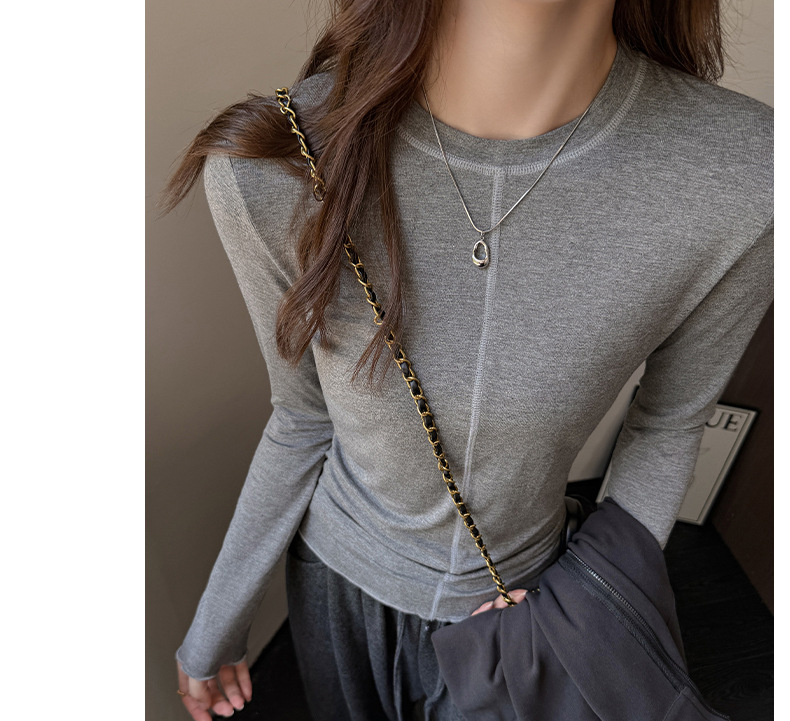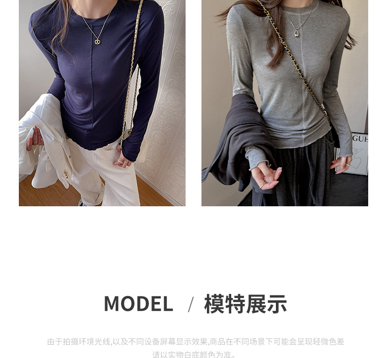 早秋莫代尔圆领设计感打底衫女内搭秋冬季高级感简约长袖t恤上衣 商品图6