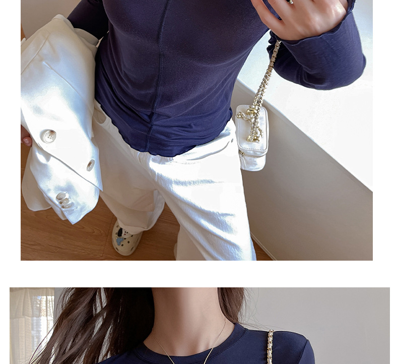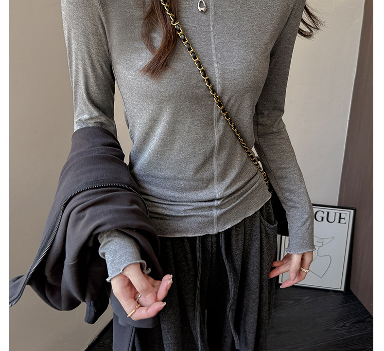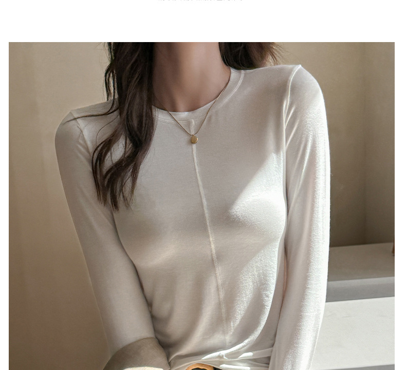 早秋莫代尔圆领设计感打底衫女内搭秋冬季高级感简约长袖t恤上衣 商品图3
