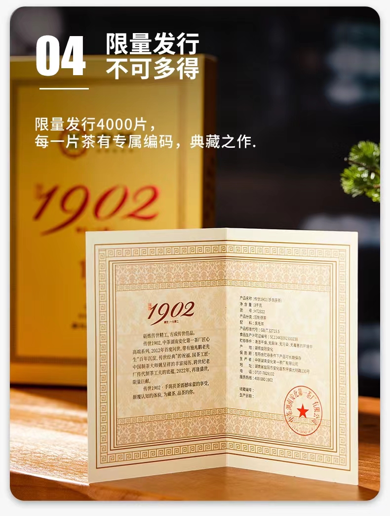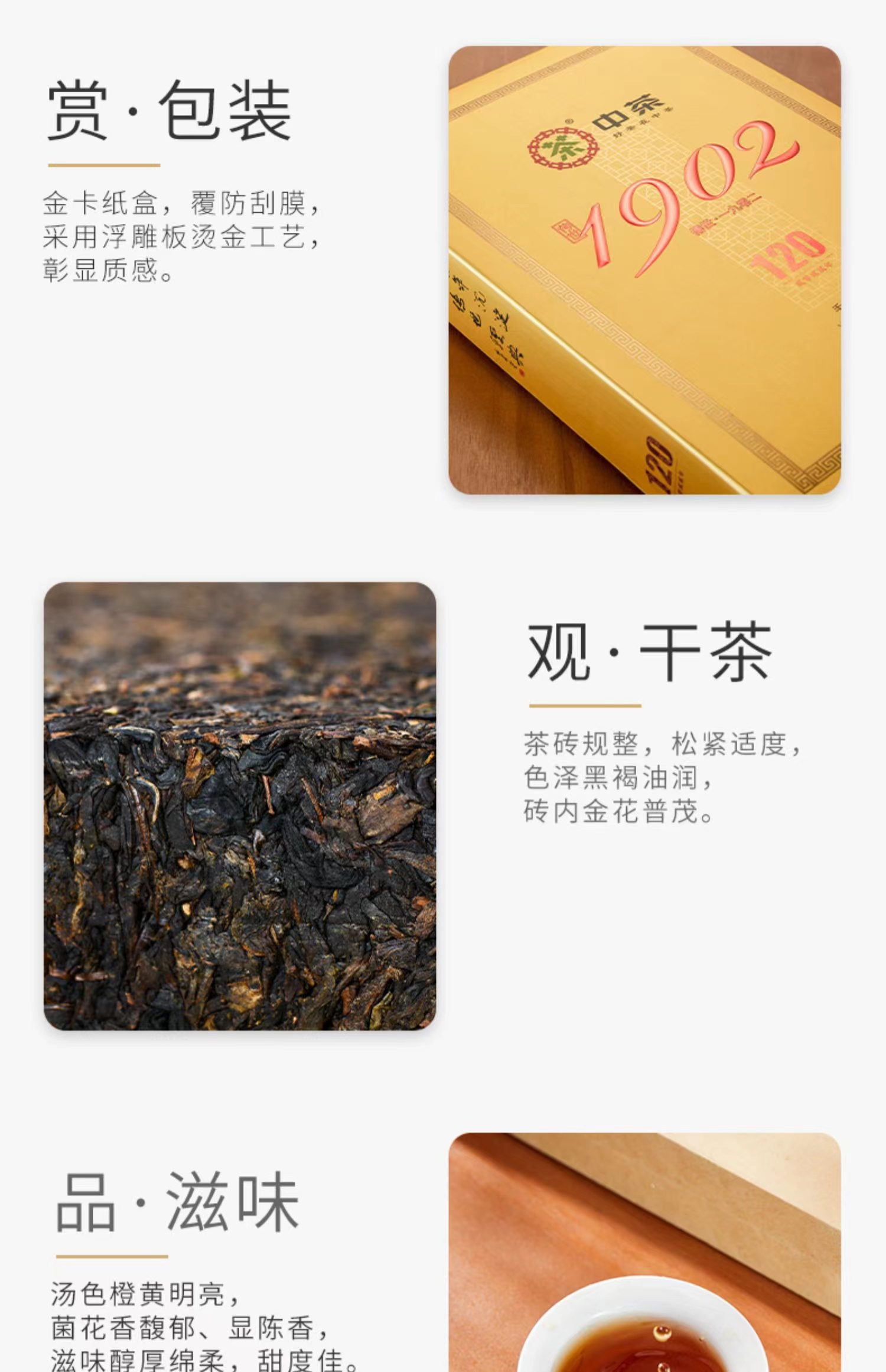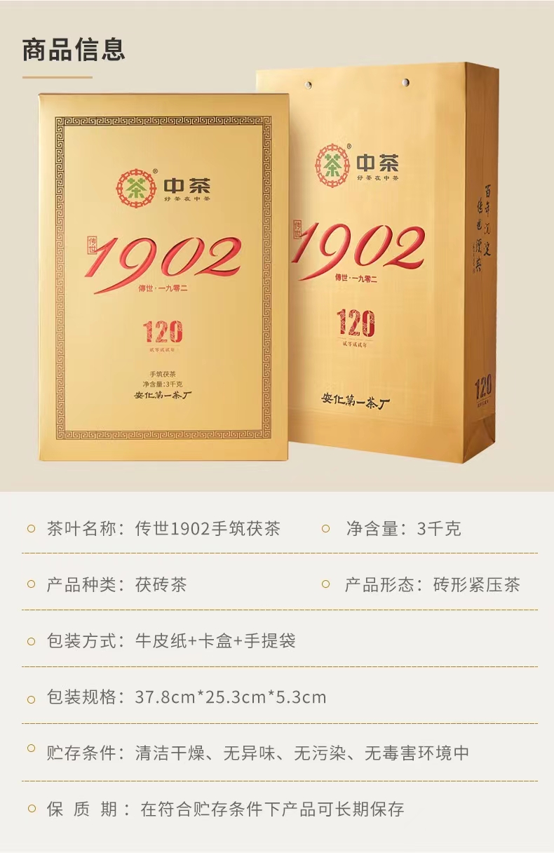 中粮-中茶2022年(厂庆纪念)中茶传世1902手筑茯砖茶3kg中茶安化厂/原产地直发
