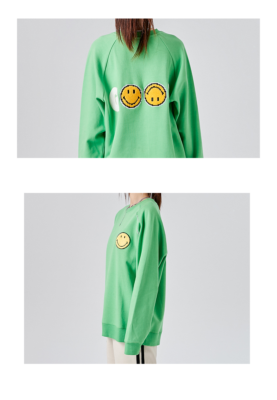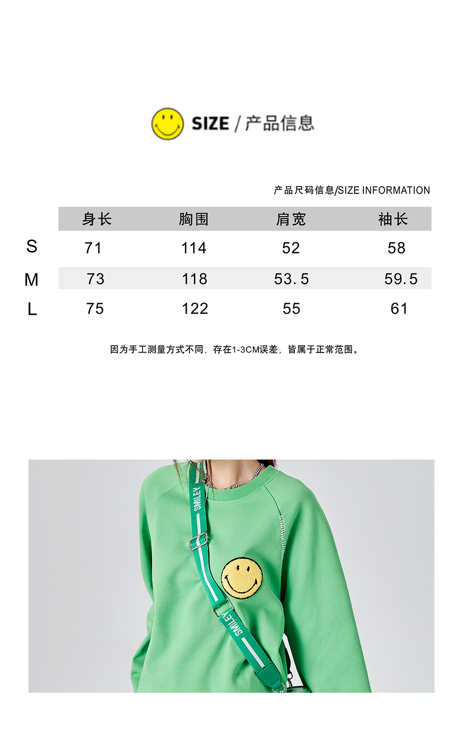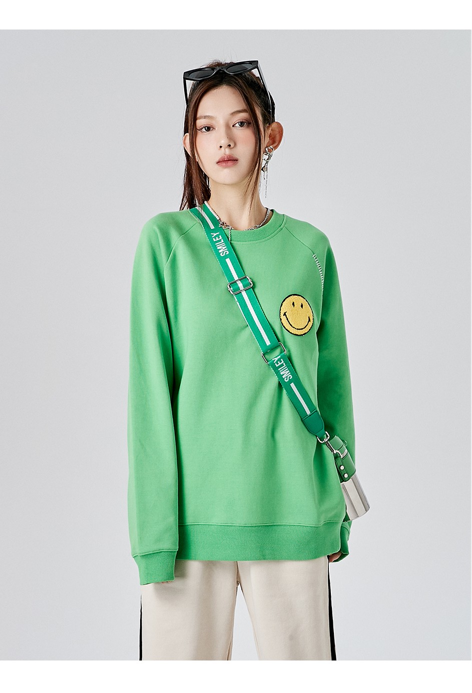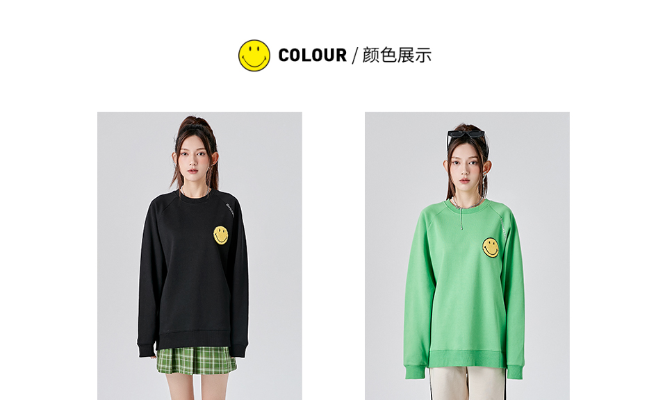 【品名】:字母印花笑脸毛巾刺绣圆领卫衣