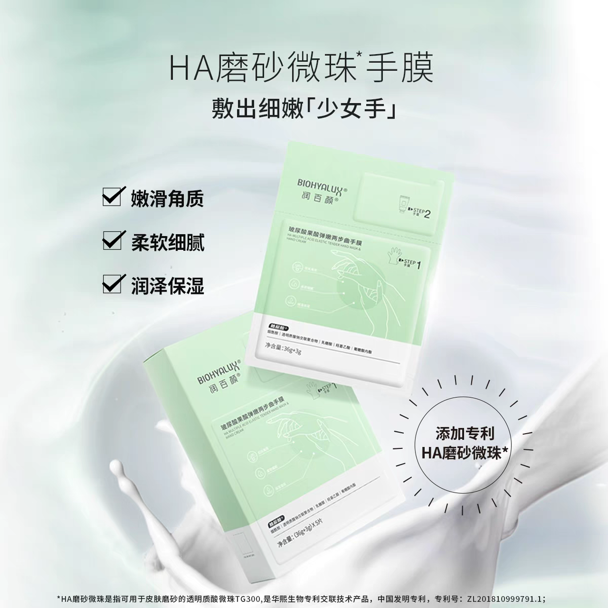 润百颜玻尿酸果酸弹嫩两步曲手膜3盒15片