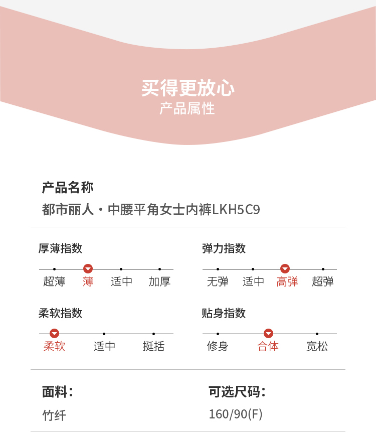 都市丽人纯棉竹纤舒肤棉高弹裤平角裤LKH5C9