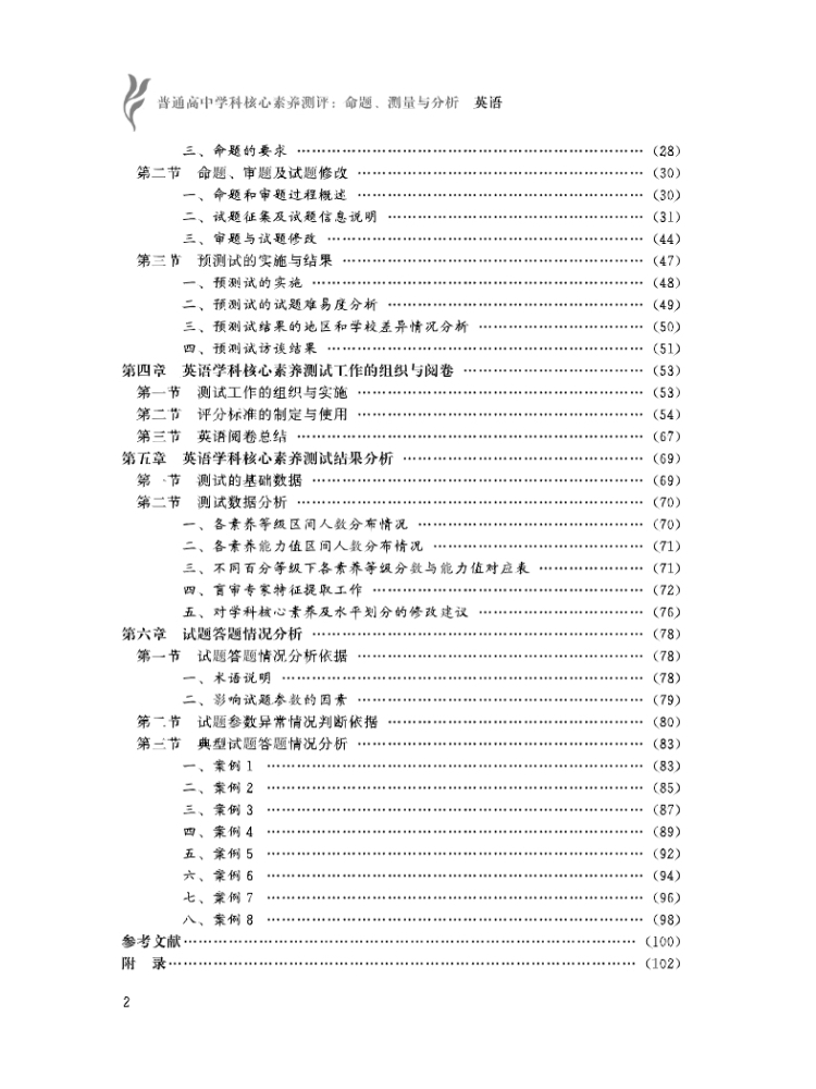 本书基于普通高中英语学科组测评报告,从学科核心素养的理论基础与实践探索、内涵、在课程标准中的体现,以及测评框架、测评命题、测试工作组织、阅卷等角度介绍了此次高中英语课程标准修订过程中的学科核心测评工作,并借助7个典型案例,对试题答题情况进行了详细分析。