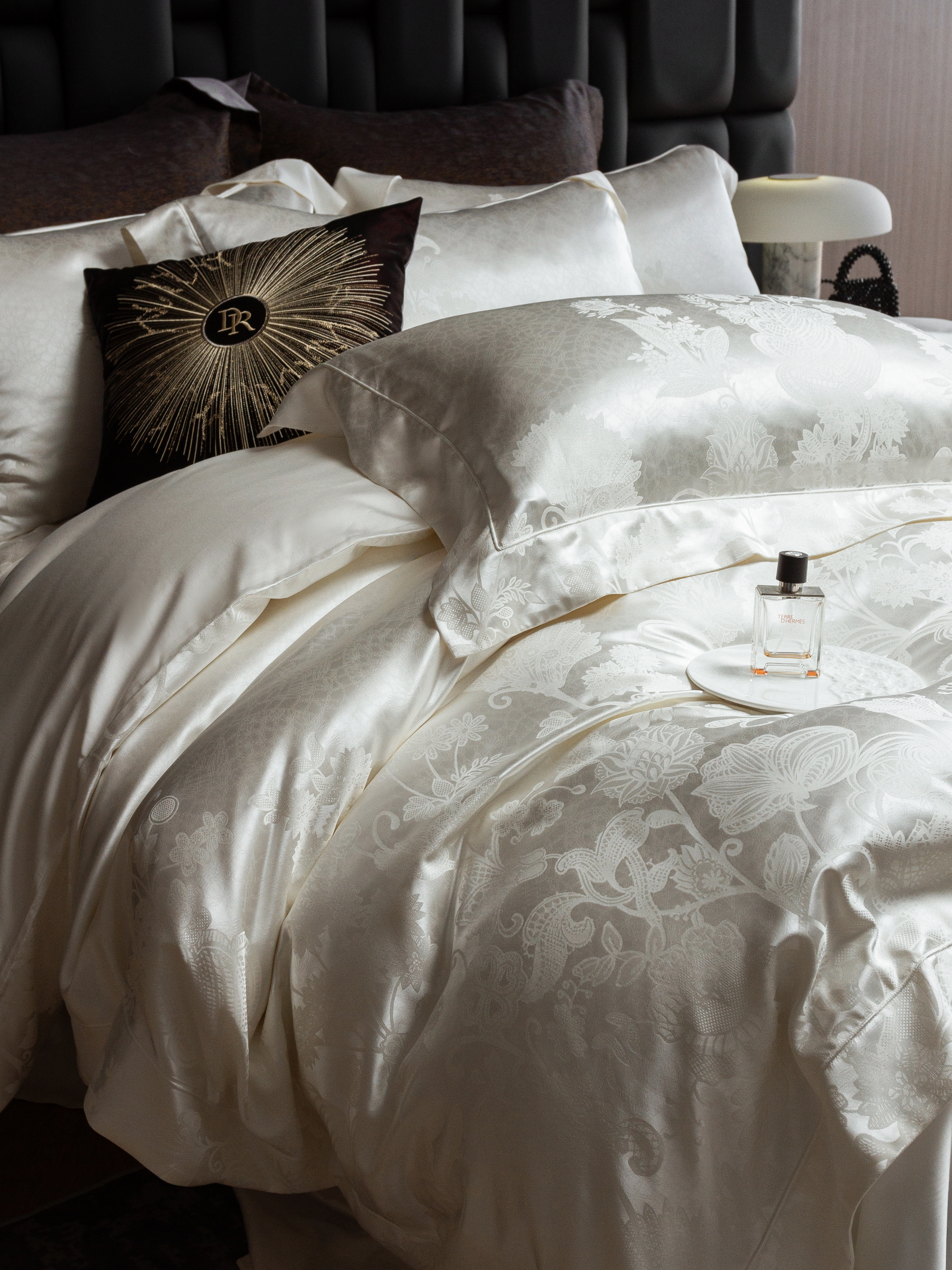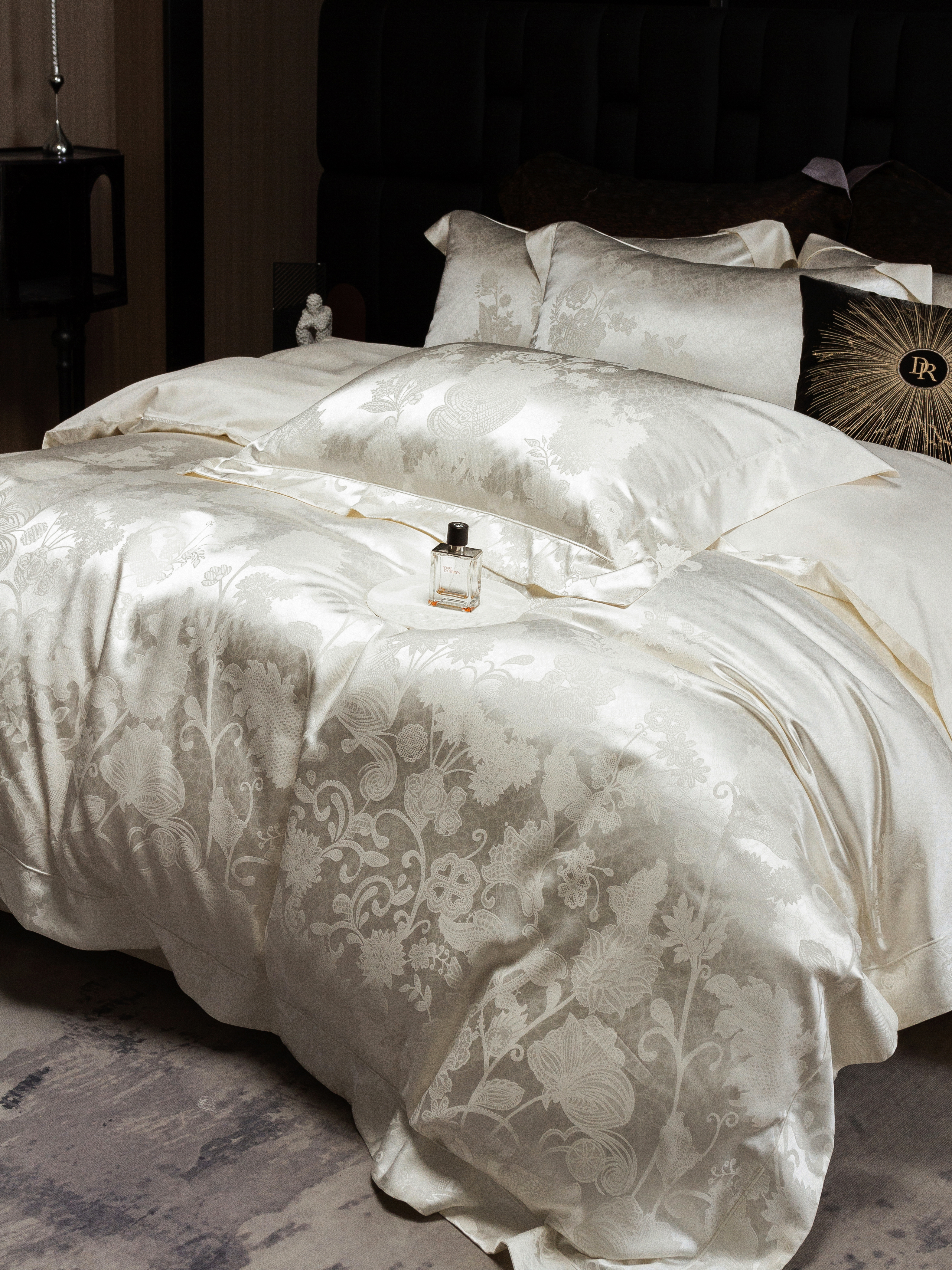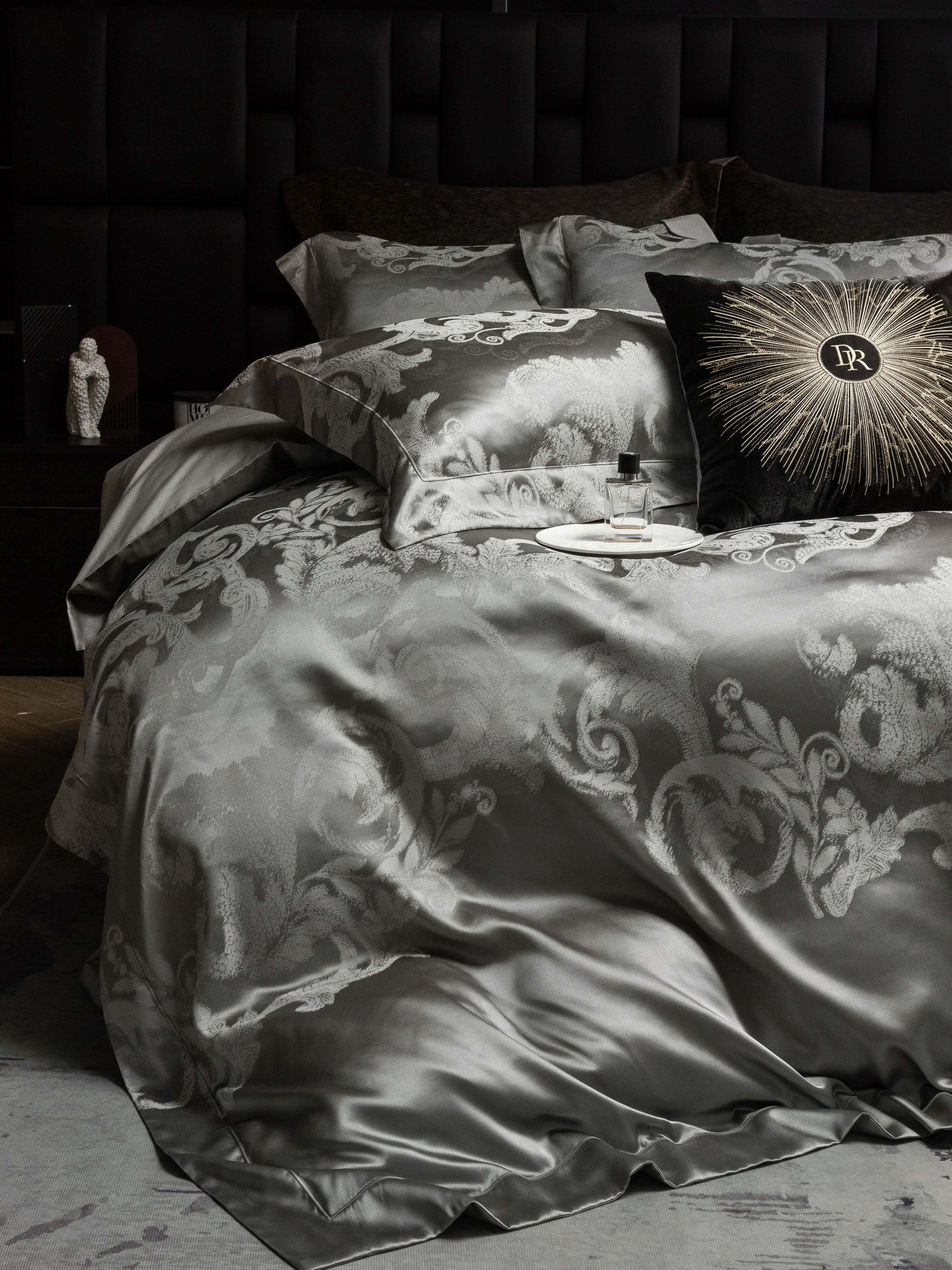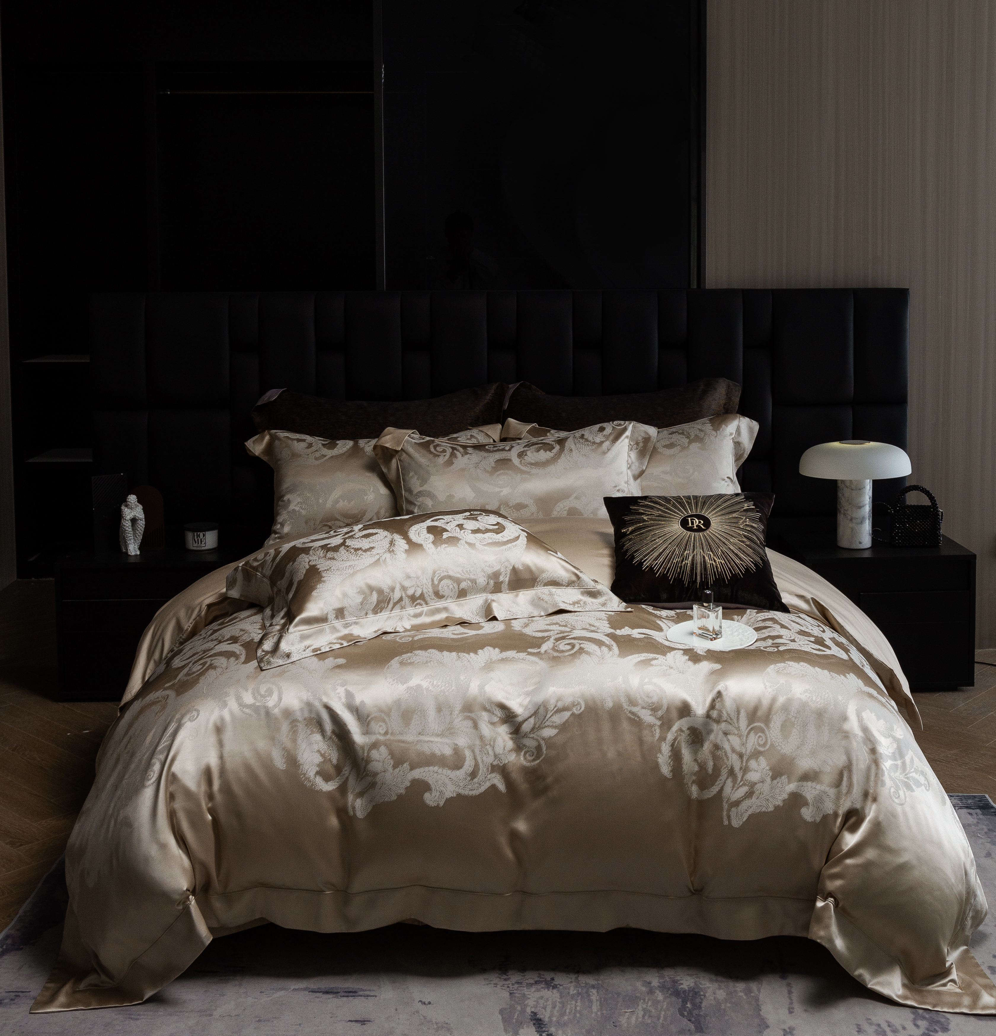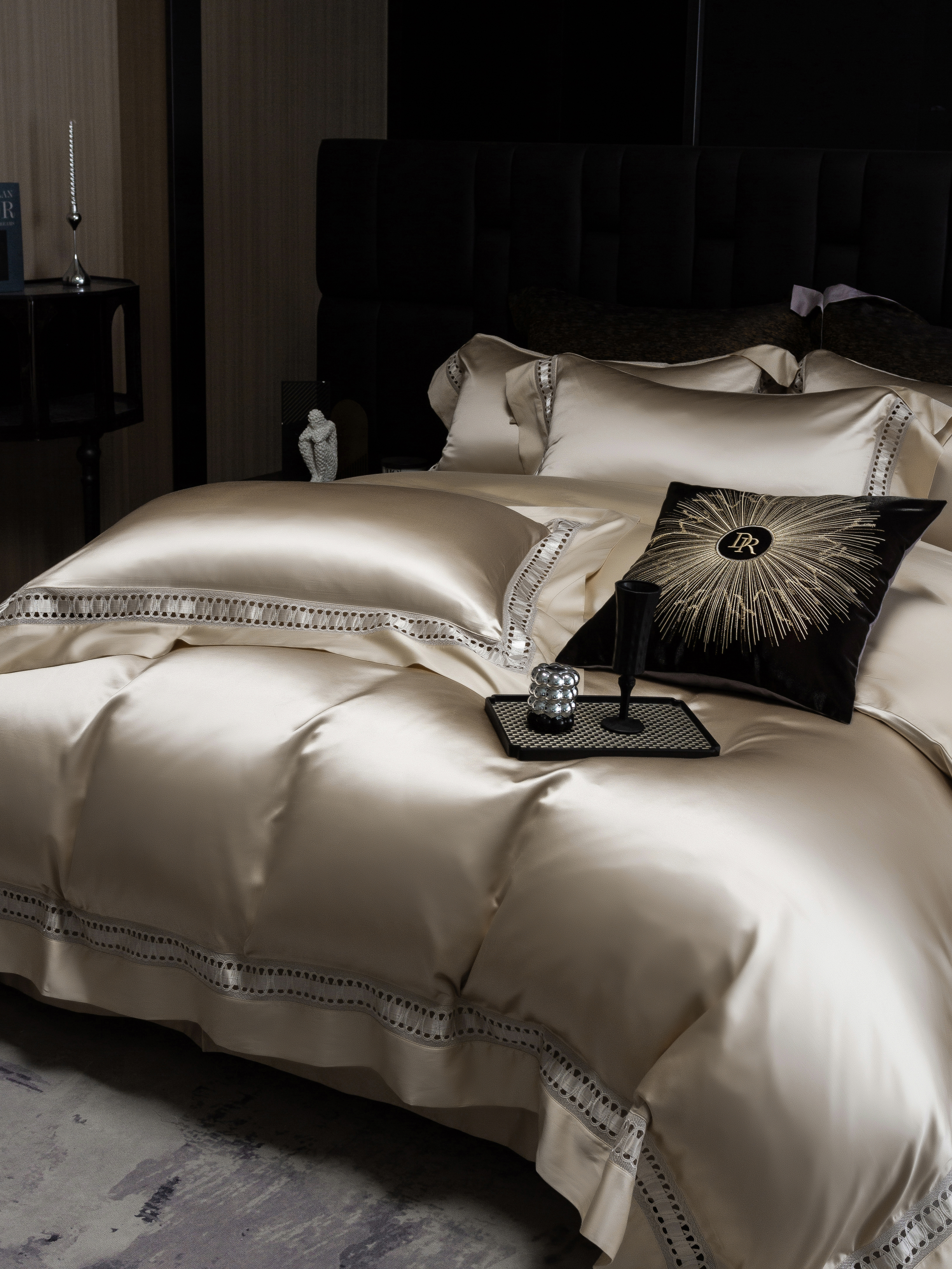自然醒千帧锦丝缎提花镂空纯色四件套高端真丝棉贡缎别墅风凉感冰丝滑床上用品KY