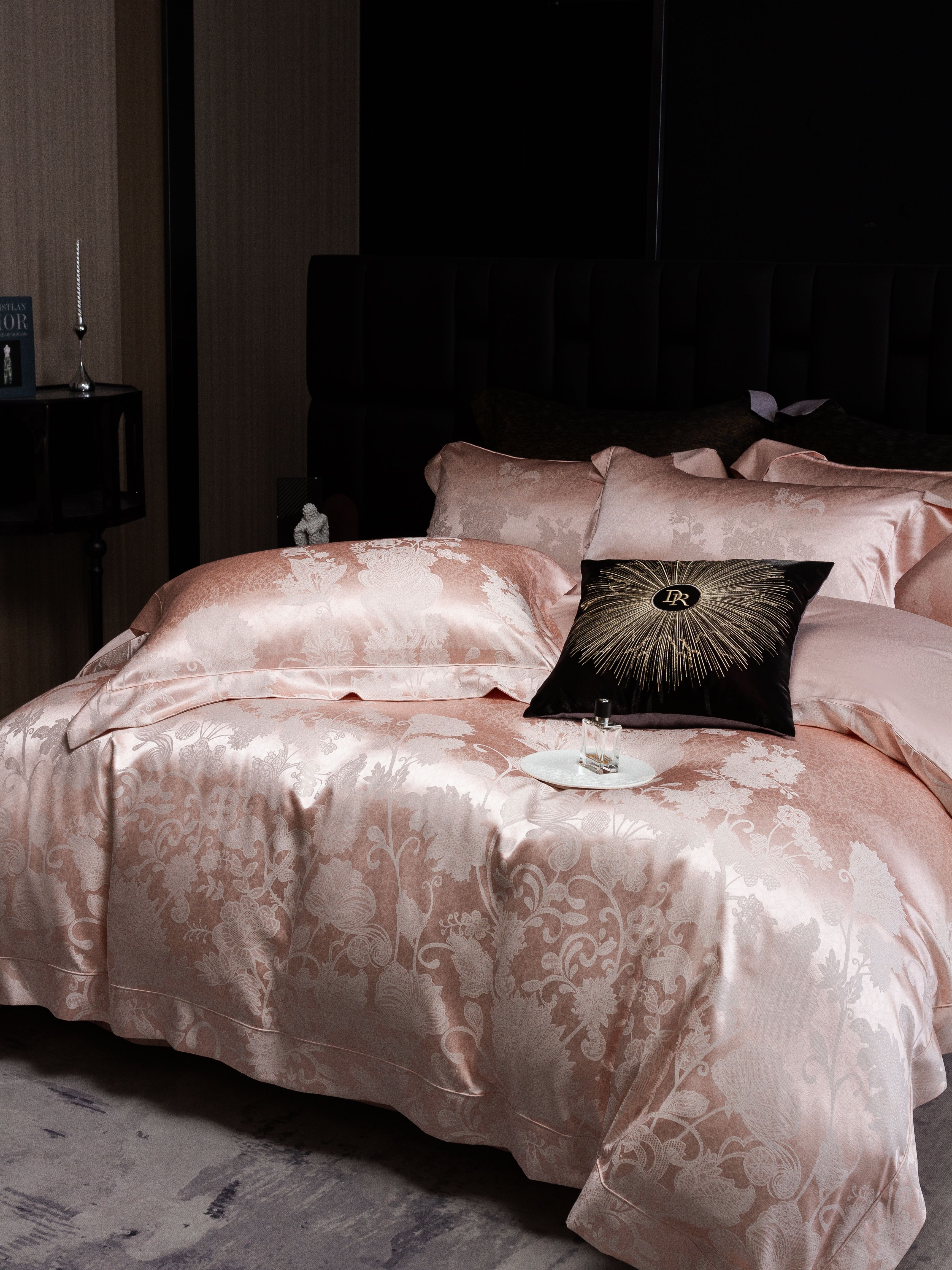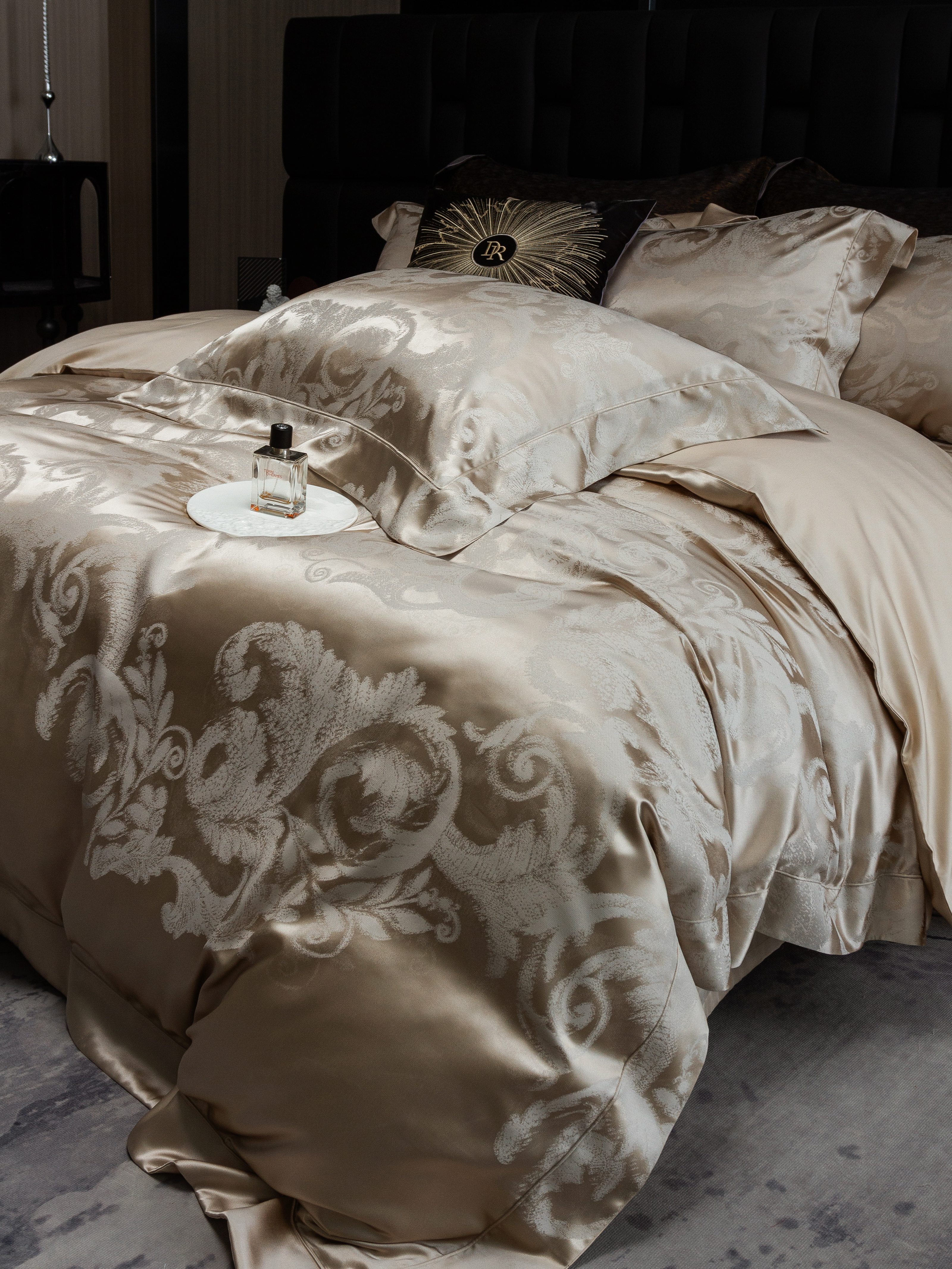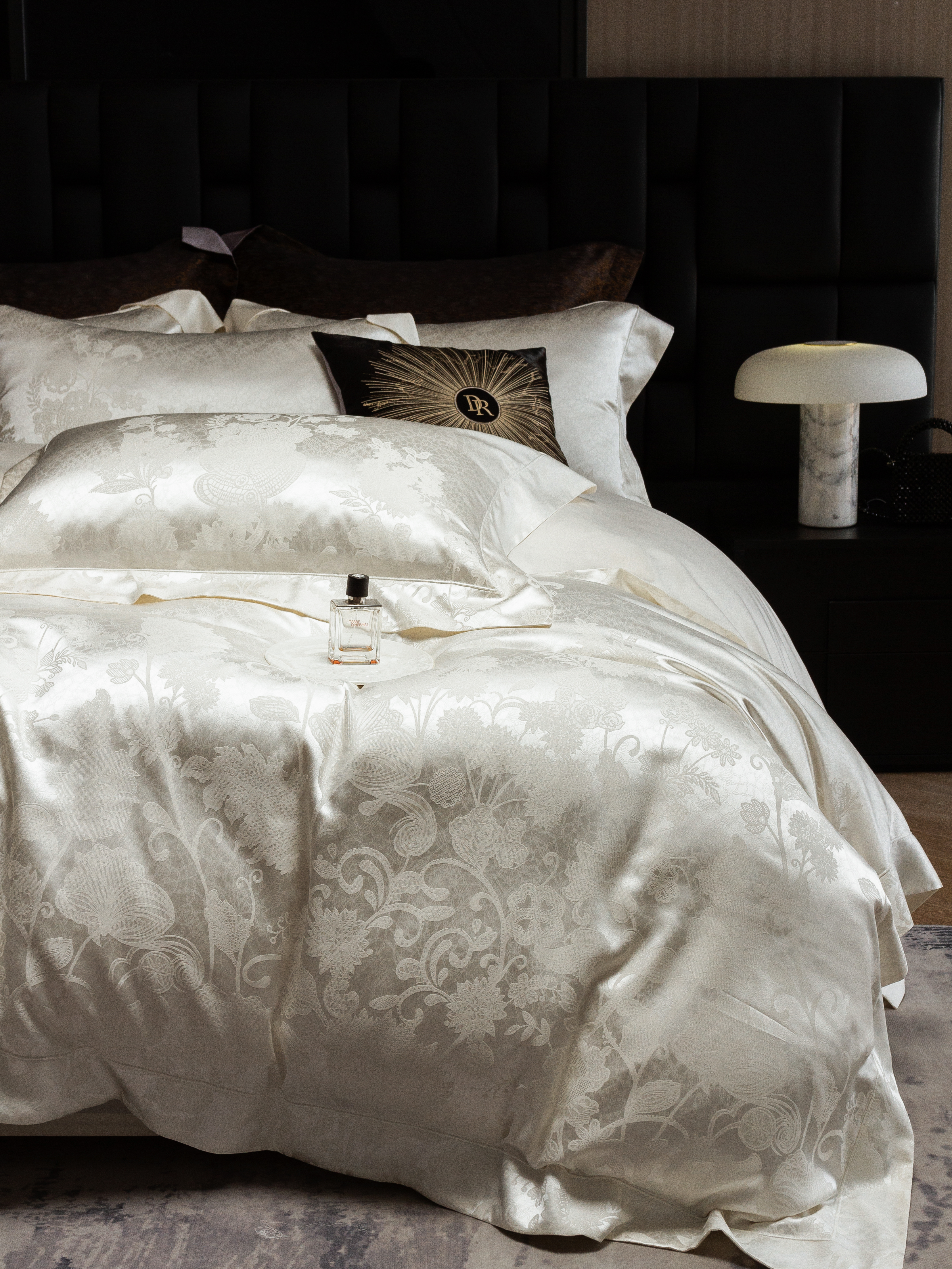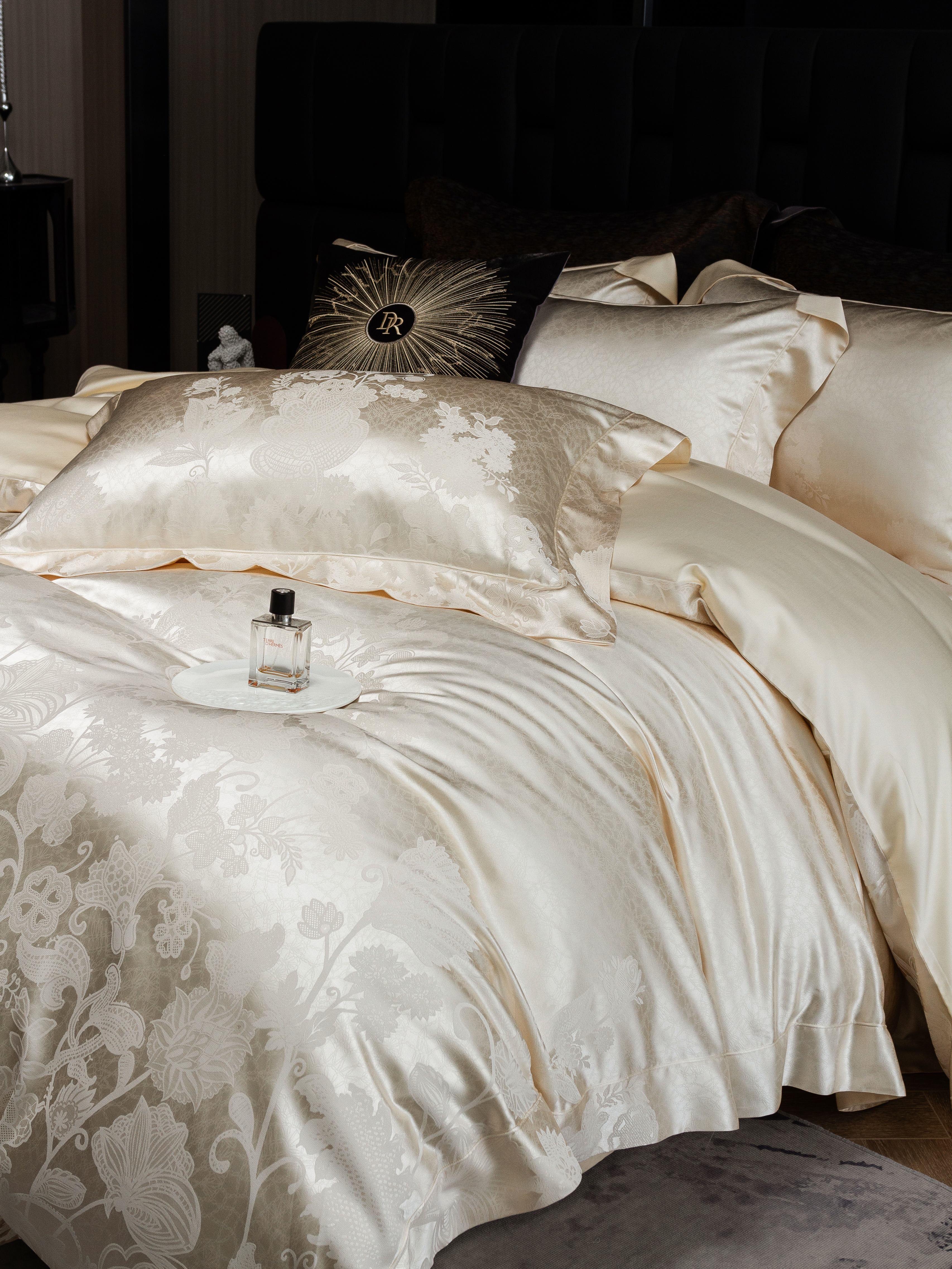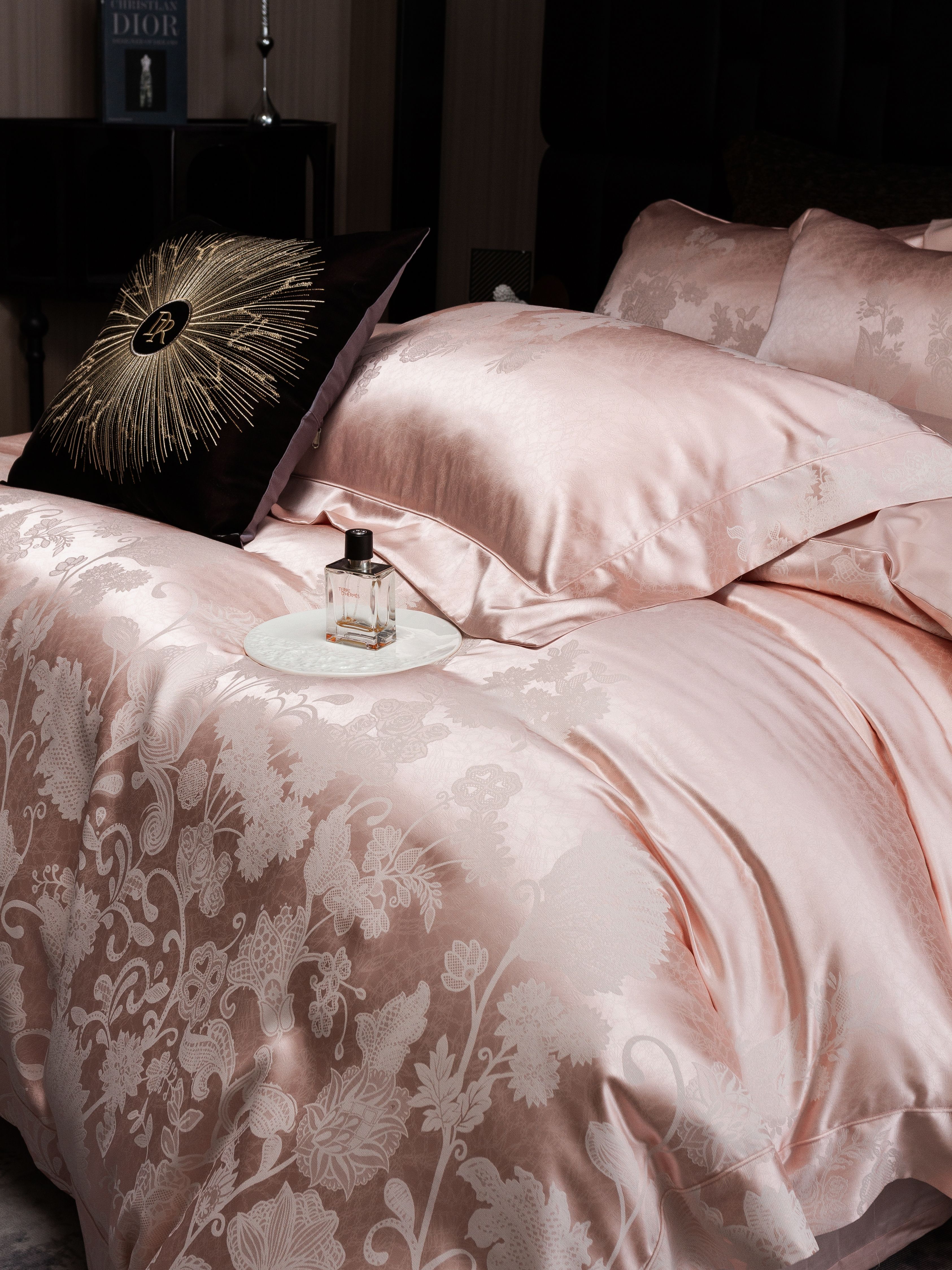 自然醒千帧锦丝缎提花镂空纯色四件套高端真丝棉贡缎别墅风凉感冰丝滑床上用品KY