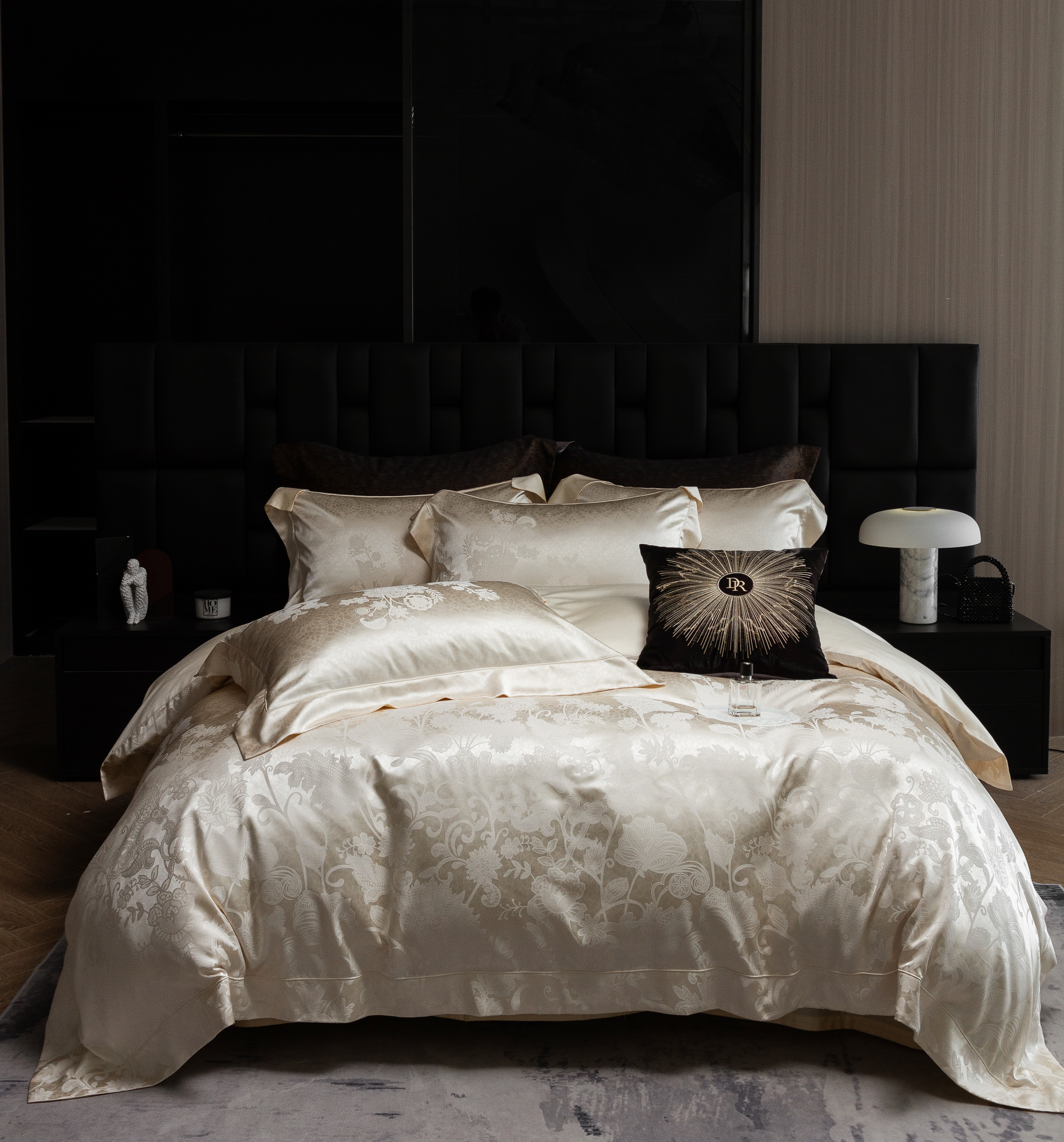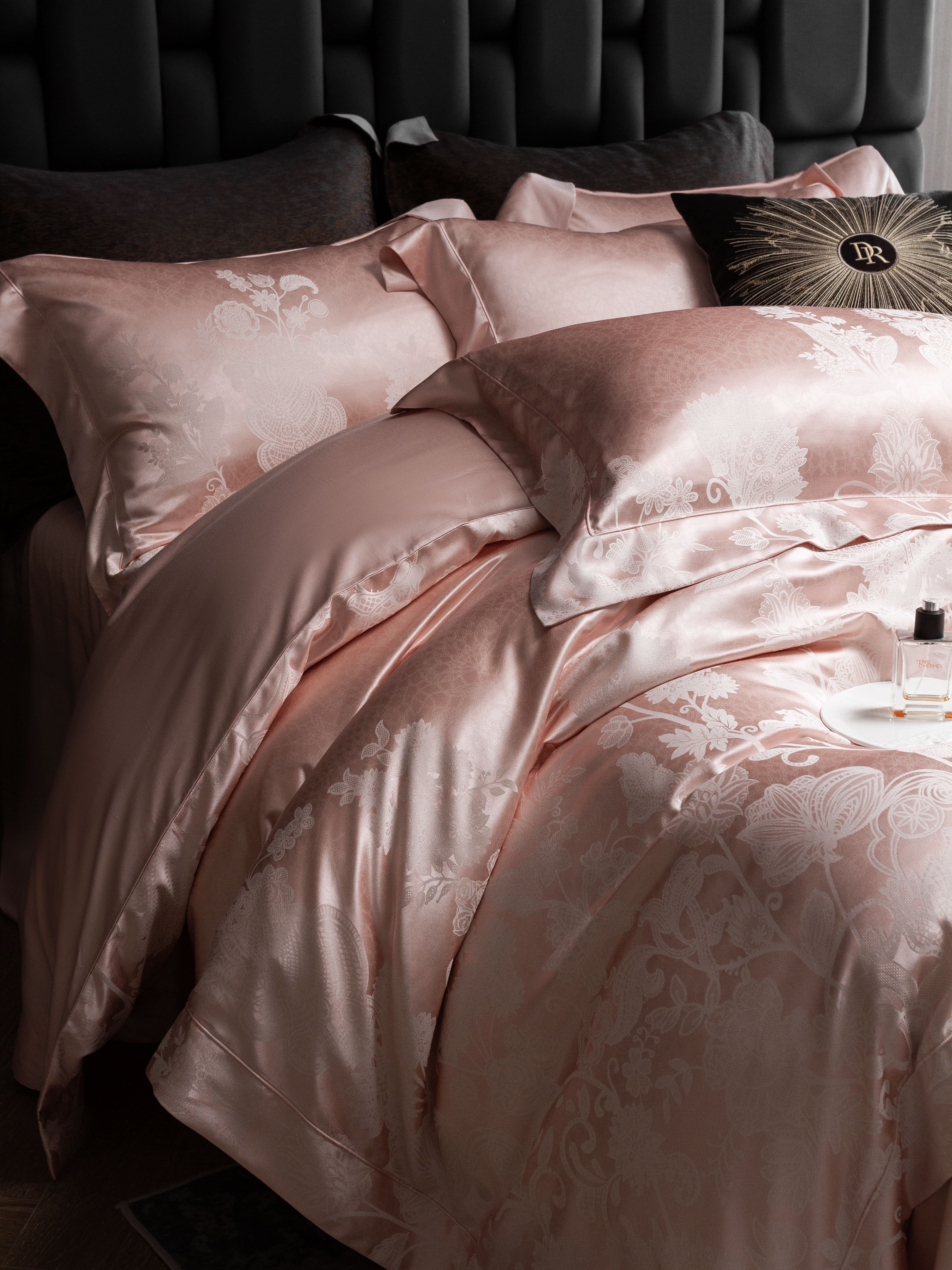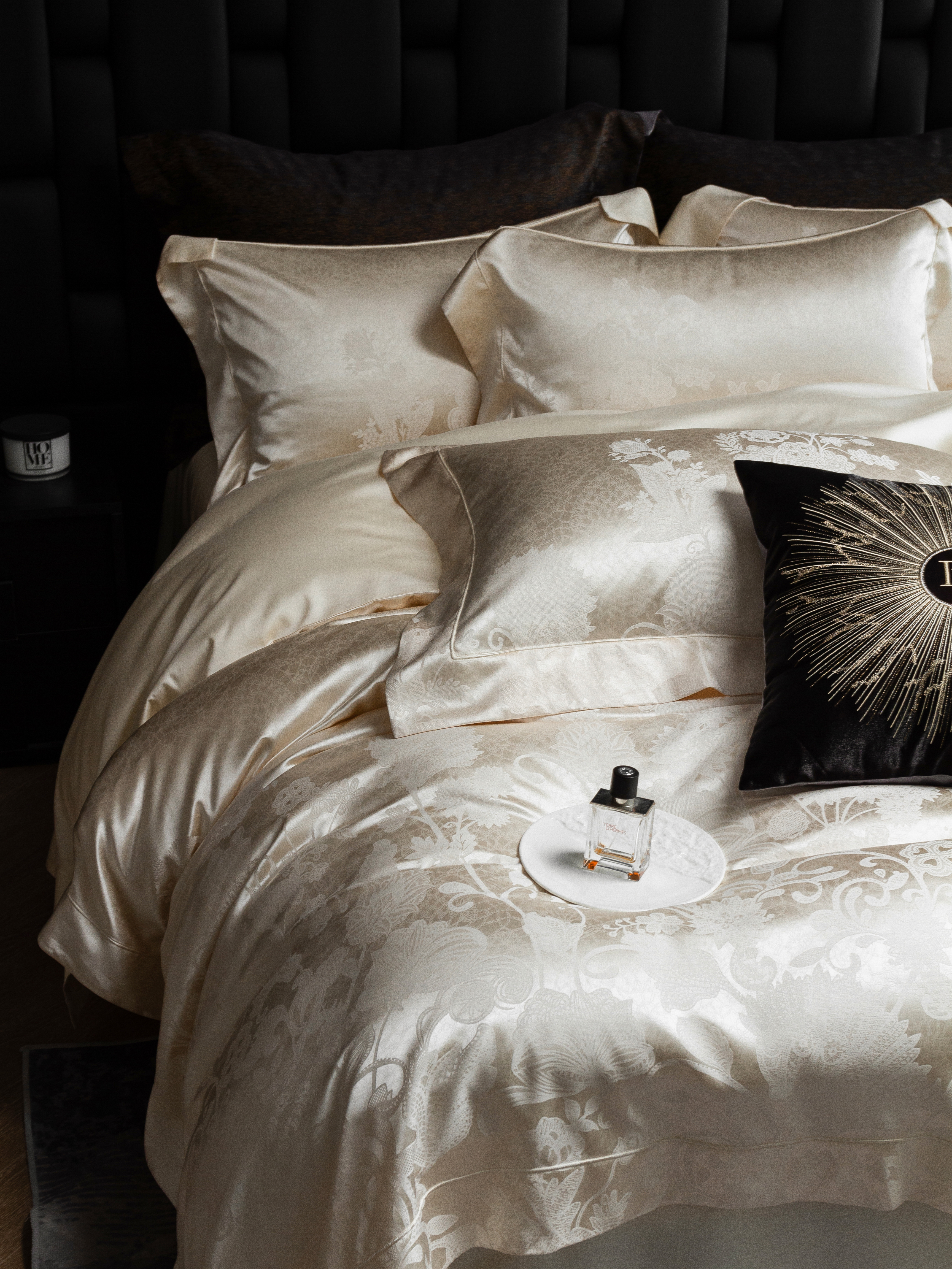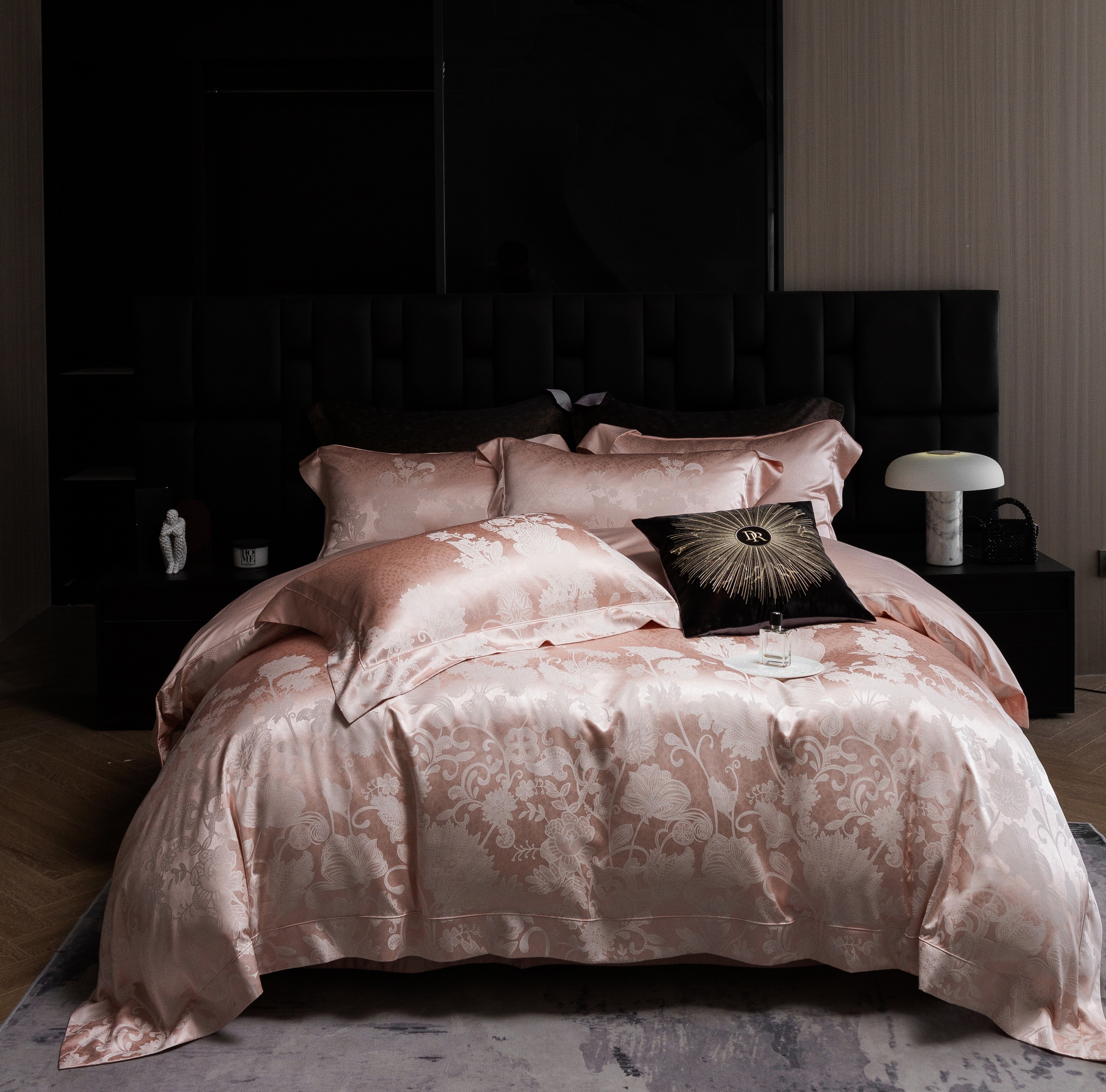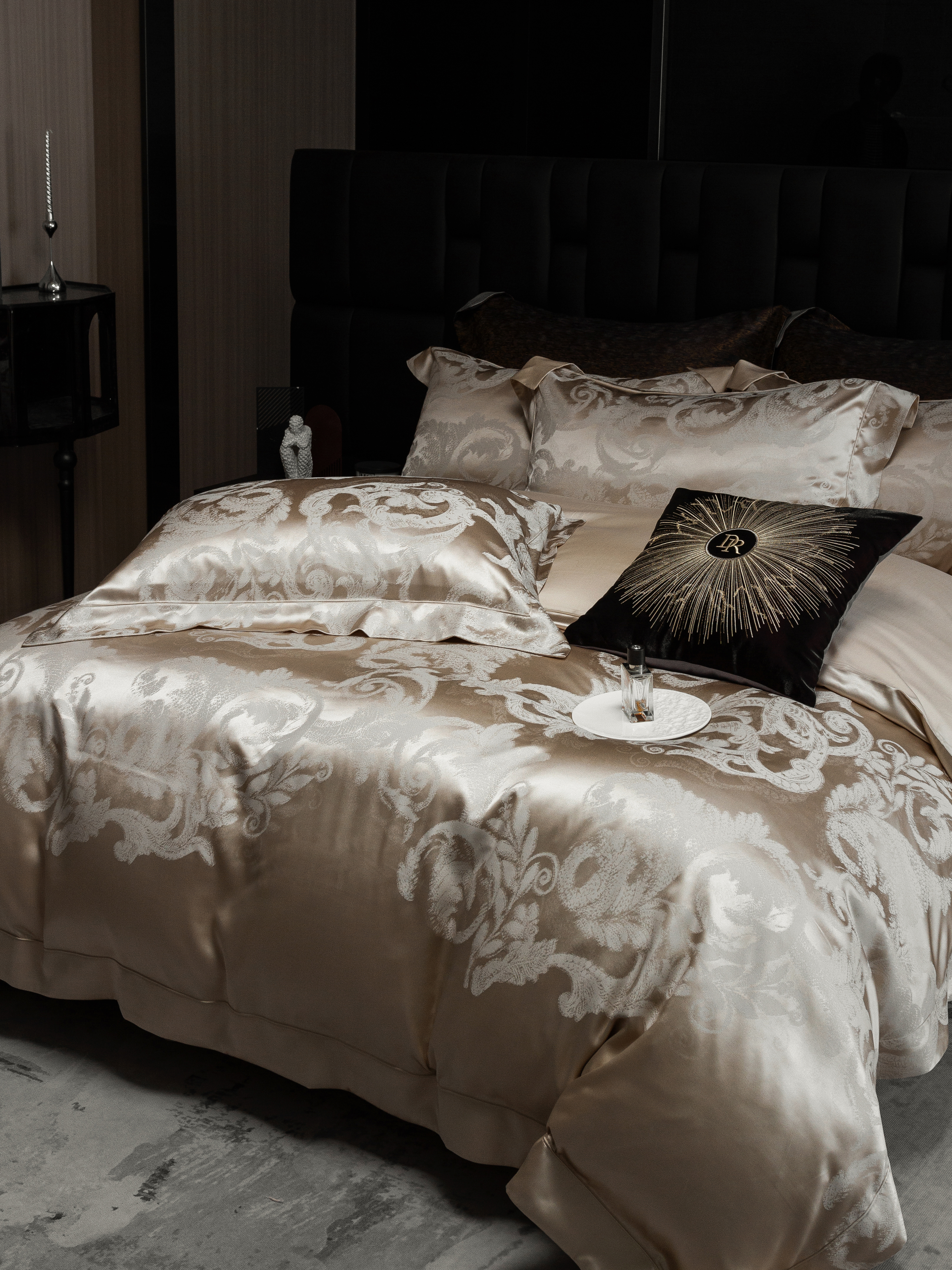 自然醒千帧锦丝缎提花镂空纯色四件套高端真丝棉贡缎别墅风凉感冰丝滑床上用品KY