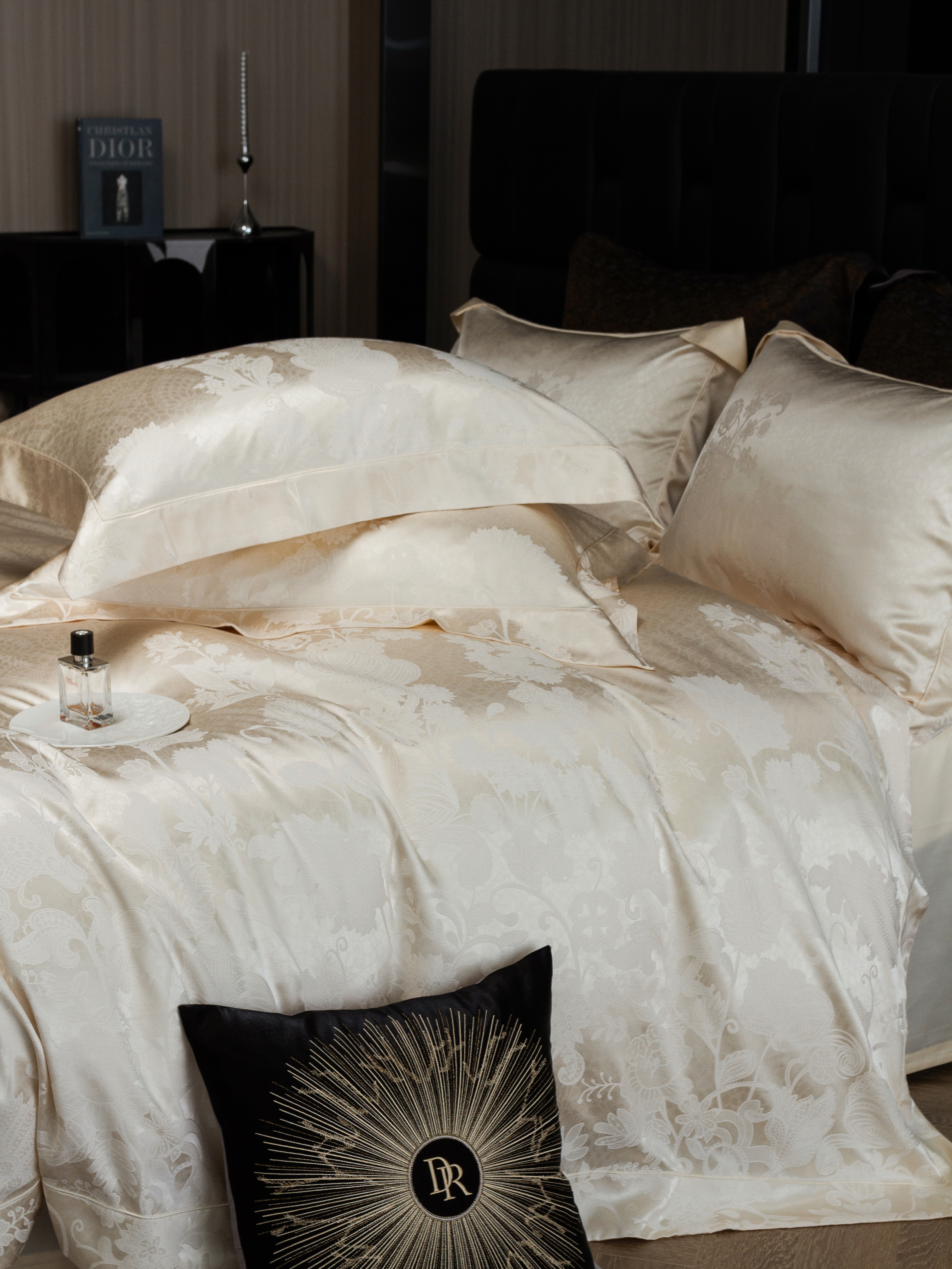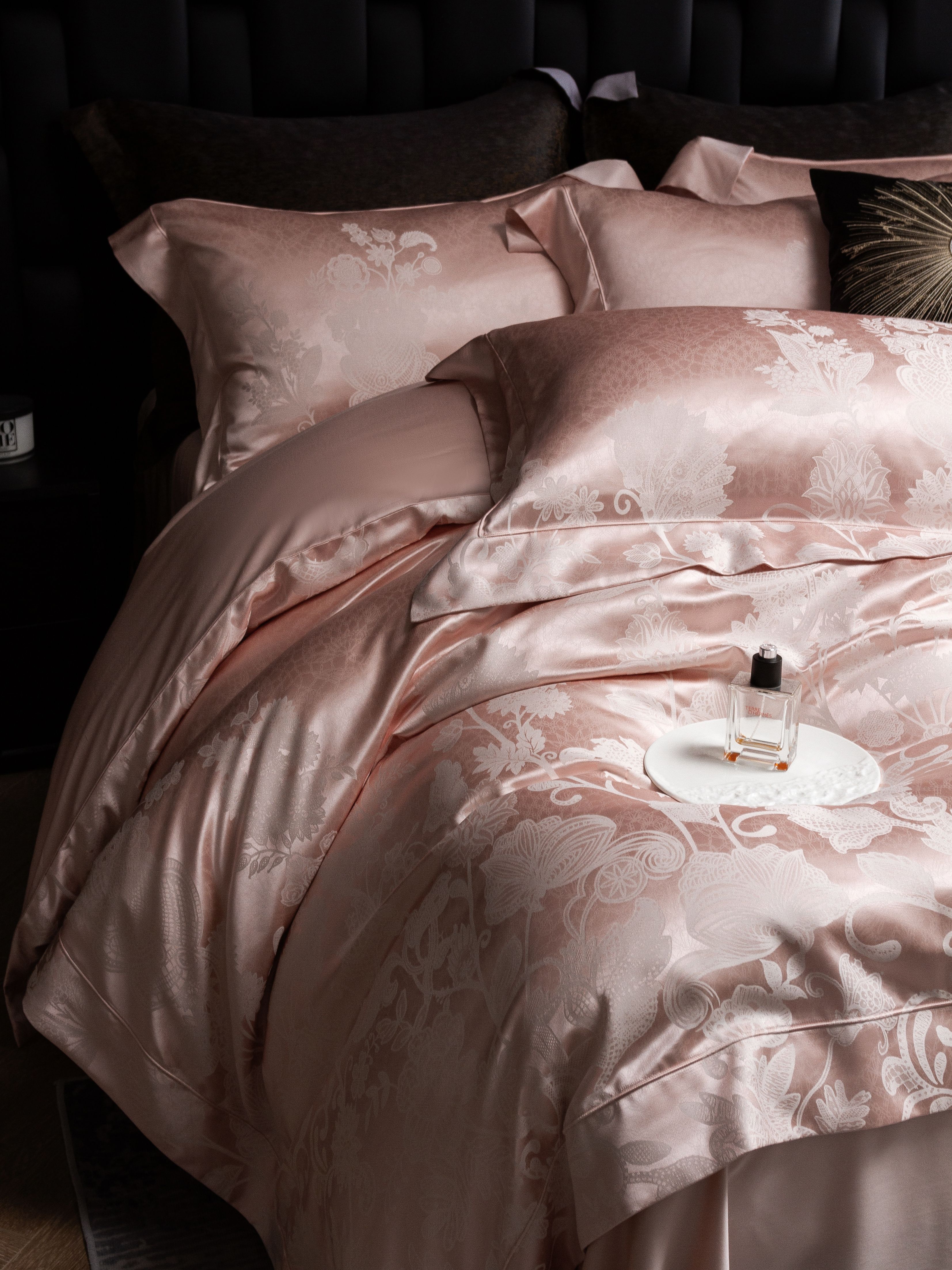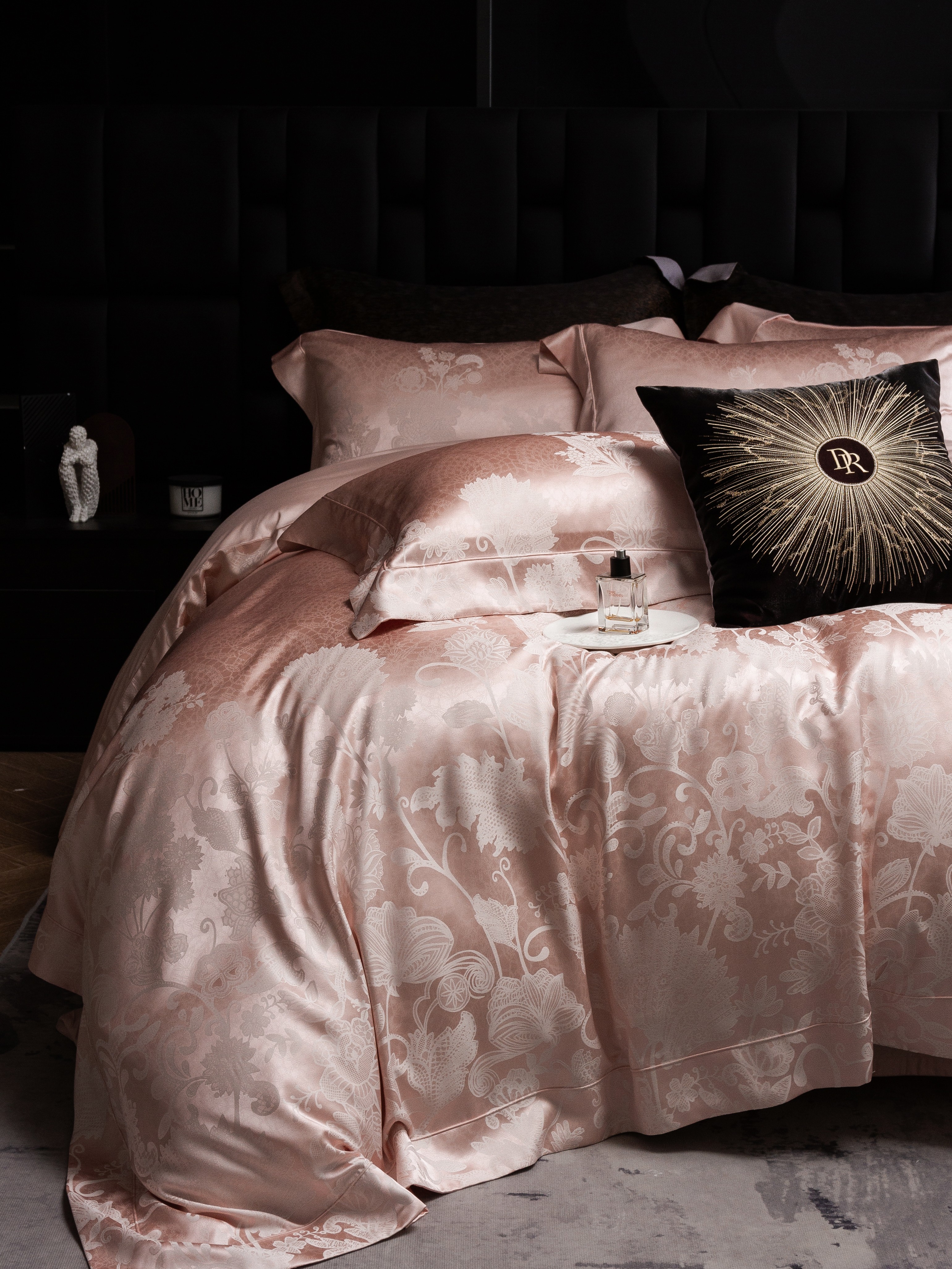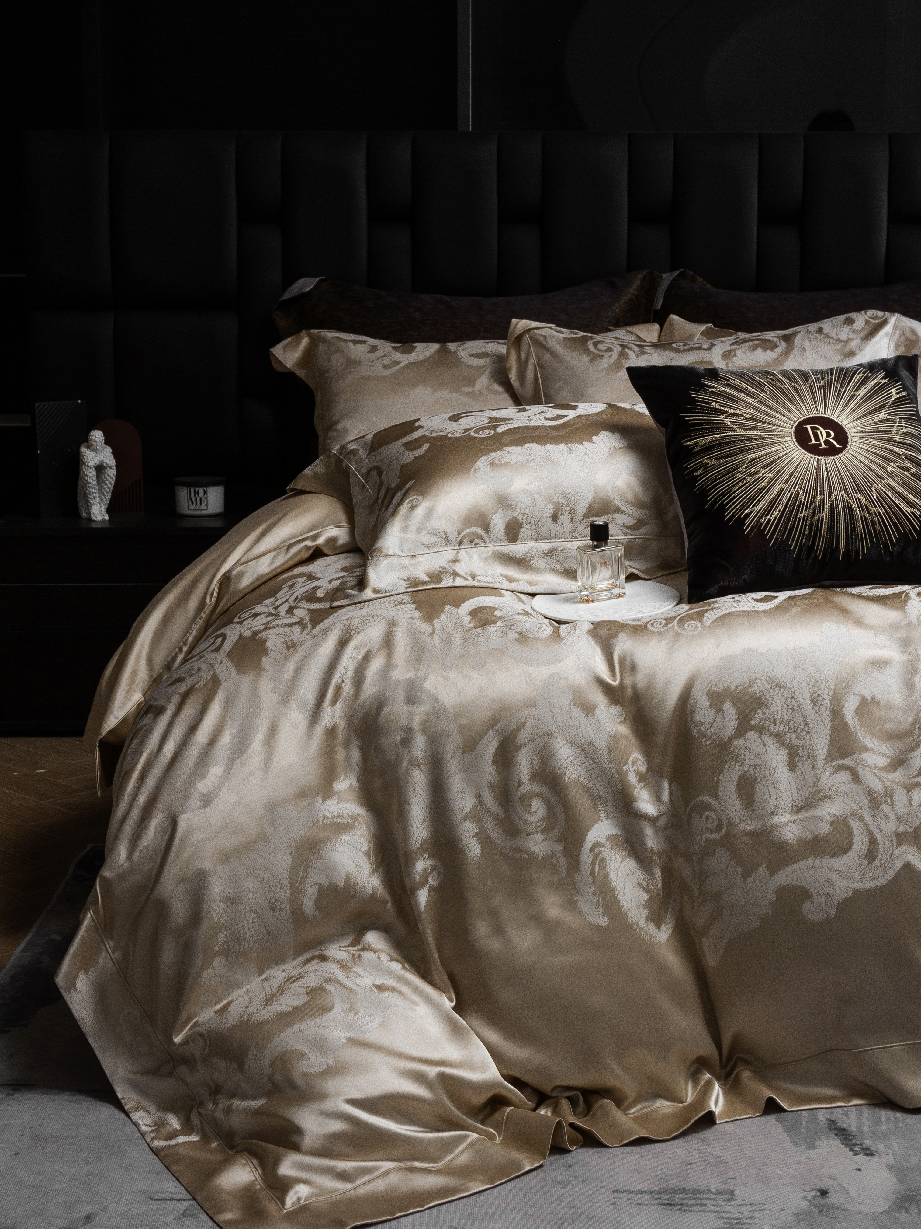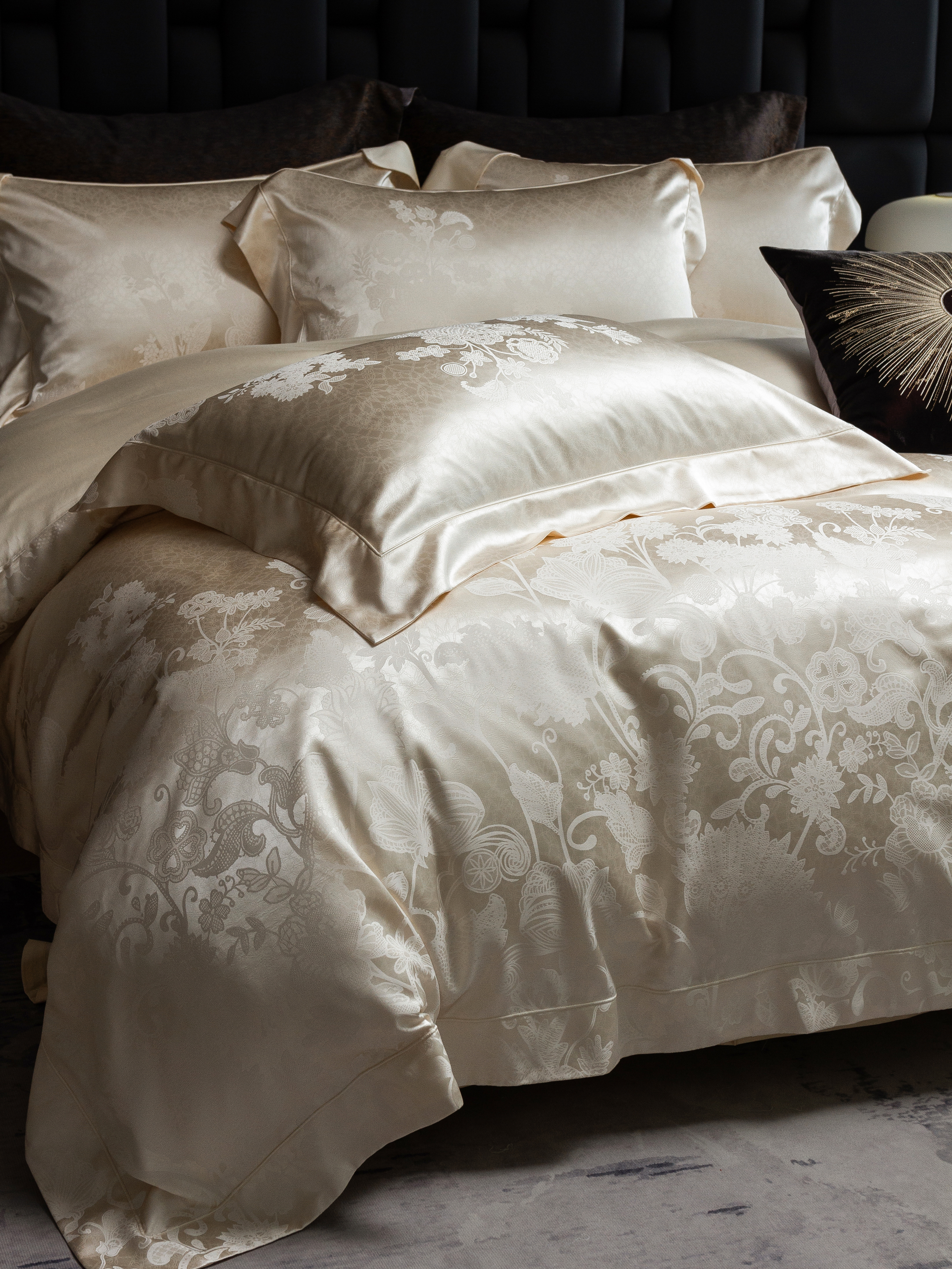 自然醒千帧锦丝缎提花镂空纯色四件套高端真丝棉贡缎别墅风凉感冰丝滑床上用品KY