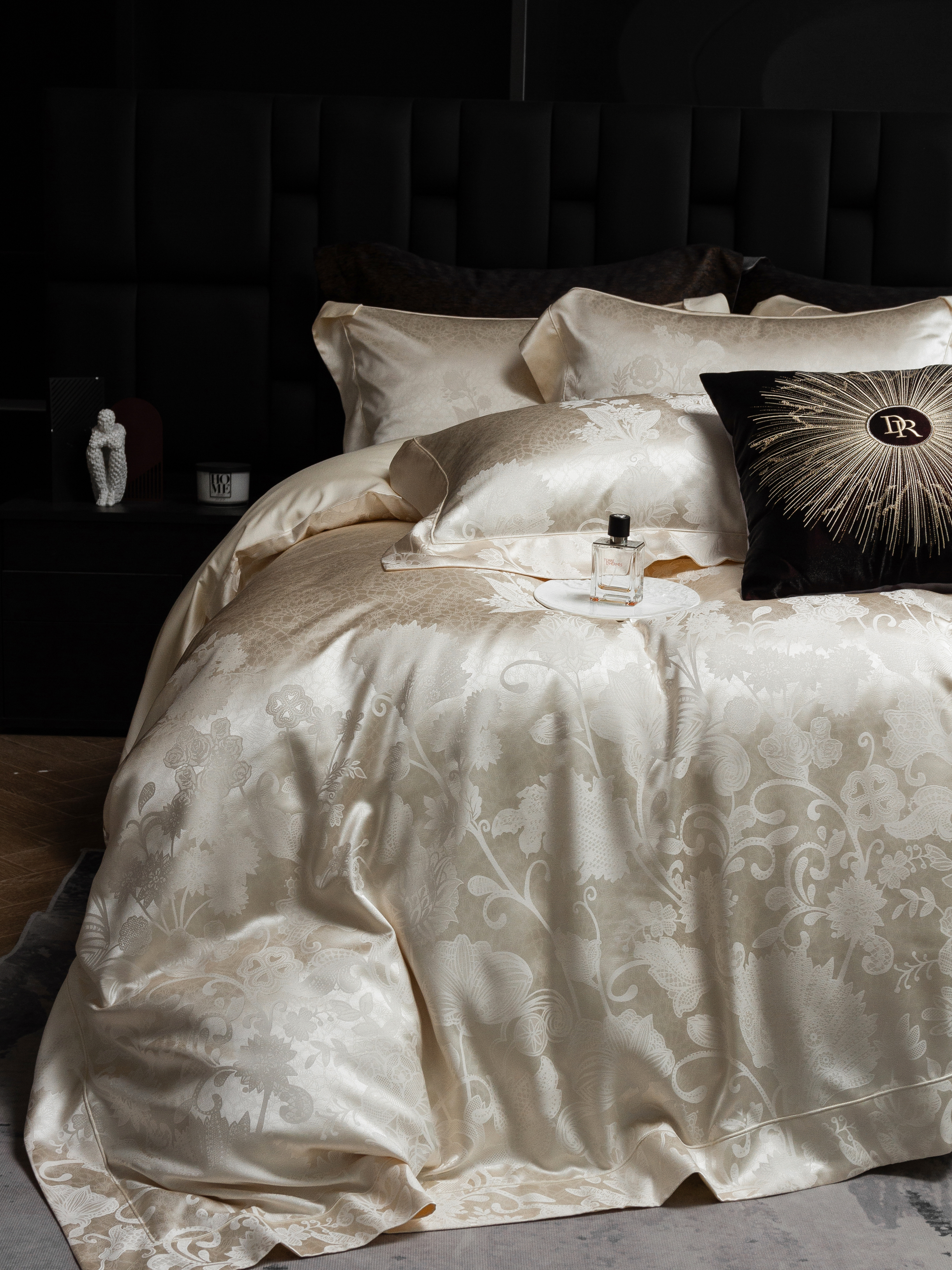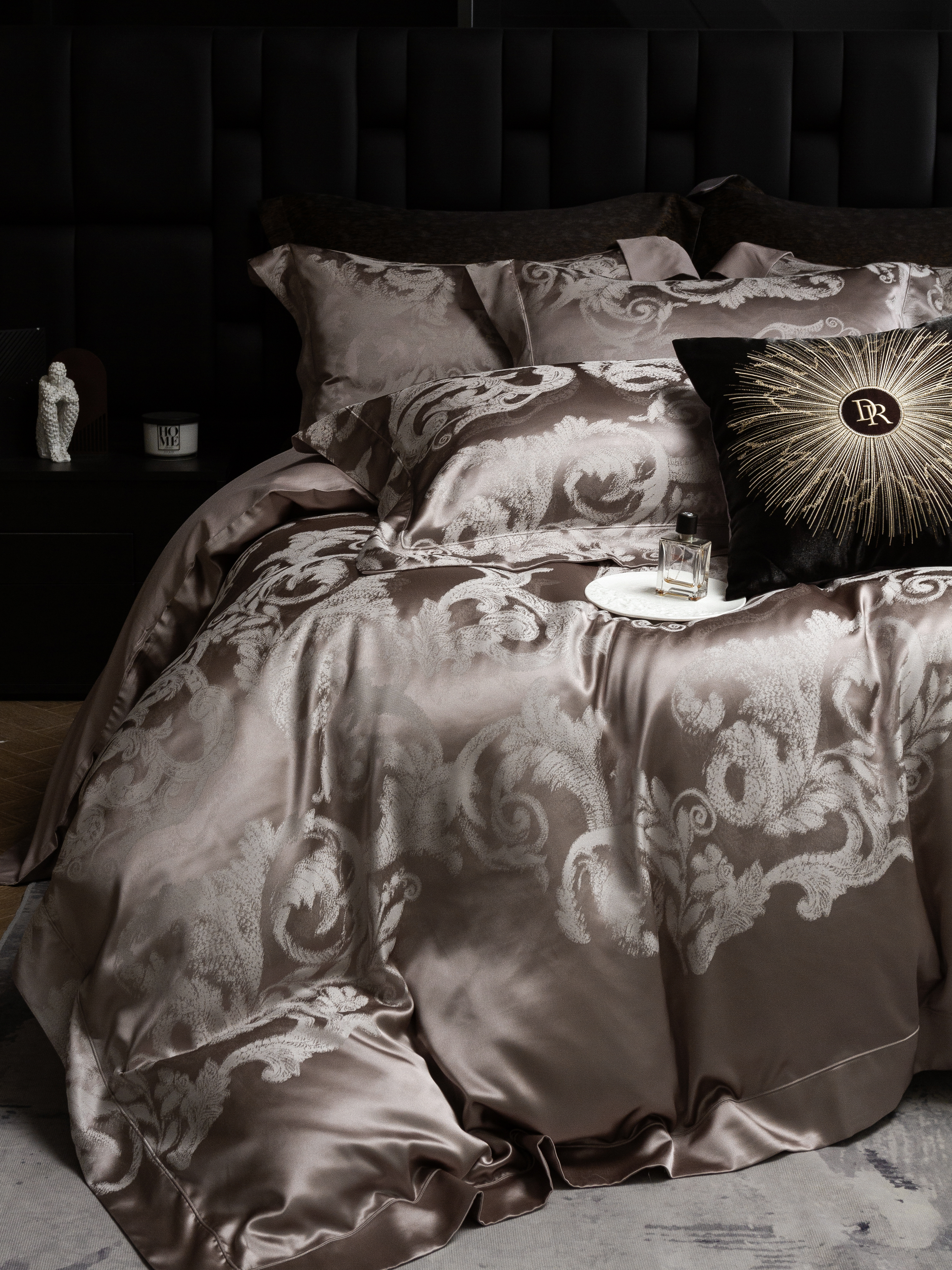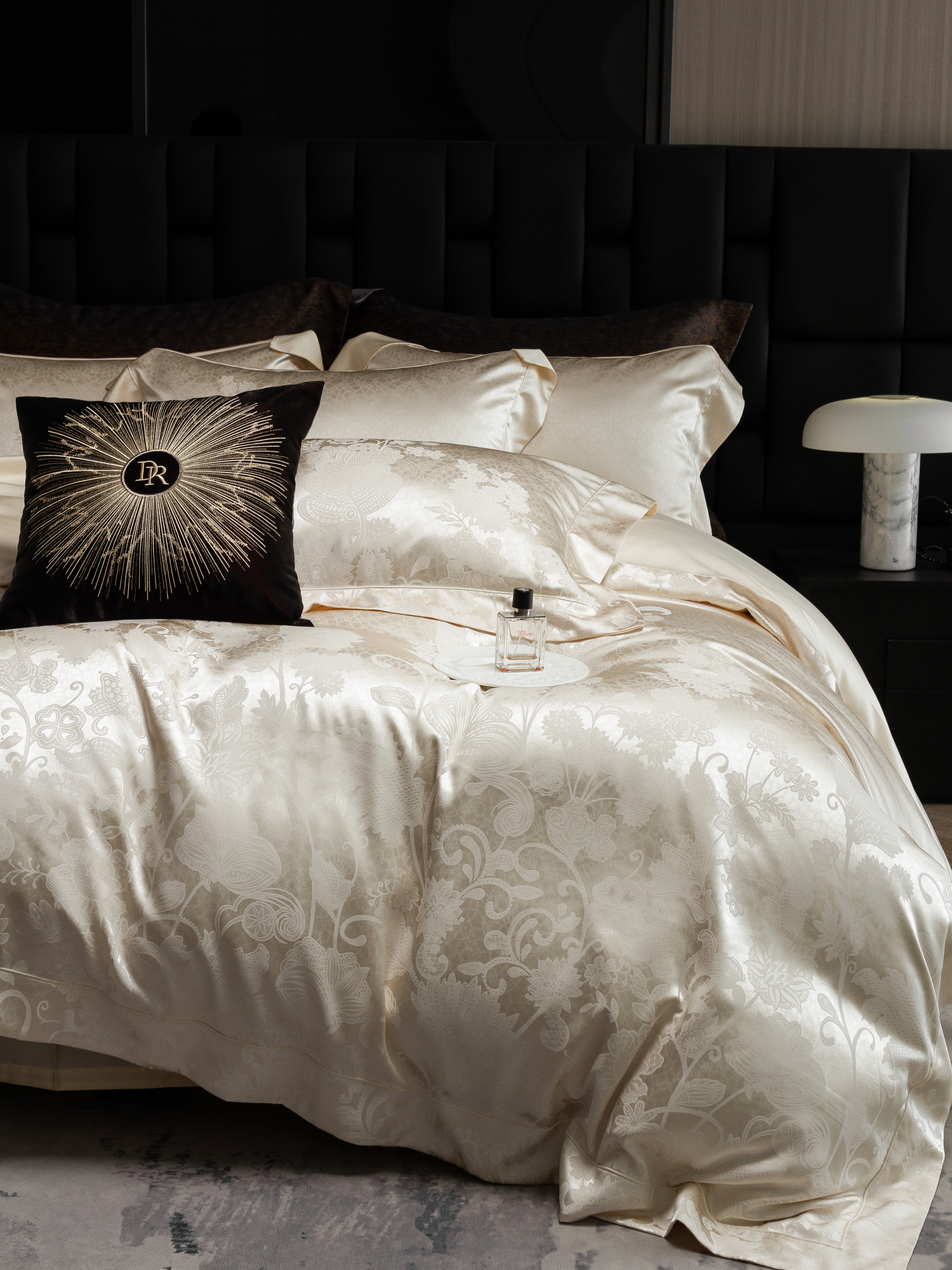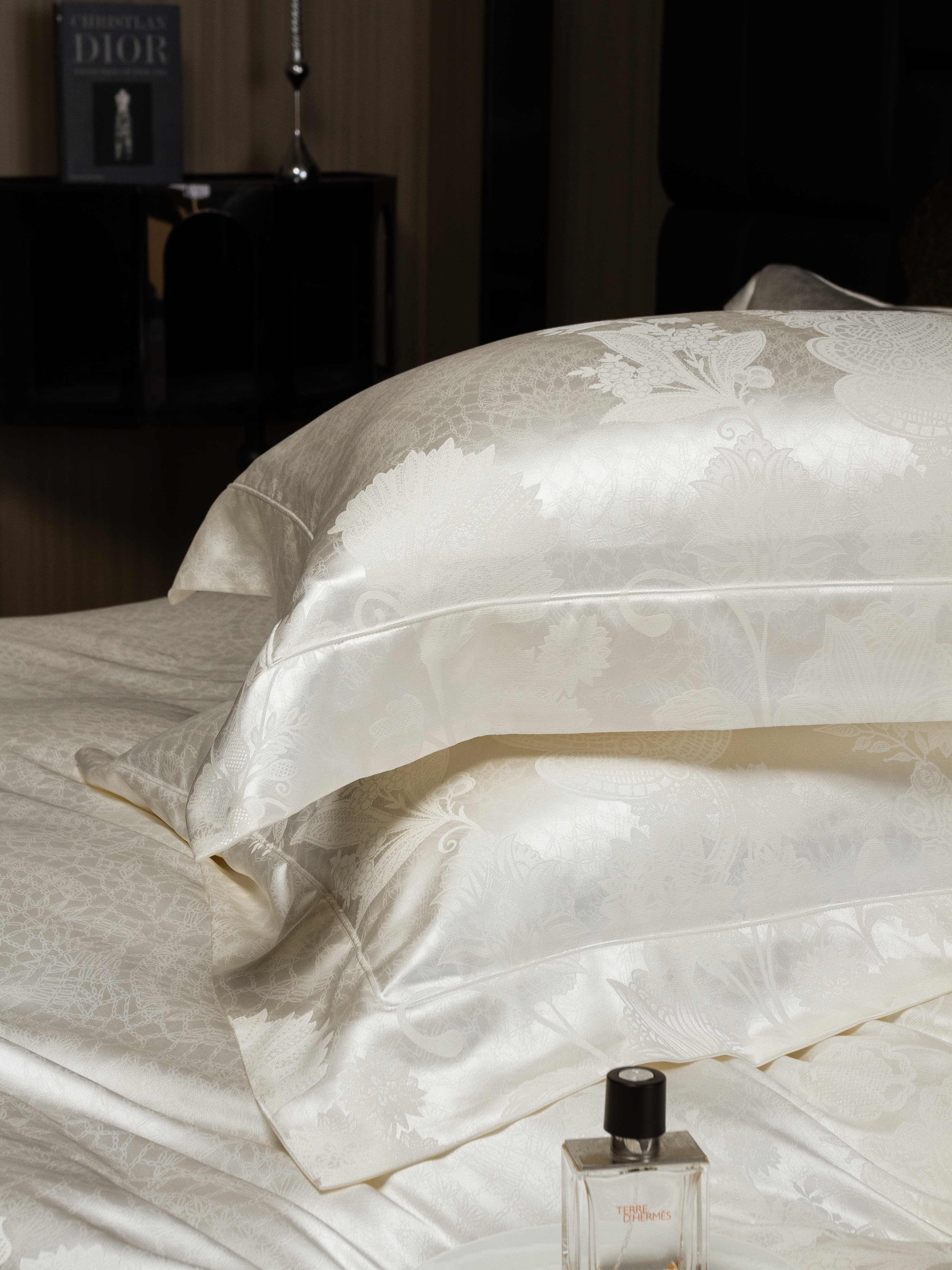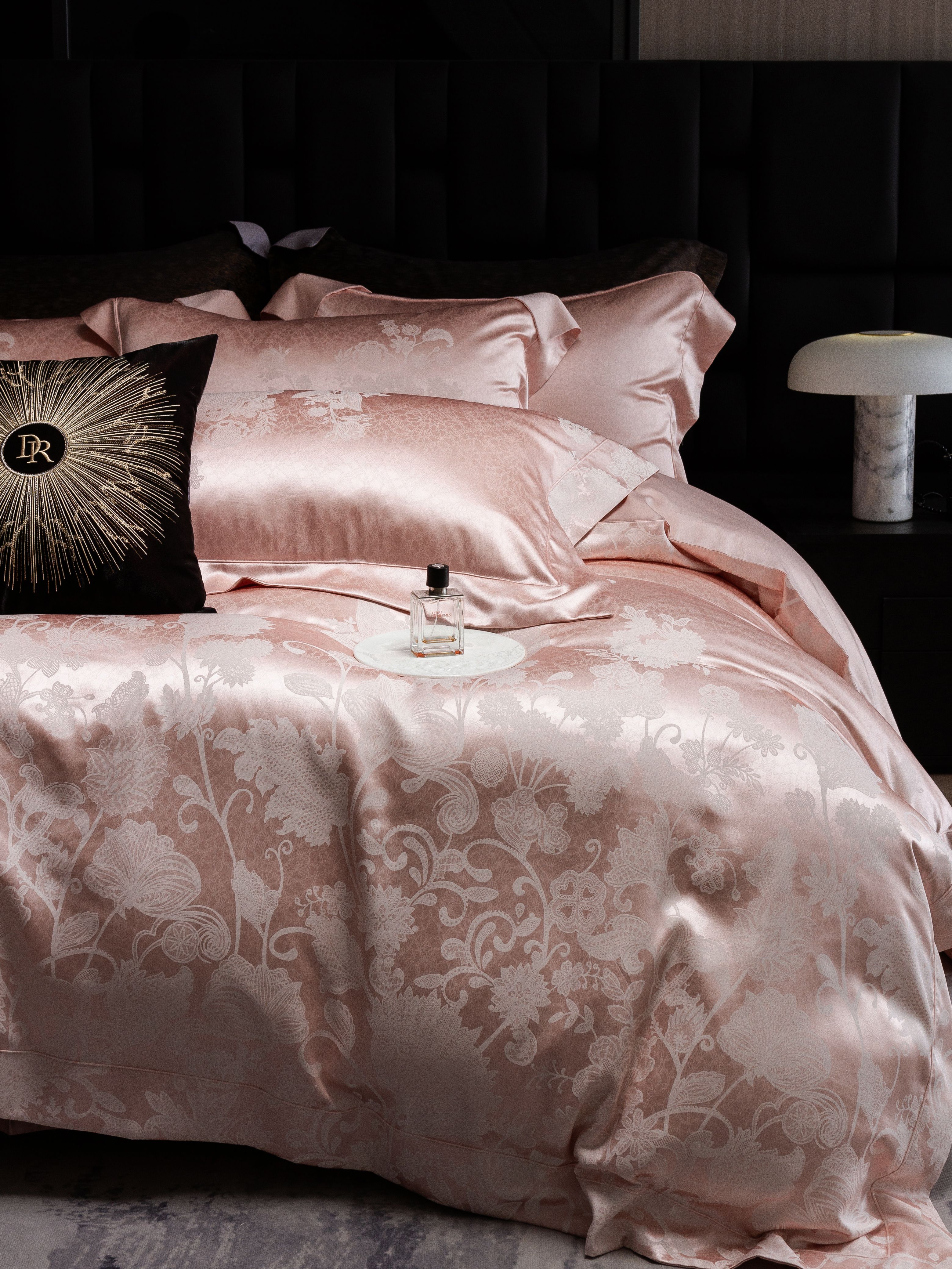 自然醒千帧锦丝缎提花镂空纯色四件套高端真丝棉贡缎别墅风凉感冰丝滑床上用品KY