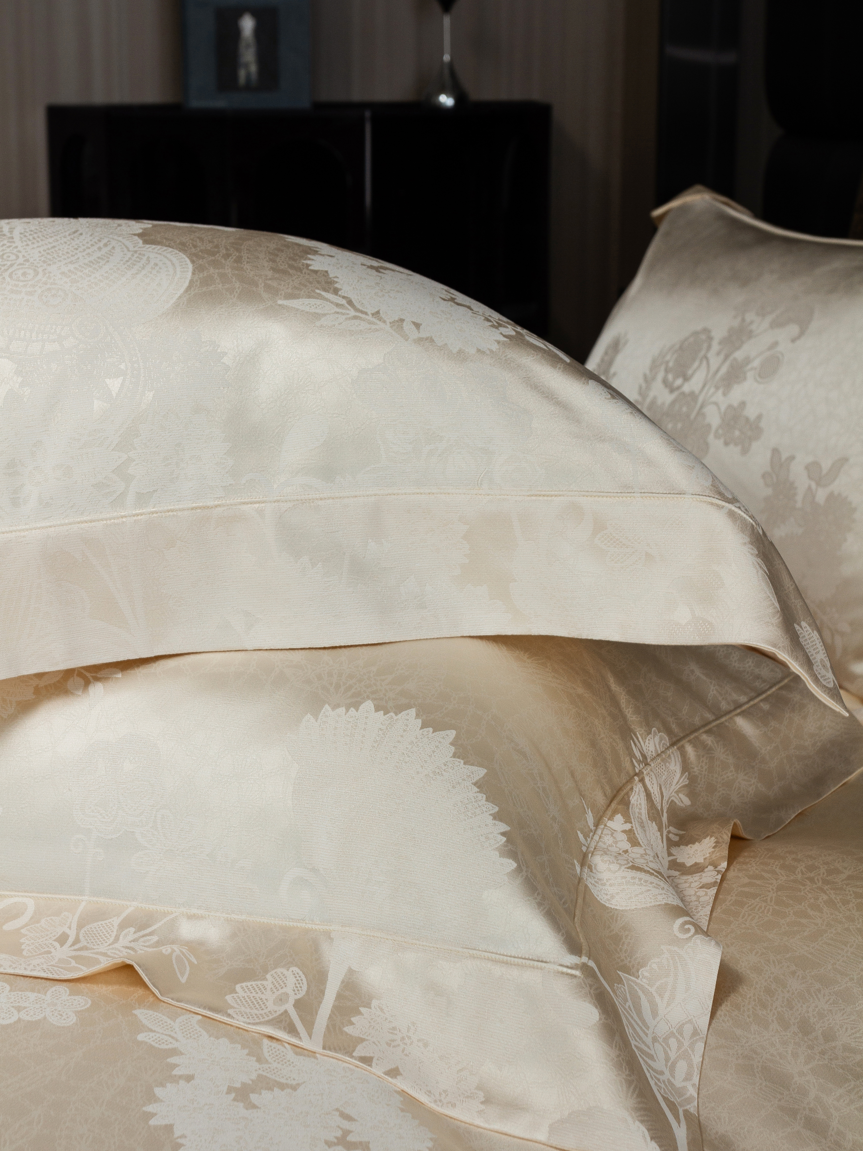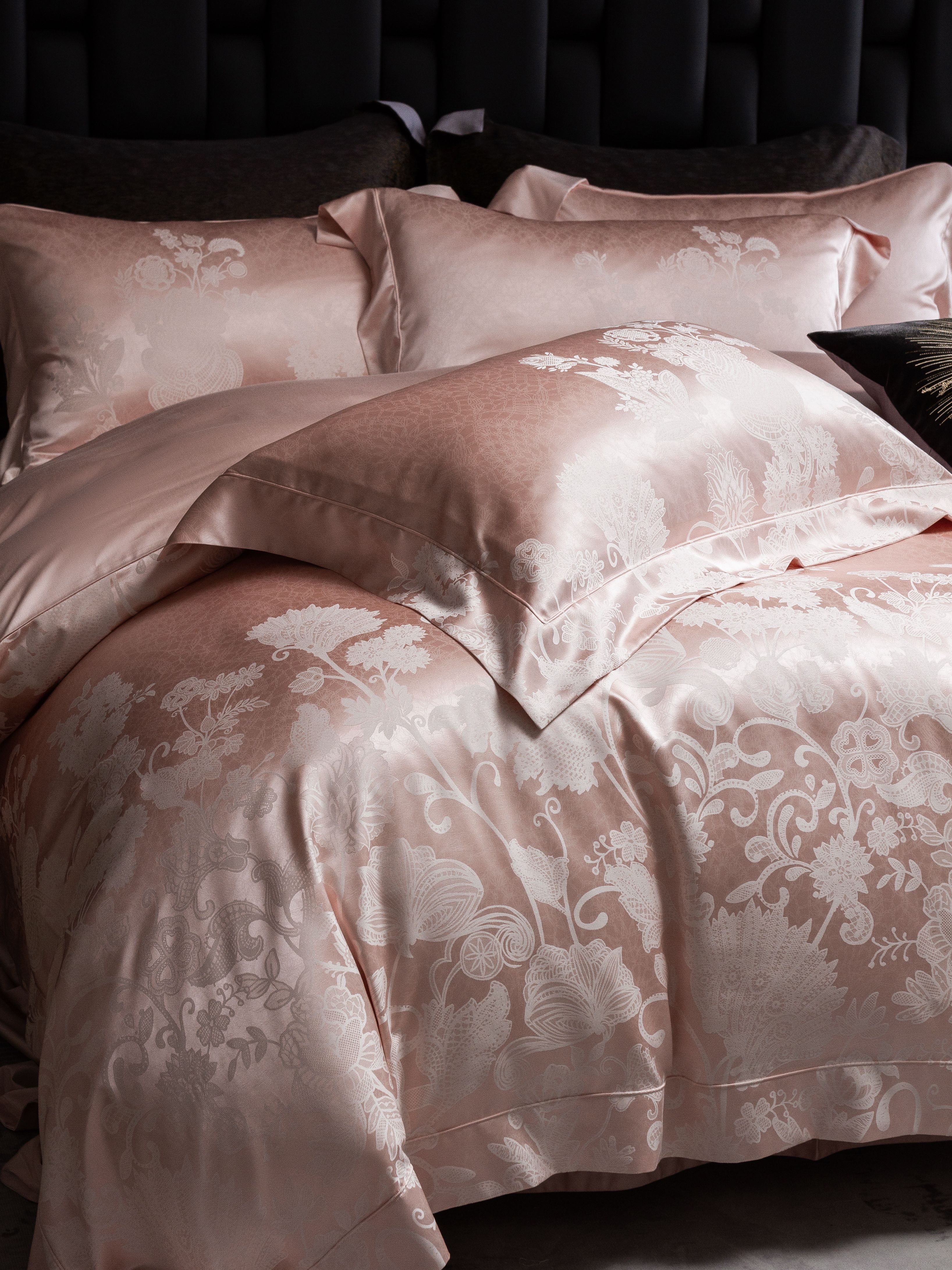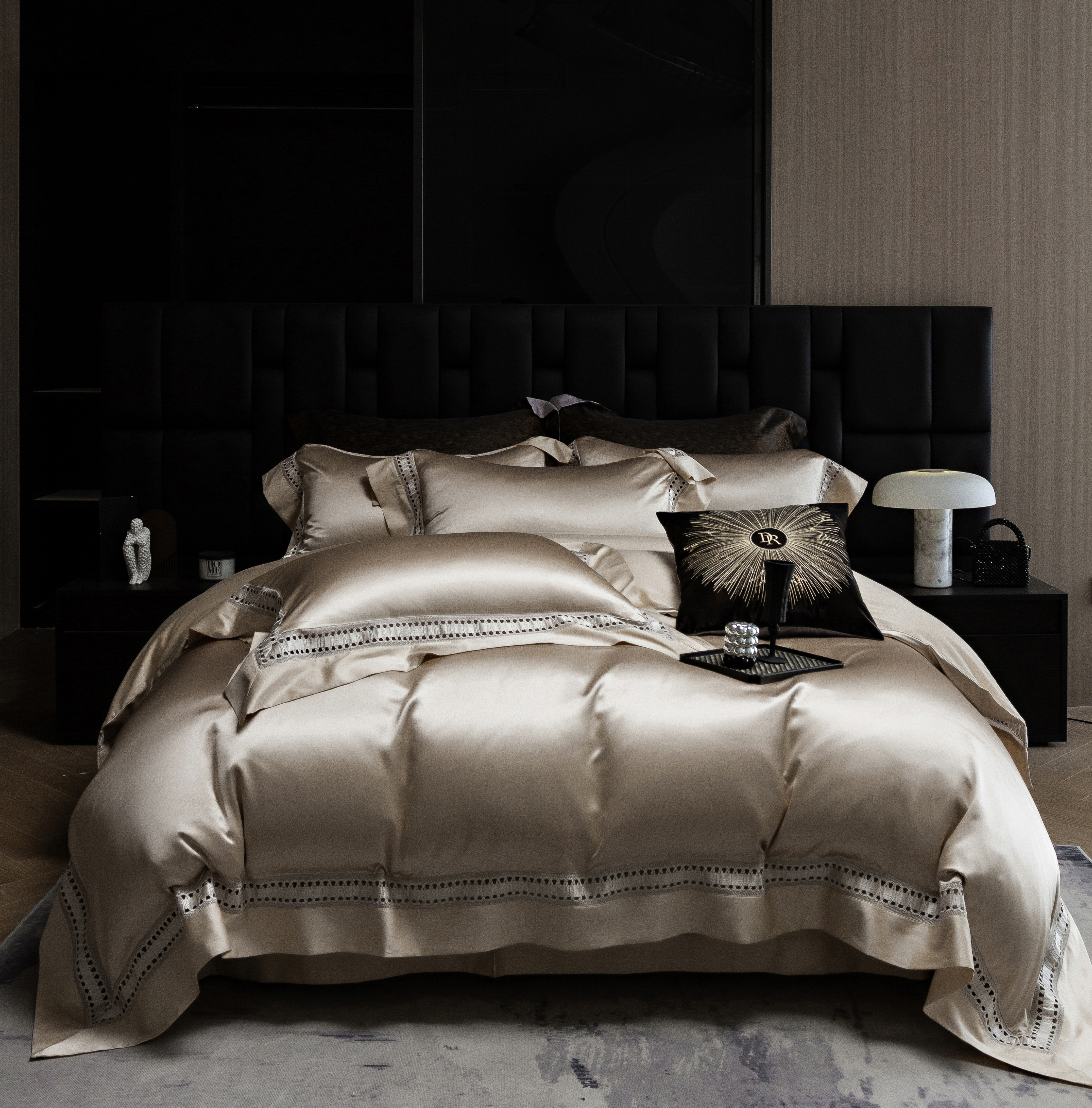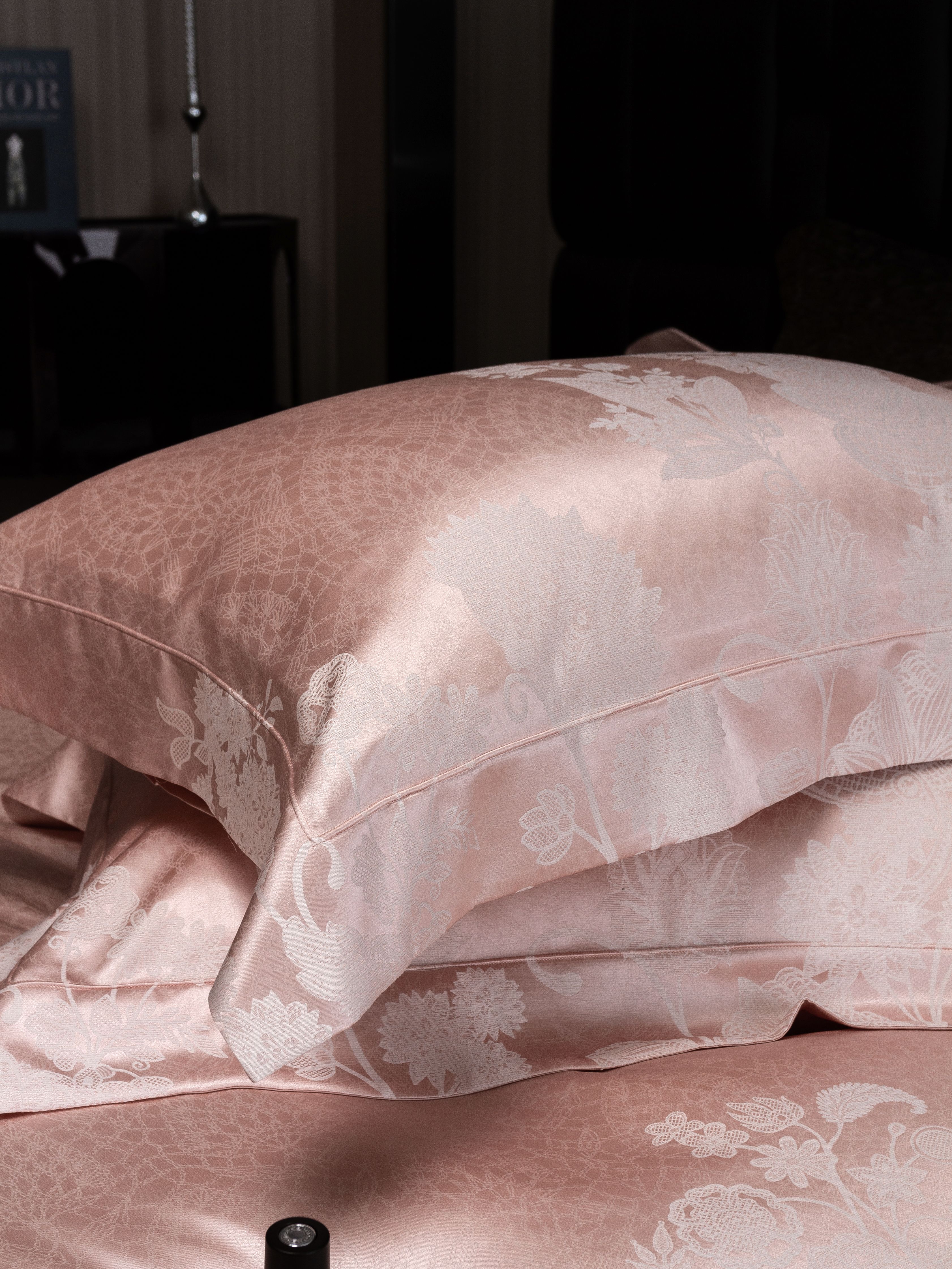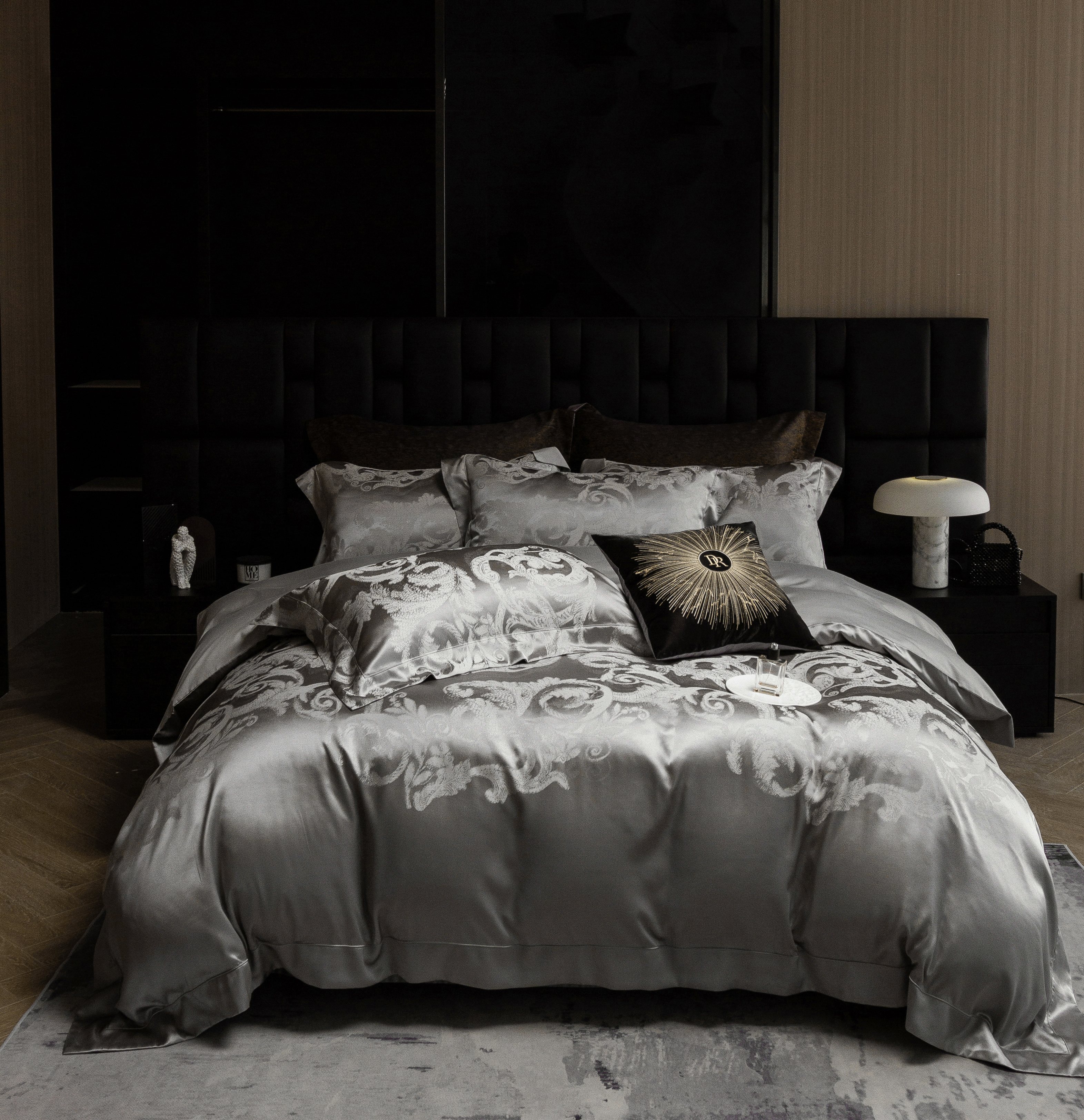 自然醒千帧锦丝缎提花镂空纯色四件套高端真丝棉贡缎别墅风凉感冰丝滑床上用品KY
