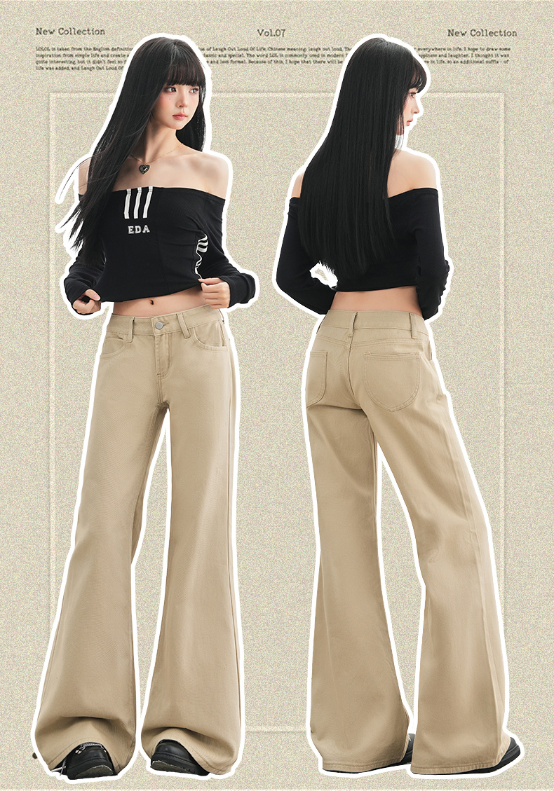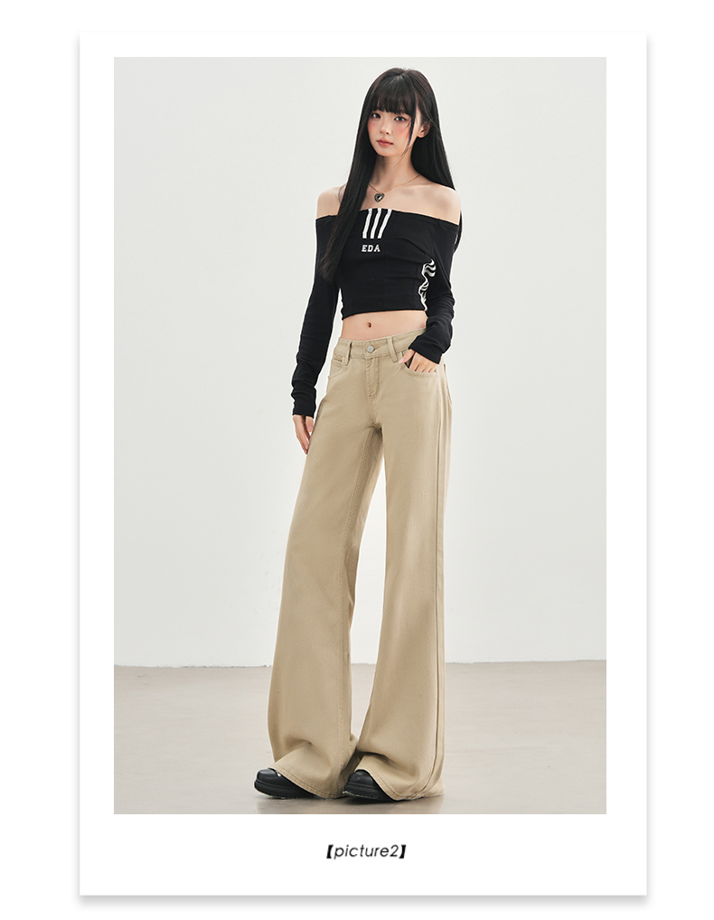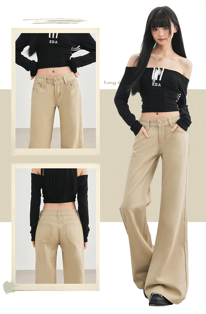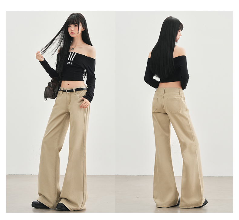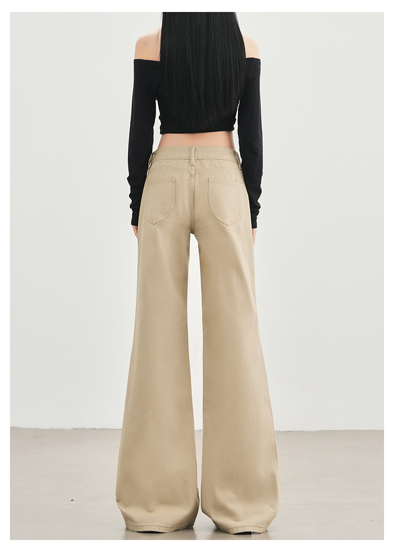 【加绒加厚】罗蒙秋冬款女士微喇牛仔裤加绒卡其色美式风高街百搭长裤子