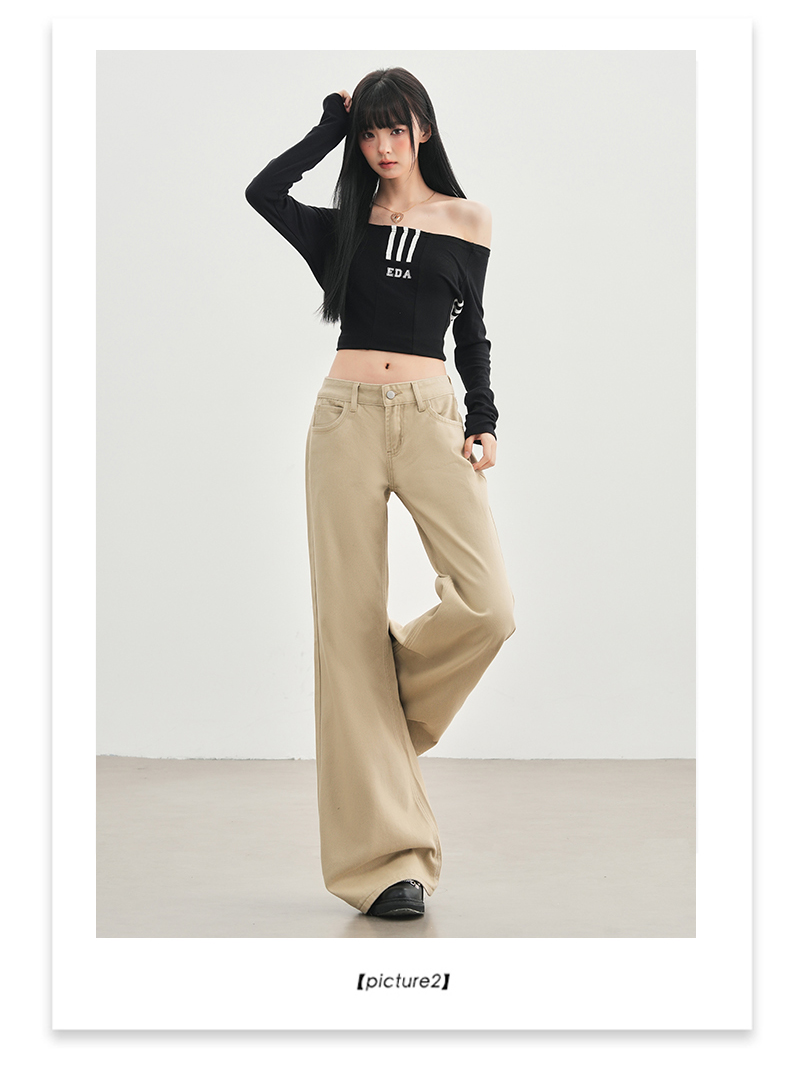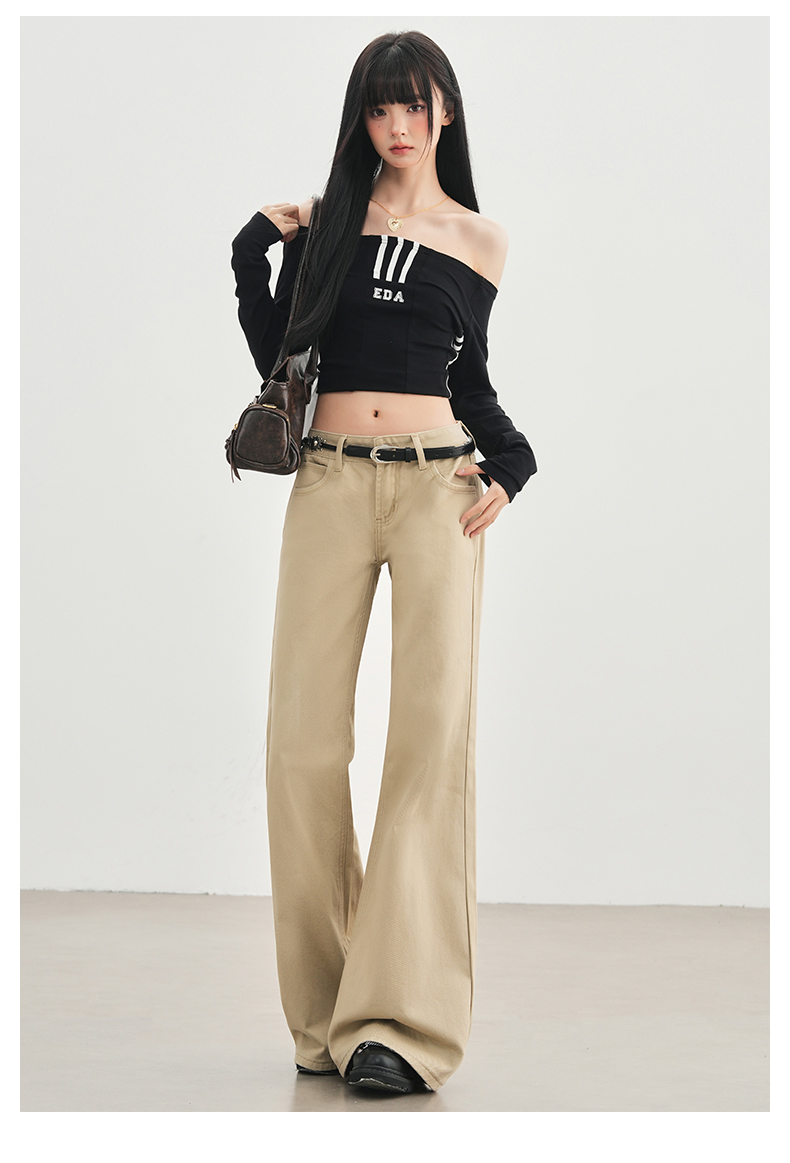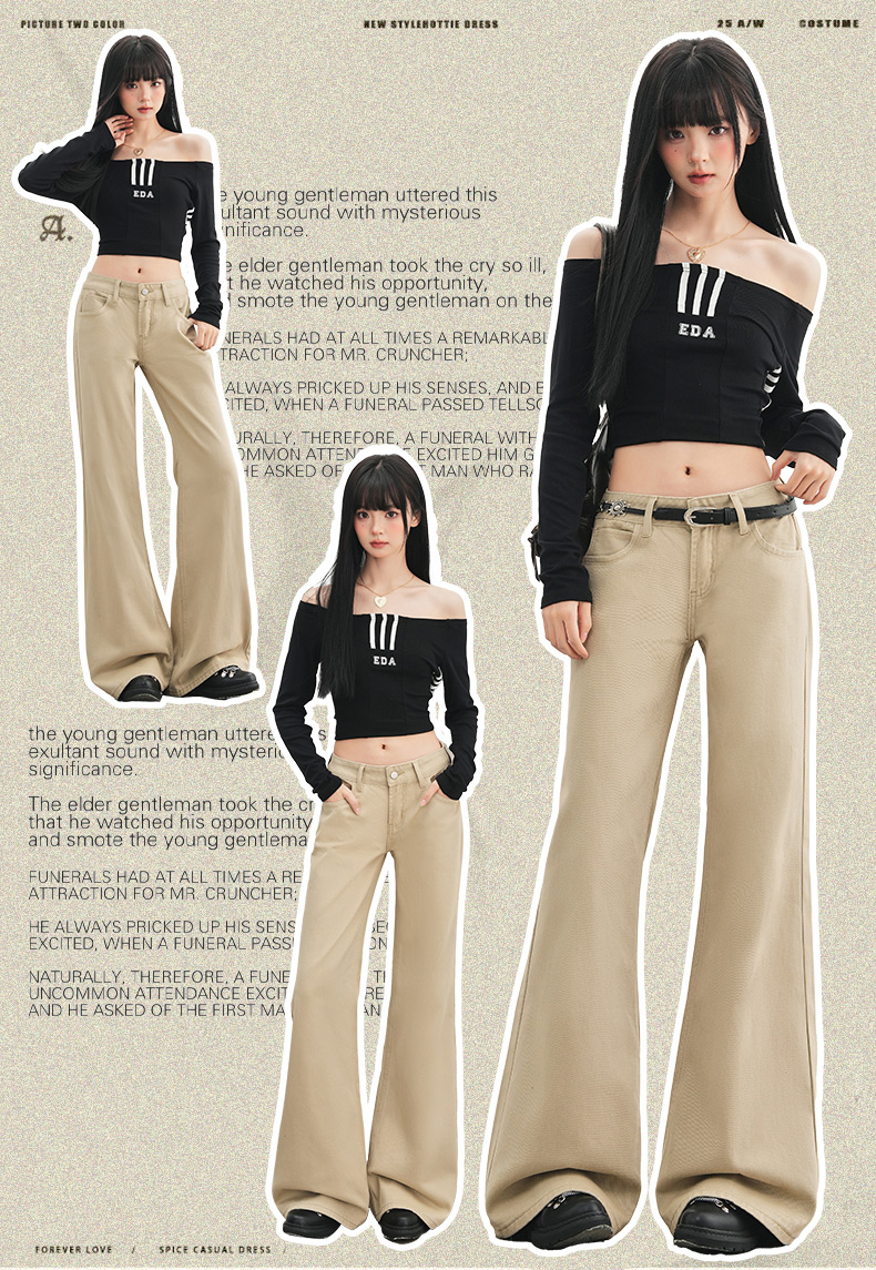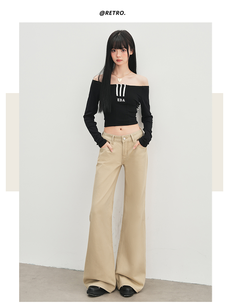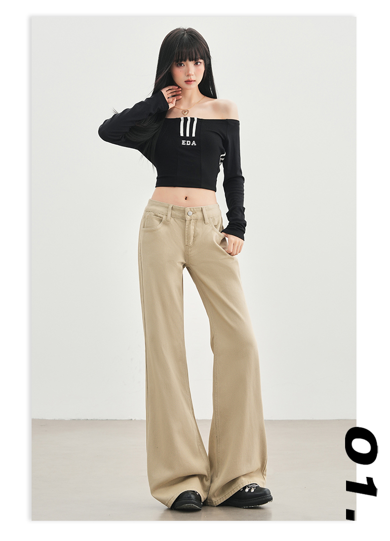 【加绒加厚】罗蒙秋冬款女士微喇牛仔裤加绒卡其色美式风高街百搭长裤子