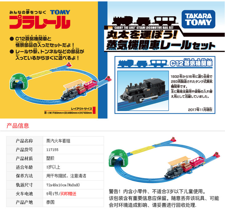 TOMY多美卡三节电动火车轨道套装儿童男孩玩具蒸汽火车套组117155
