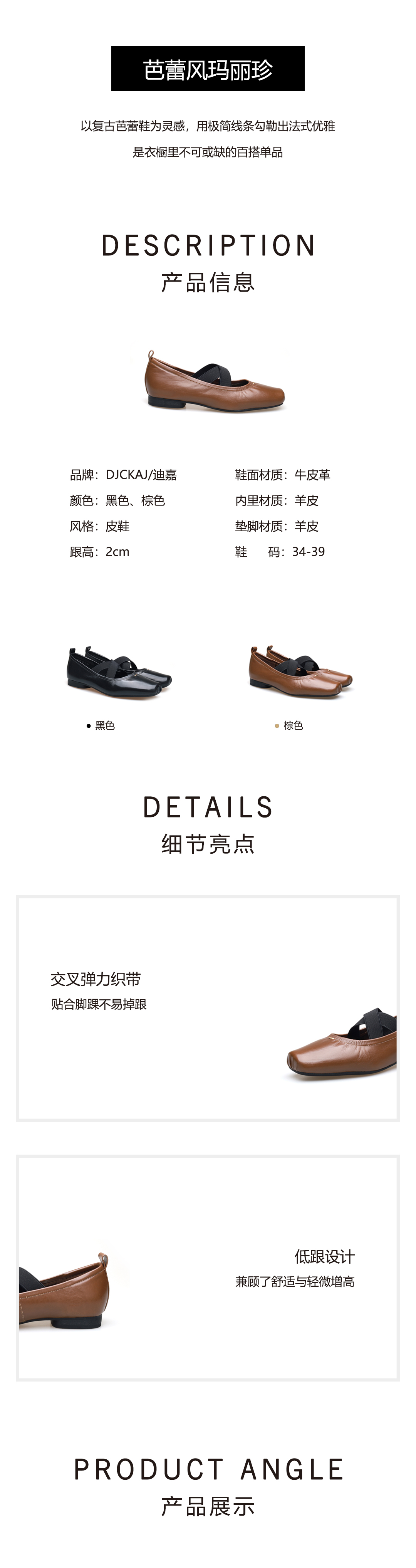 豪麟名鞋奥莱迪嘉女鞋平底鞋牛皮革DJMEO61WP207黑色 原价1660元