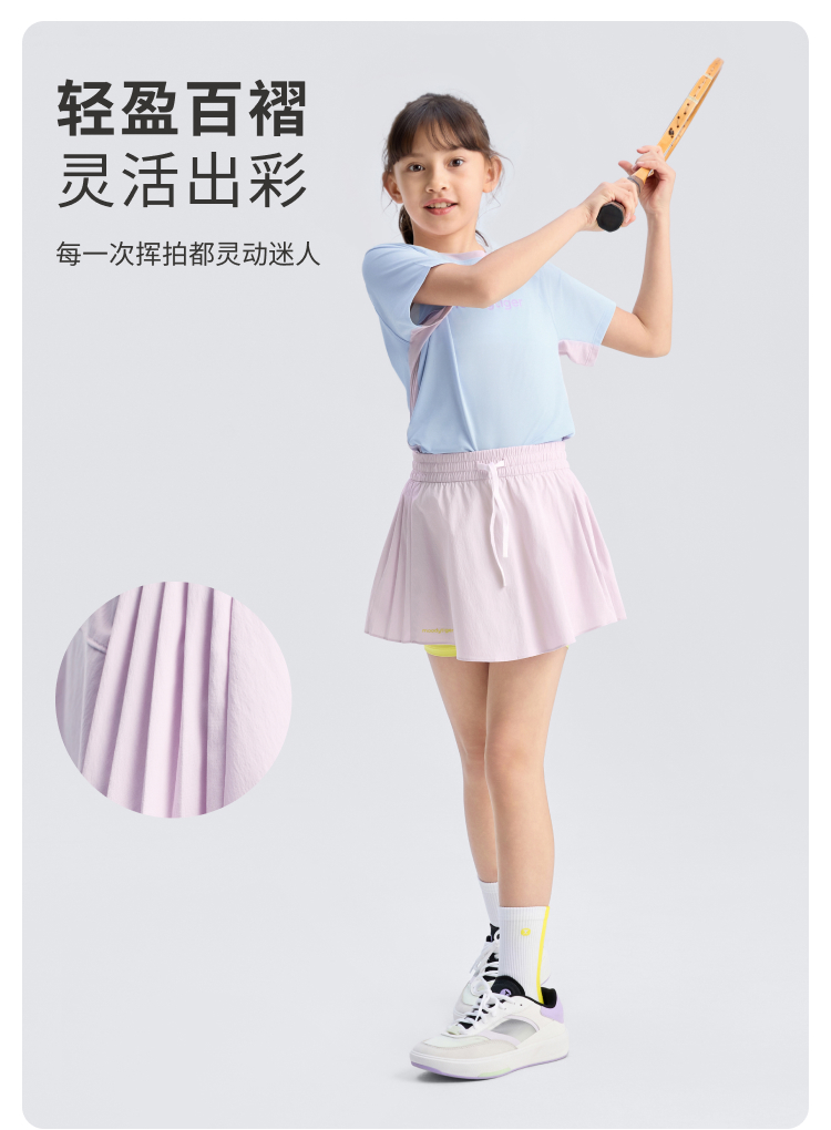【DR暑假】moodytiger女童百褶短裙25夏新凉感防走光运动梭织网球裙52213503