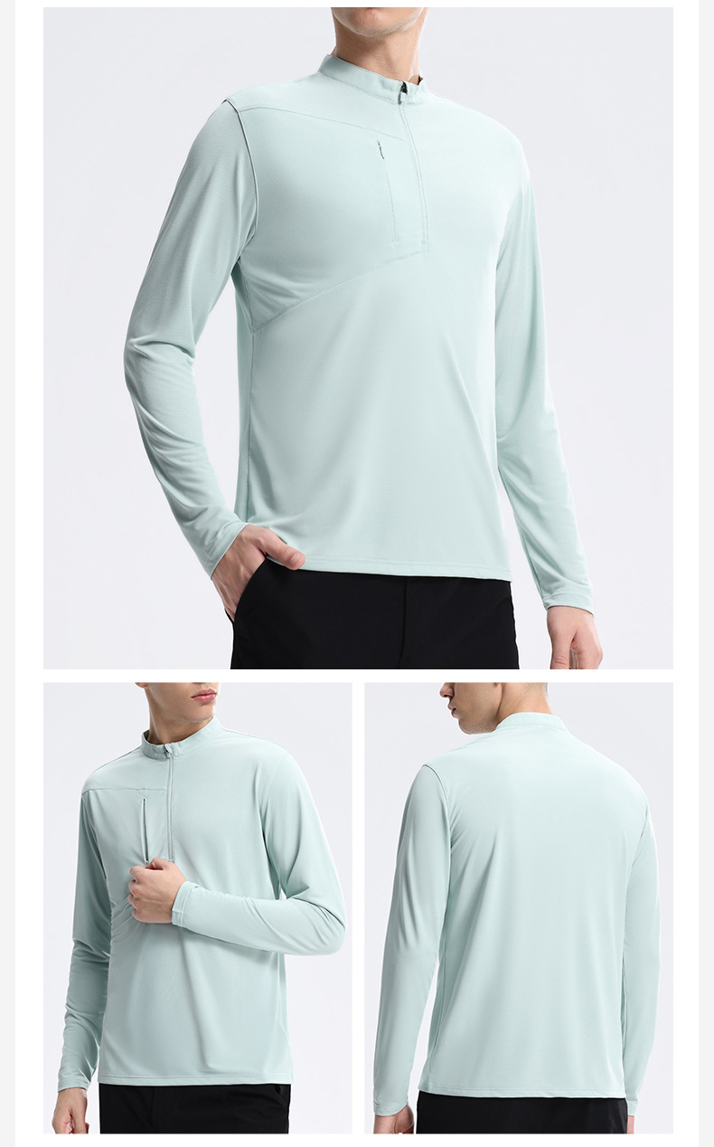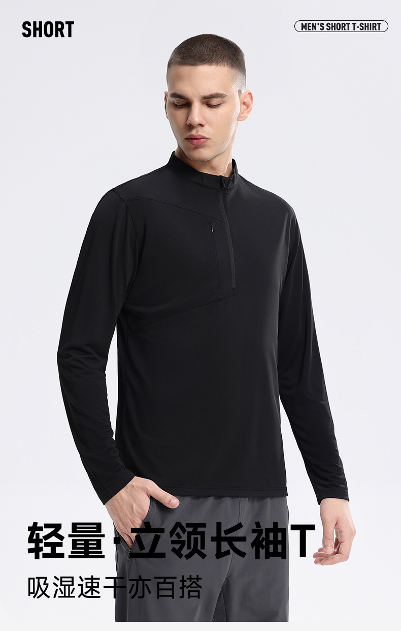 「迪家同款!轻薄运动长袖T」半拉链速干衣运动上衣 男户外t恤时尚训练骑行跑步健身服饰