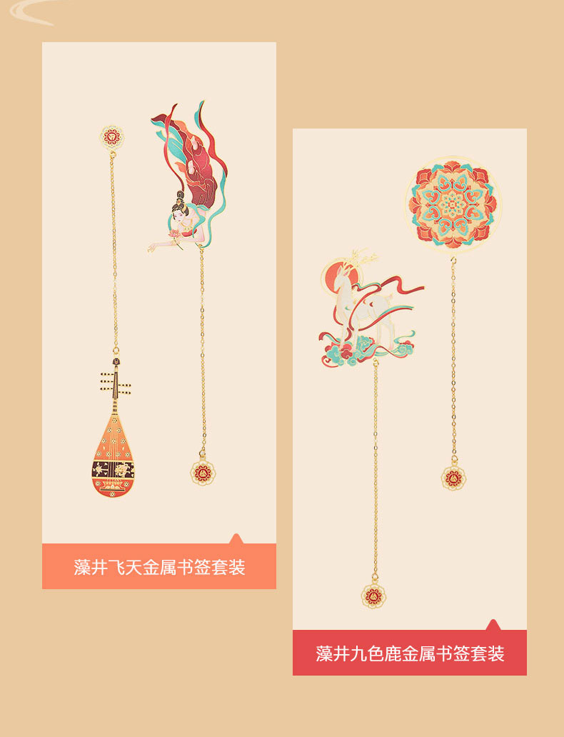 敦煌系列 藻井飞天金属书签套装 九色鹿金属书签套装
