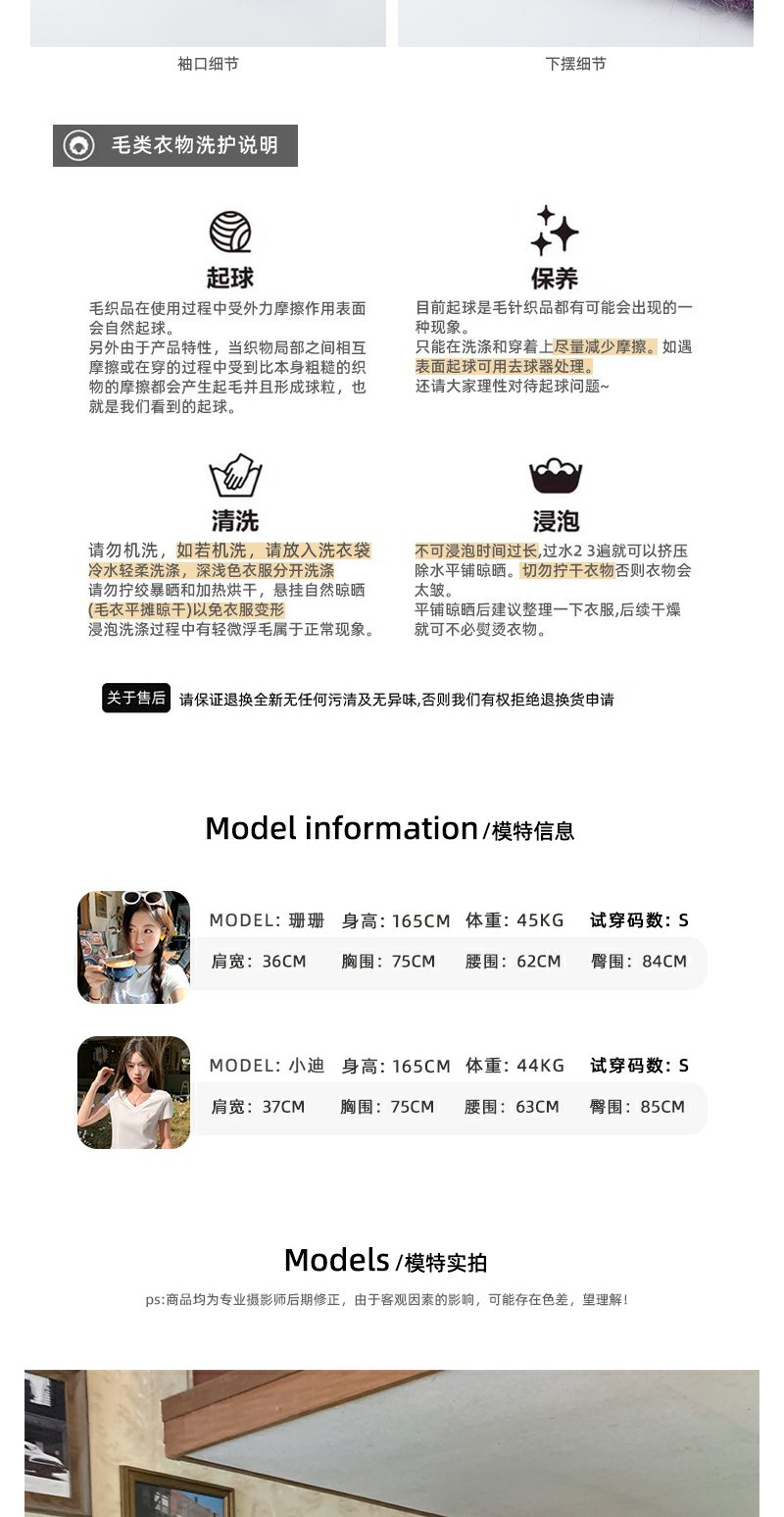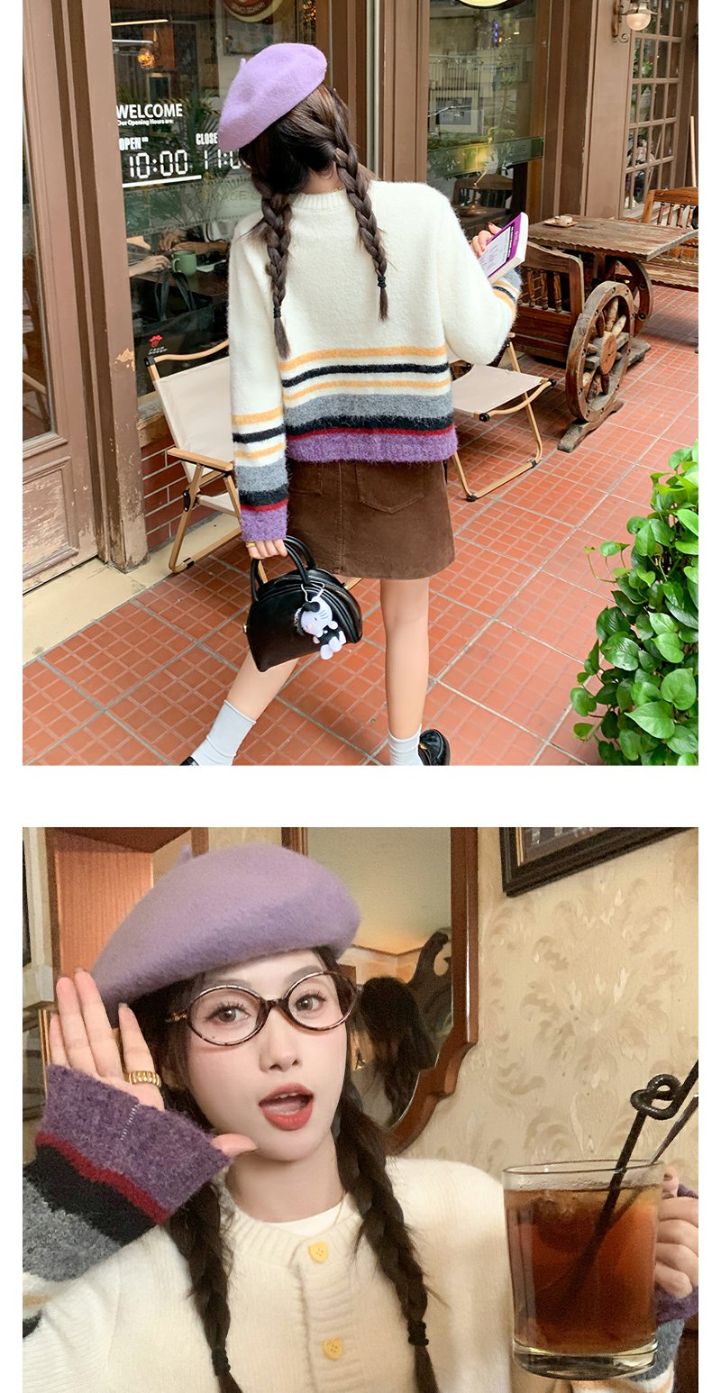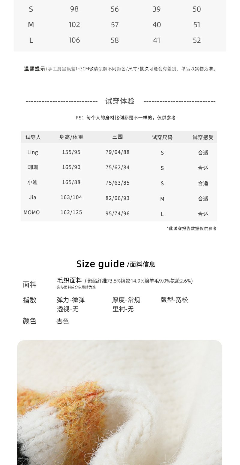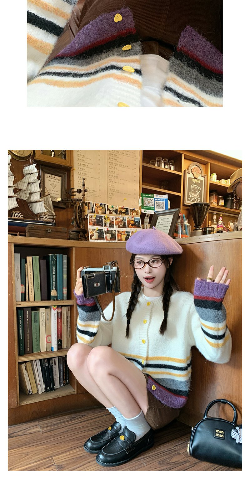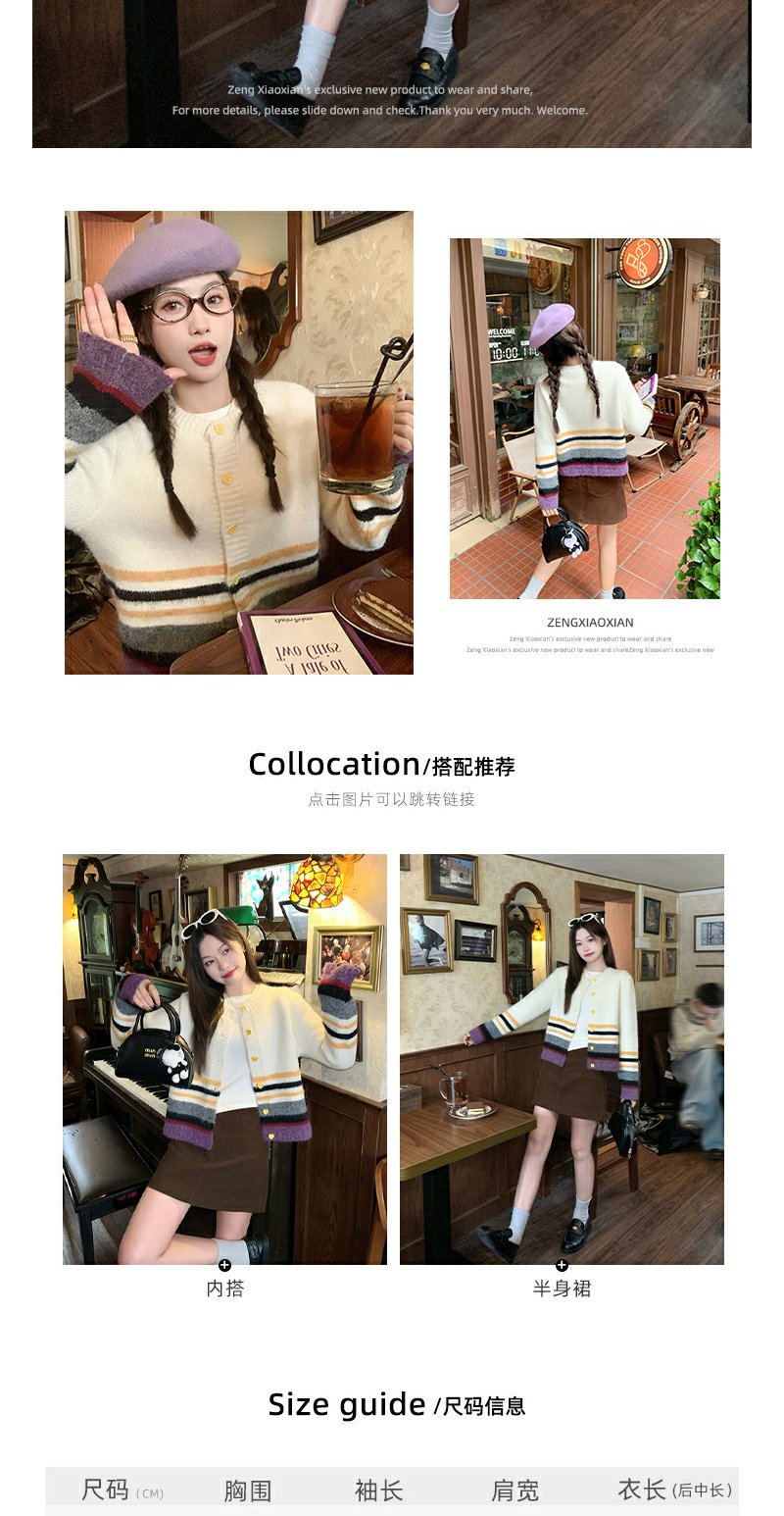【169元任选2件】现货!杏色下摆撞色条纹系扣毛衣