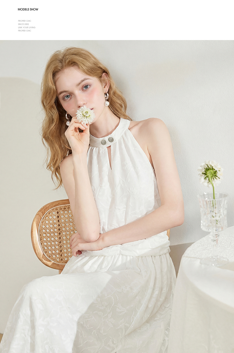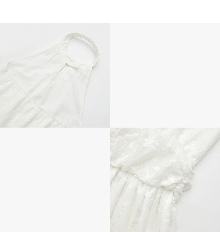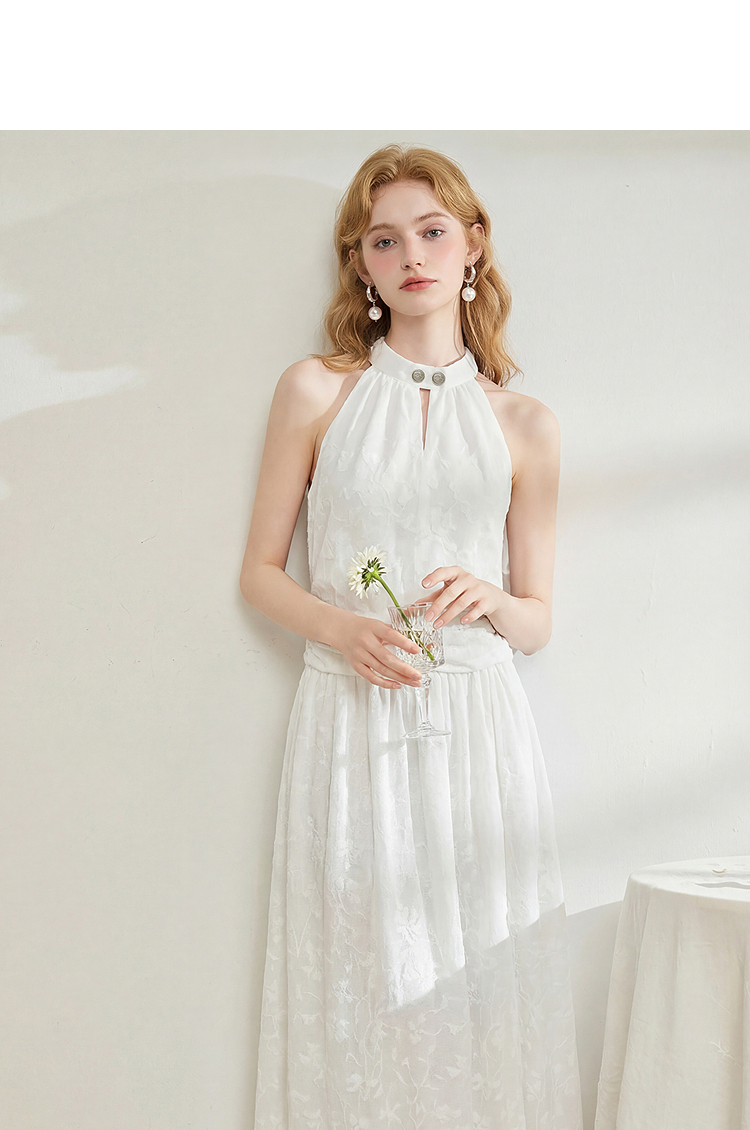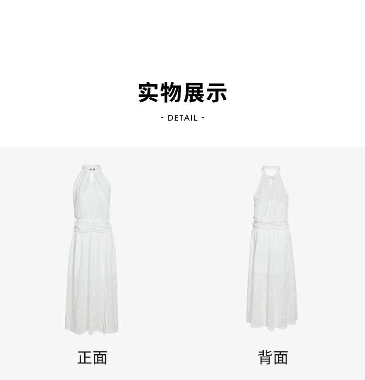 西遇挂脖无袖连衣裙女2026夏新款水滴领镂空提花收腰显瘦开衩长裙E0060267