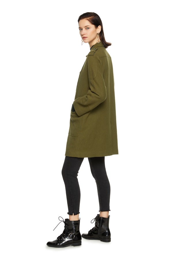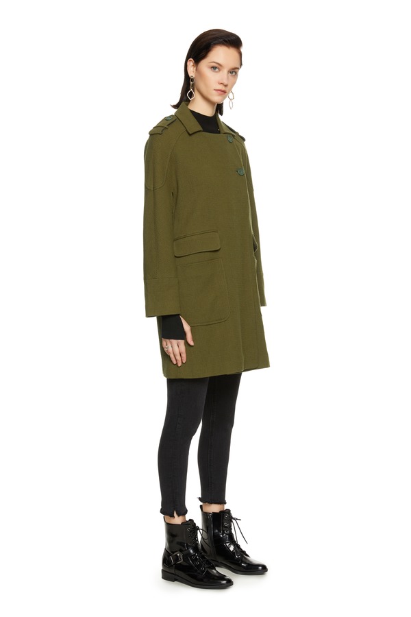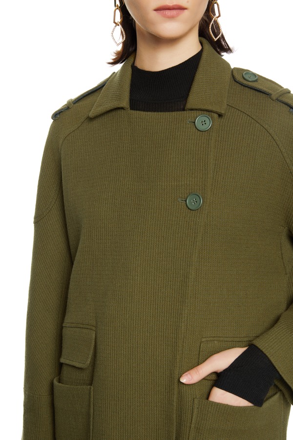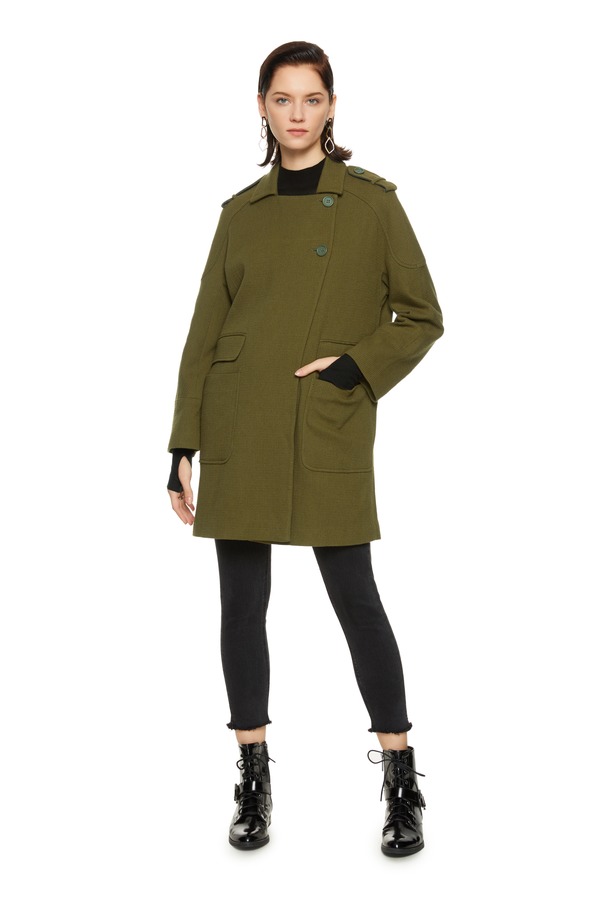 玛丝菲尔·素 对称口袋军绿色大衣 8025