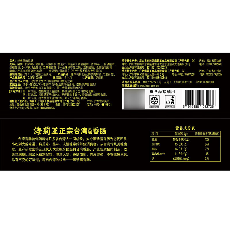 海霸王黑珍珠台式原味香肠 268g/袋