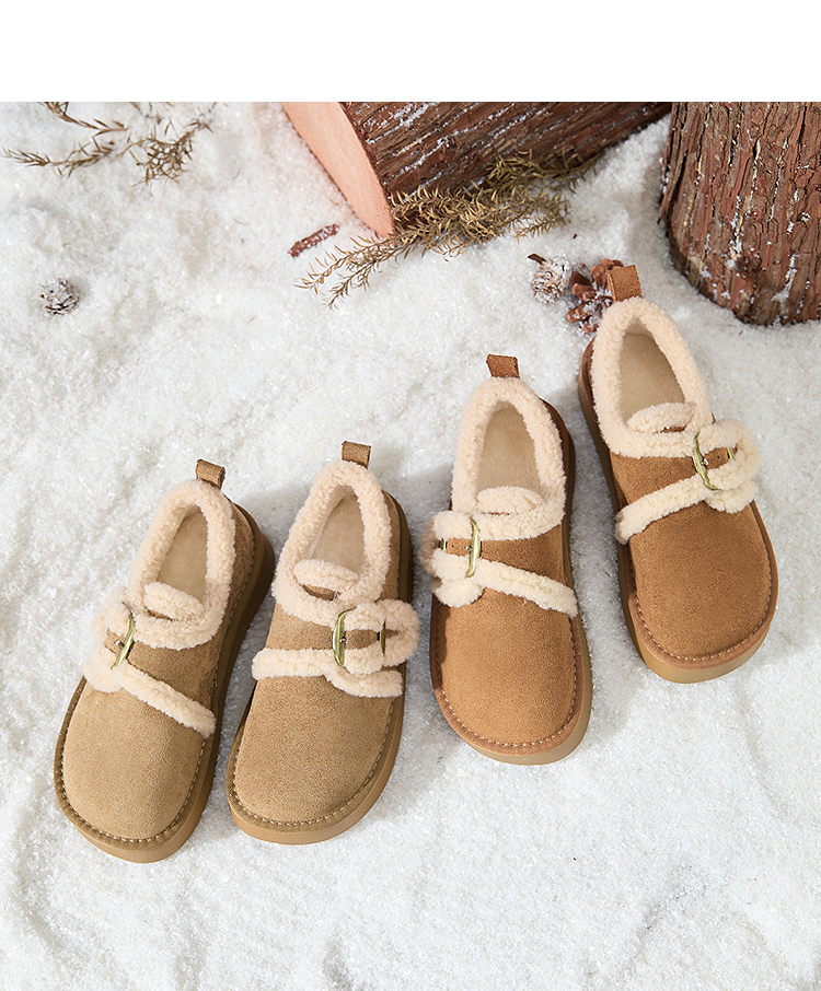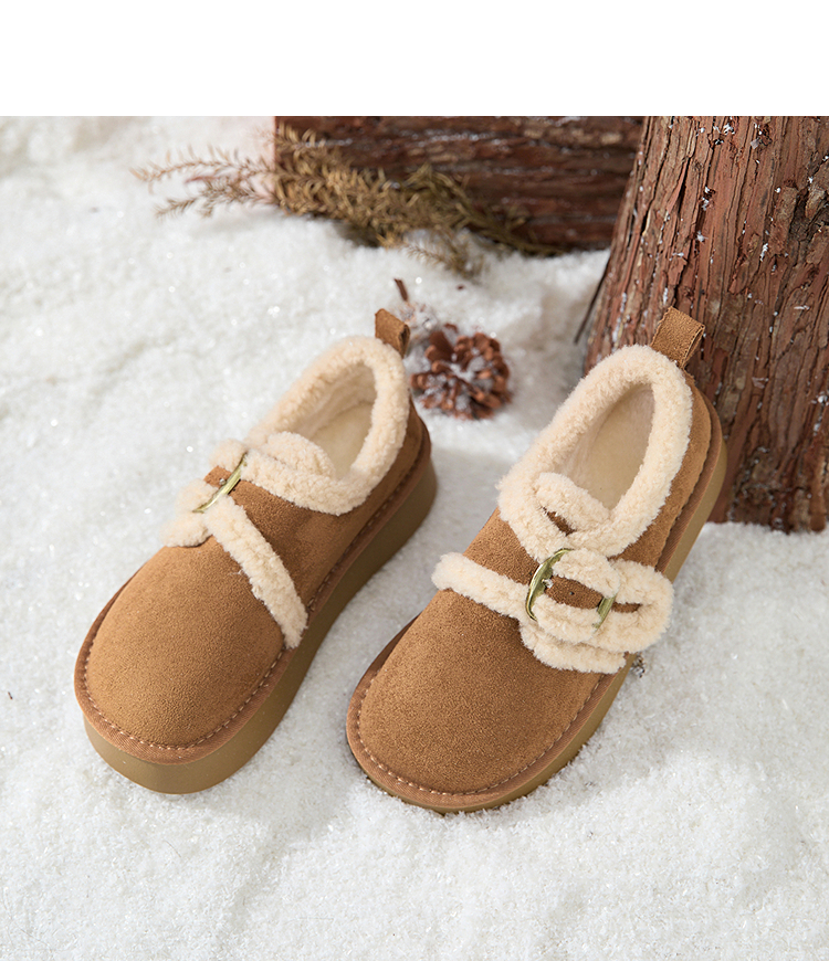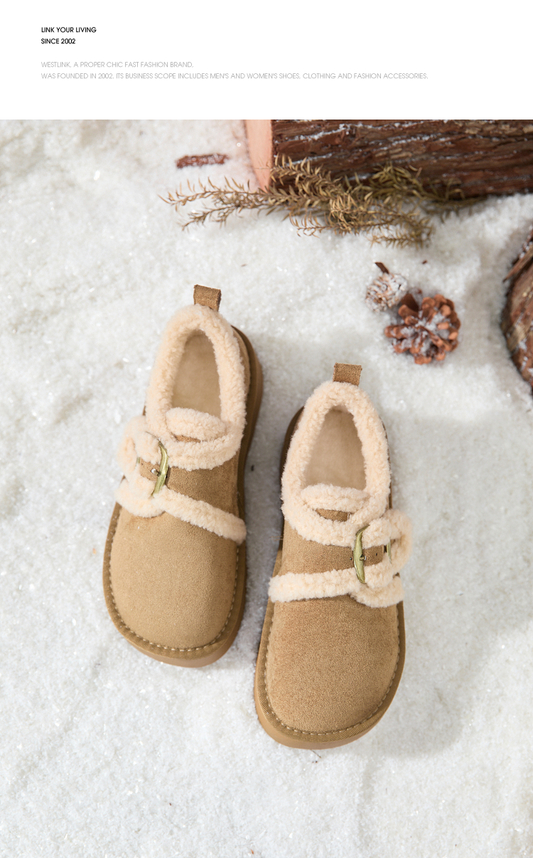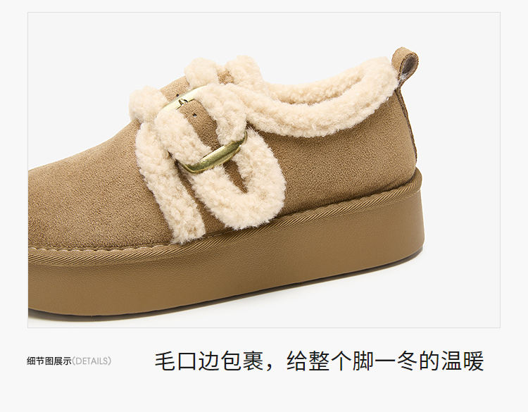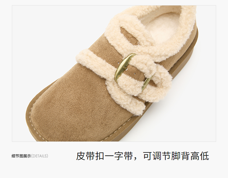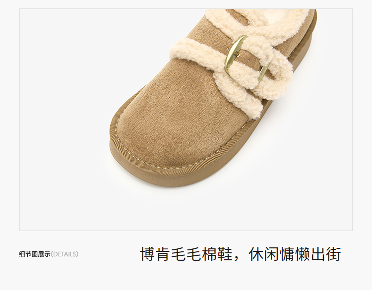 西遇加绒勃肯鞋女新款秋冬复古外穿毛毛鞋一脚蹬厚底雪地靴V2257295