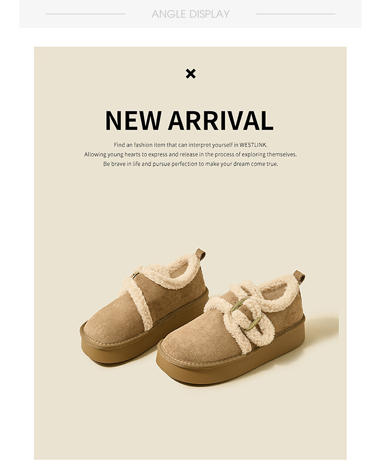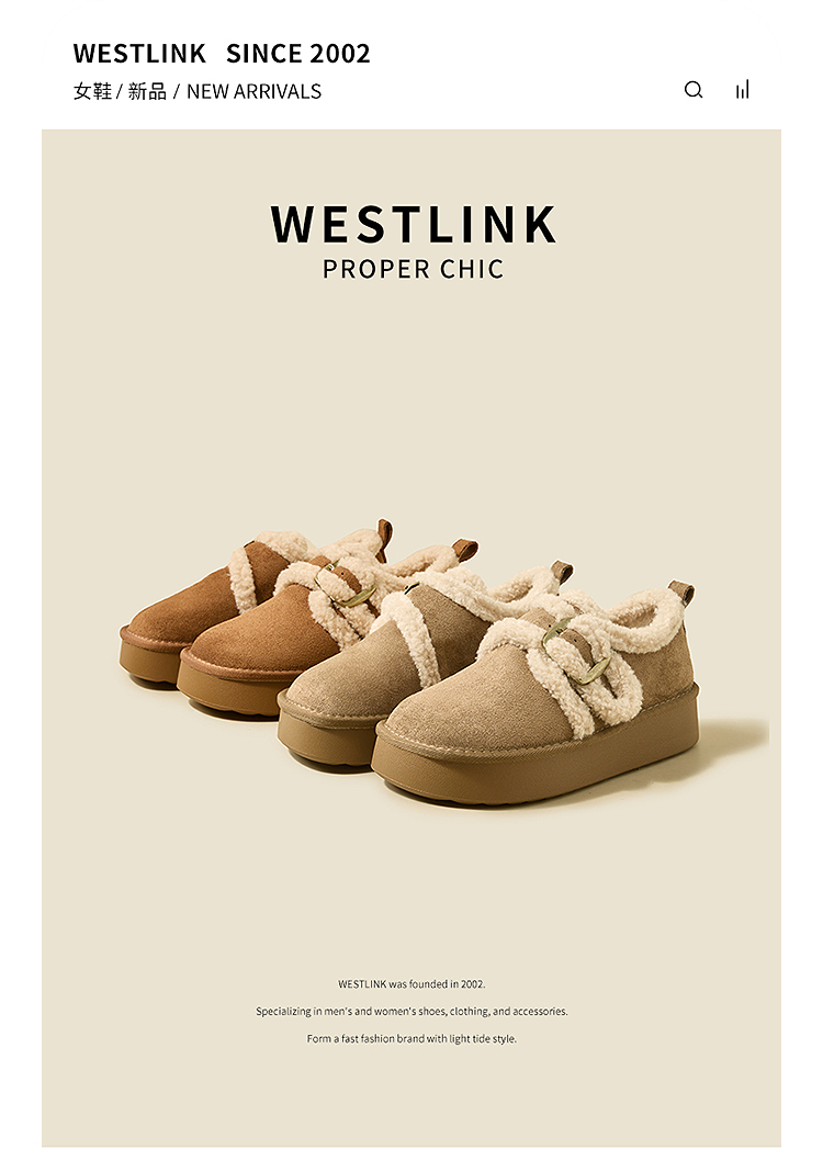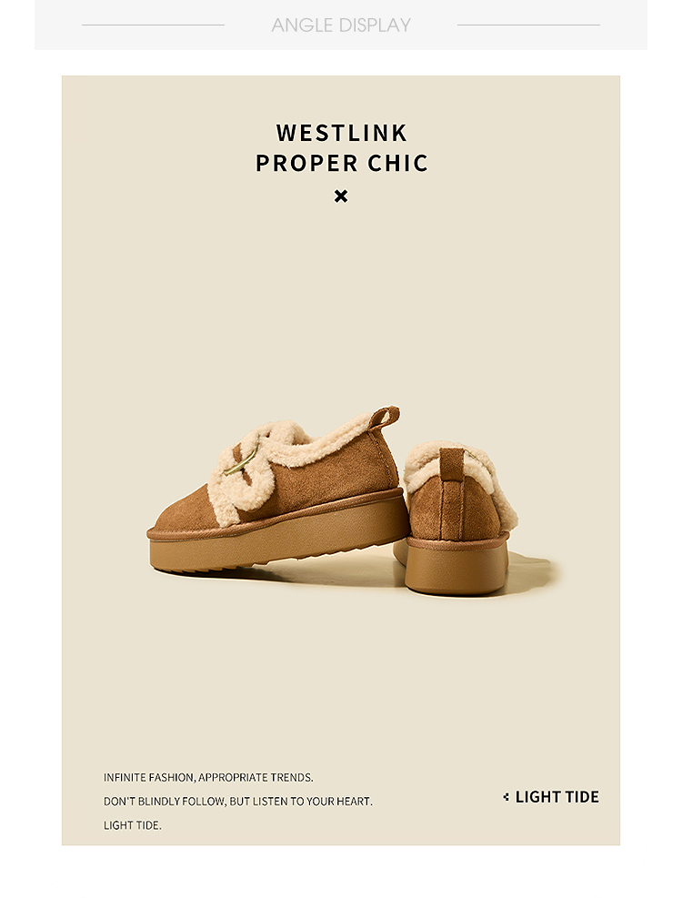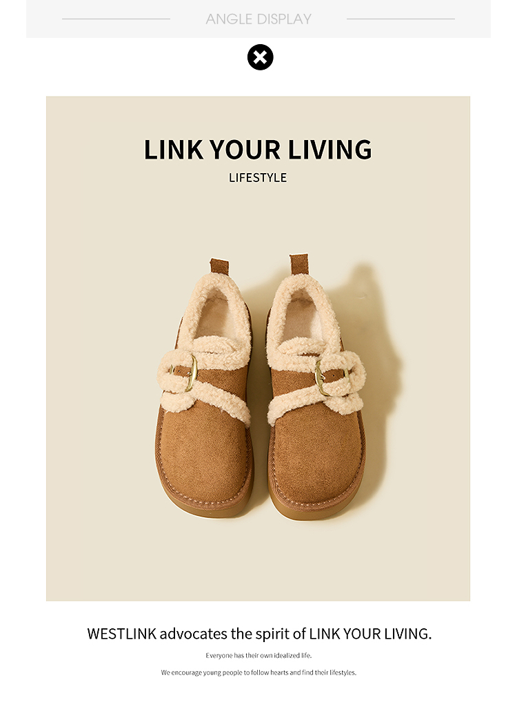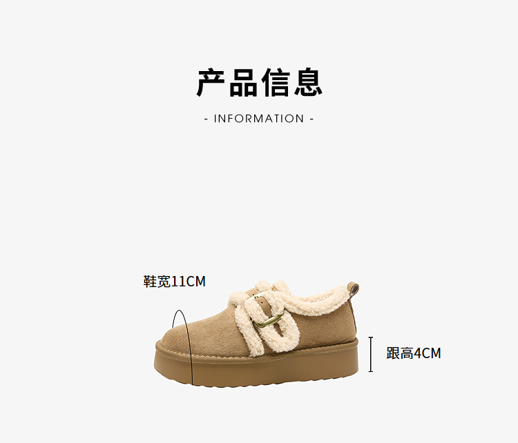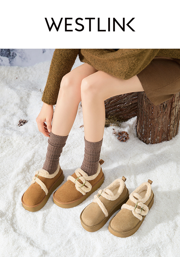 西遇加绒勃肯鞋女新款秋冬复古外穿毛毛鞋一脚蹬厚底雪地靴V2257295