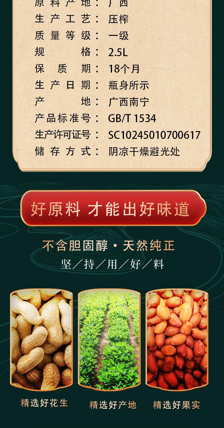 花家盛世 浓香花生油2.5L 优质原料红皮花生 HJSS008