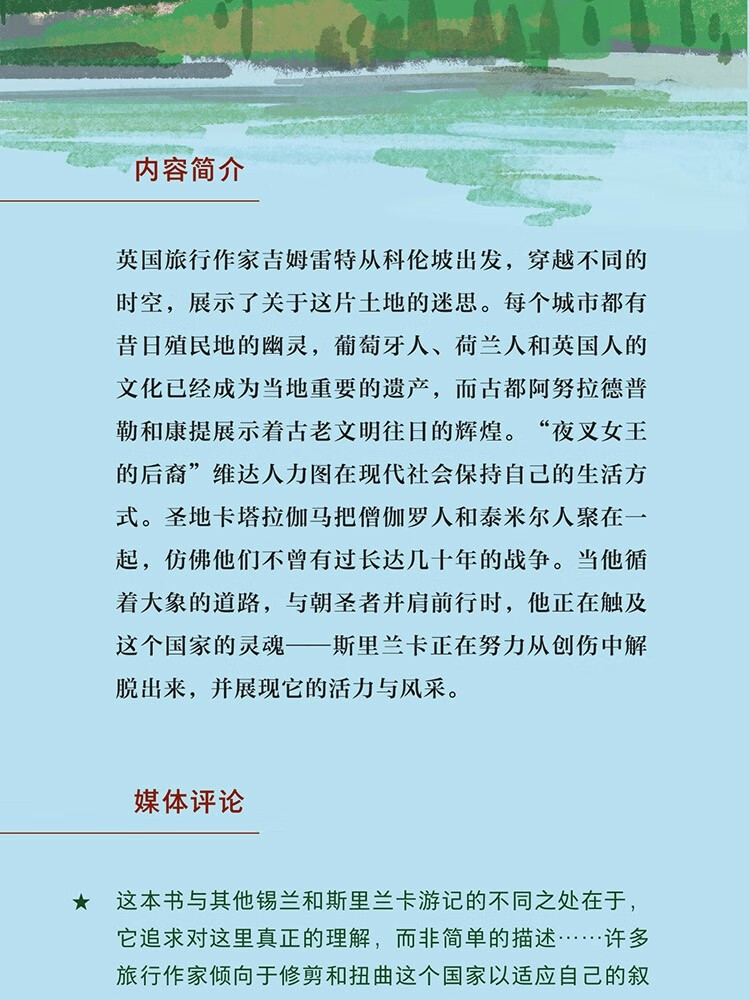 很难想象在漫游这座岛屿和探究斯里兰卡的风云变幻时能有一位更敏锐和更富有同情心的伙伴……吉姆雷特的文字精妙、新颖,充满激情。