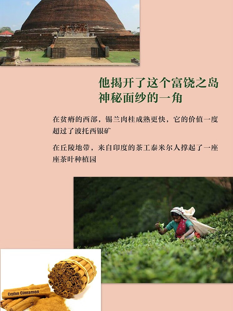 ※他倾听不同的声音,触摸到了这个国家的脉搏:从伦敦的泰米尔人社区到战火不断的天堂之岛——斯里兰卡精英的“小英国”,从狮子的子民与大兴水利的国王们到禁火区的炮火,这是一部结合旅行、历史和现场调查的非虚构佳作
