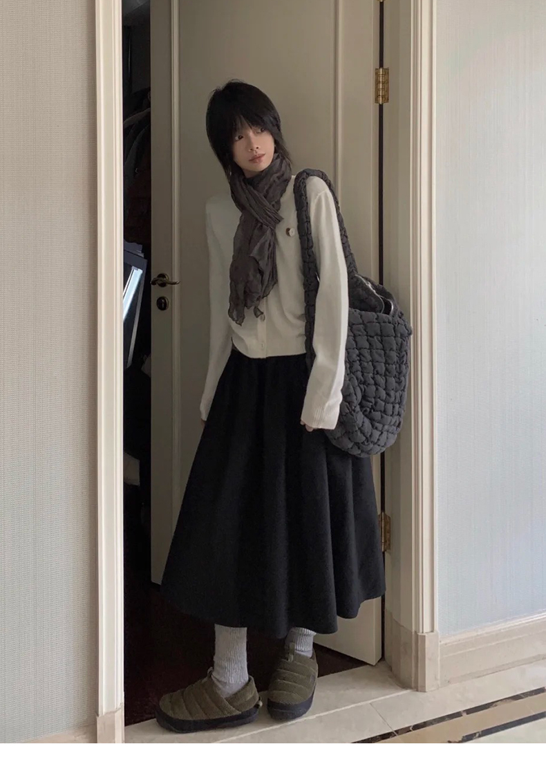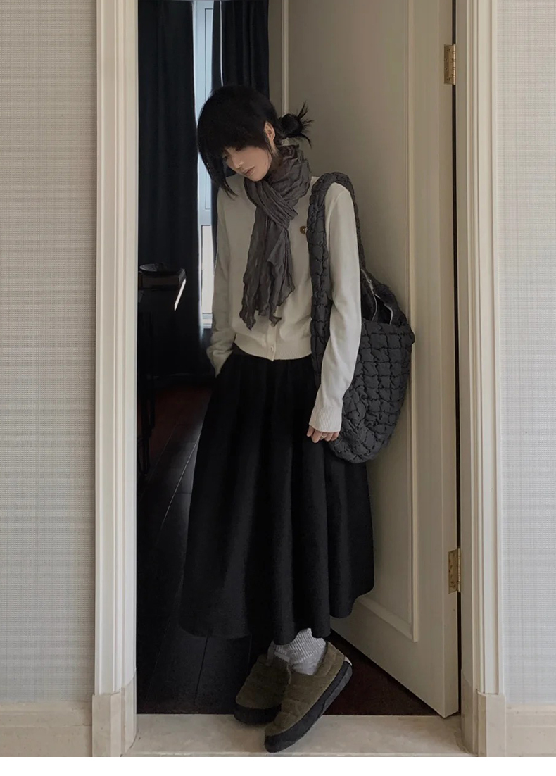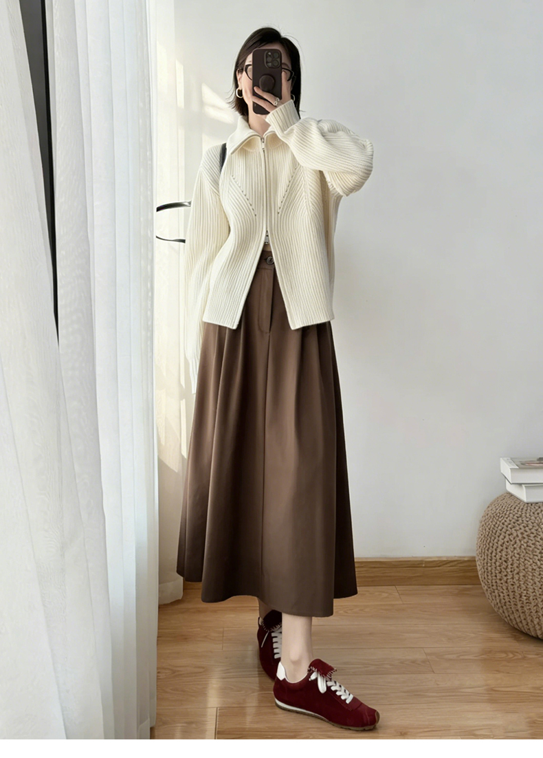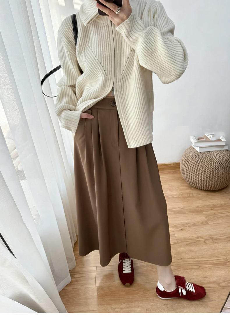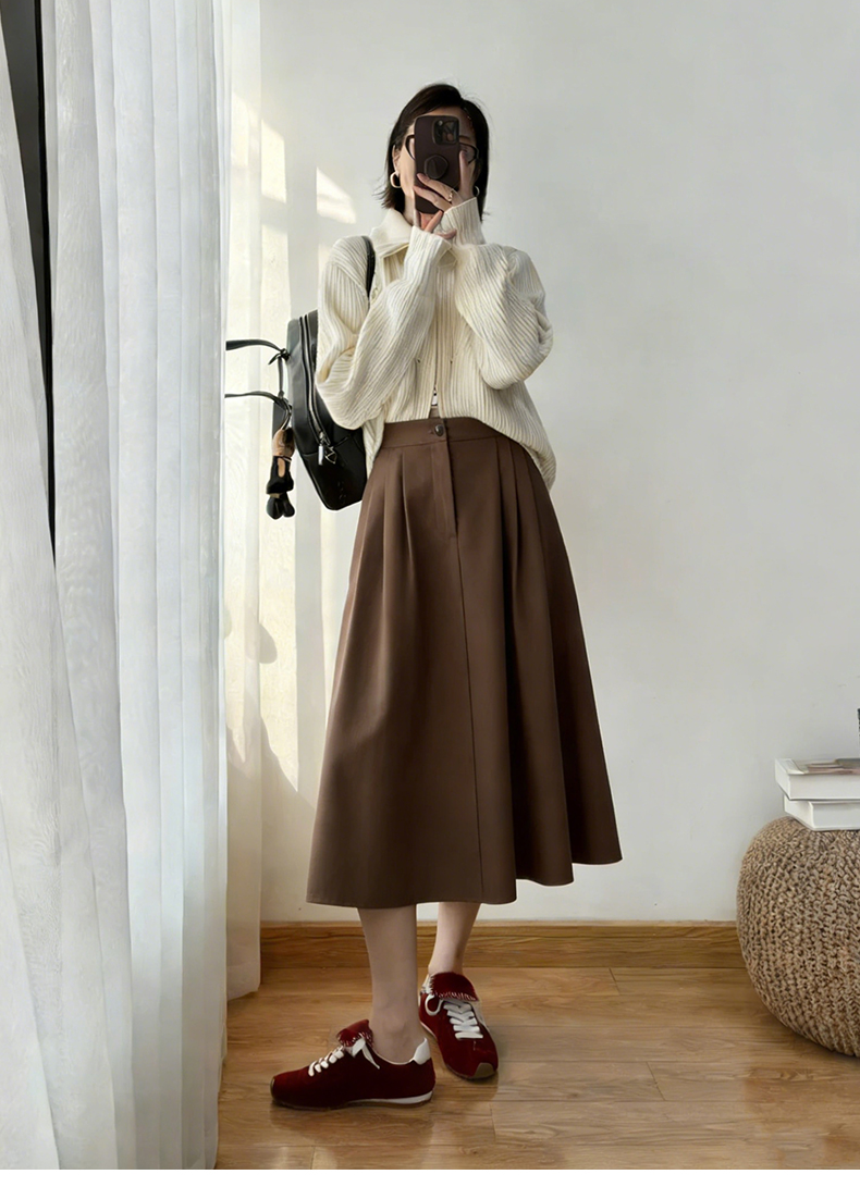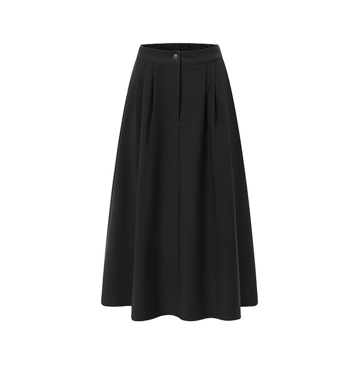 天猫同步【好品质超模质感】拉夏贝尔/La Chapelle立体捏褶高腰显瘦A字长款半身裙~垂感不易皱