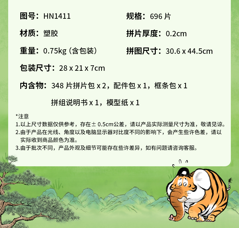 696片 无框塑料拼图 HN1411 我不是胖虎-百变动物园