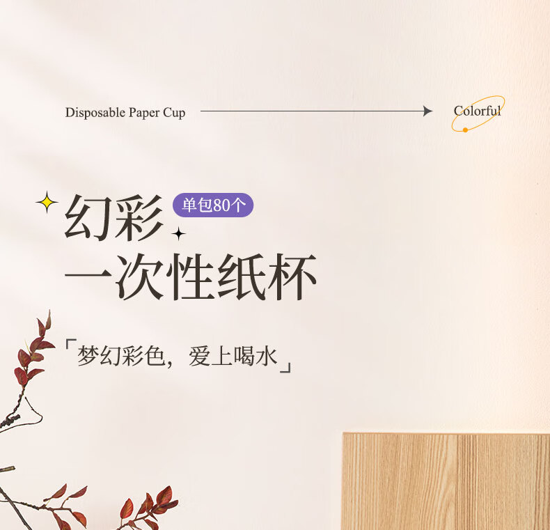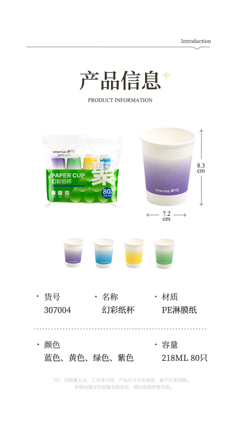 茶花 307004幻彩纸杯218mL80只 2袋装