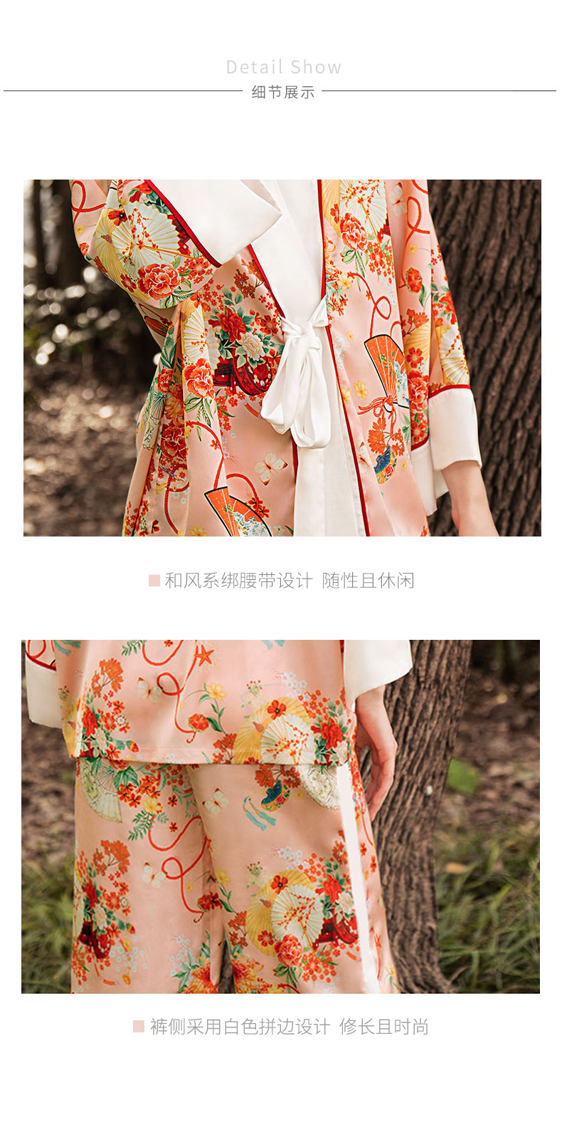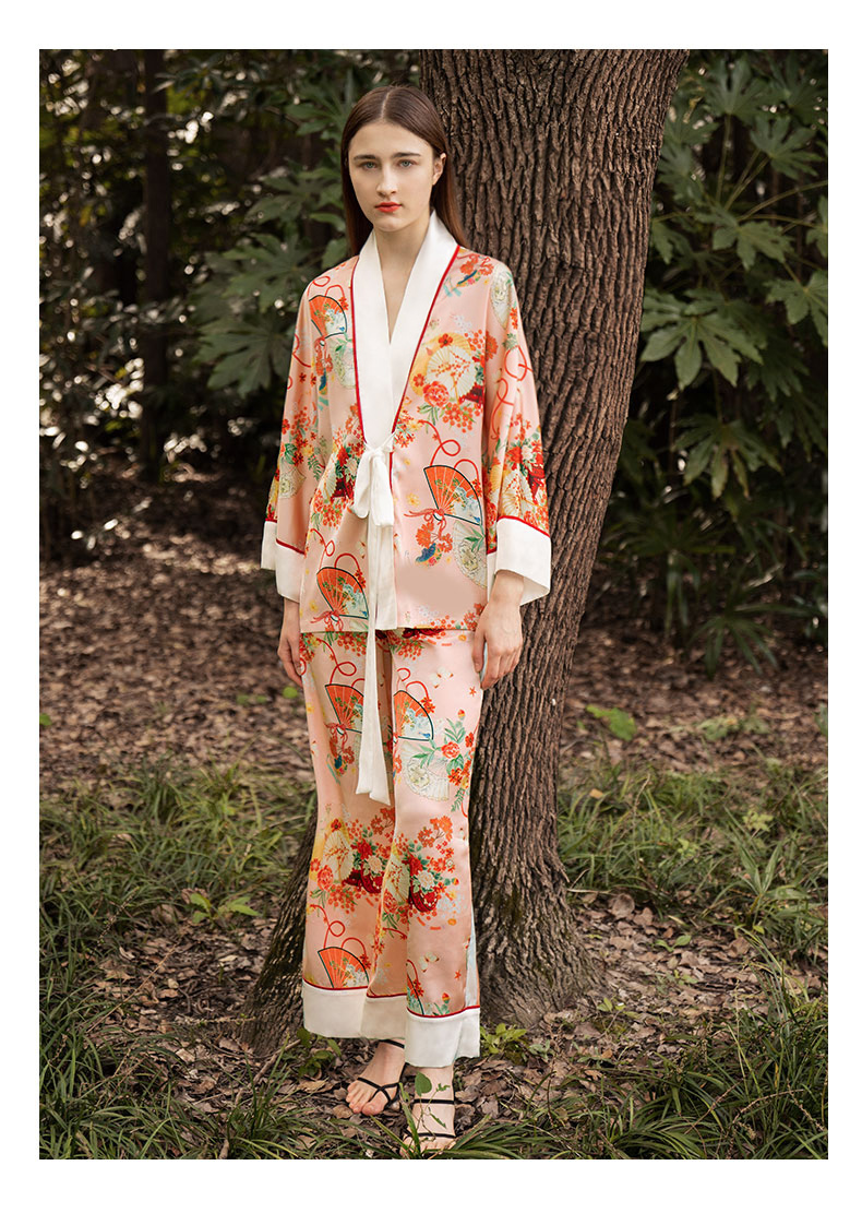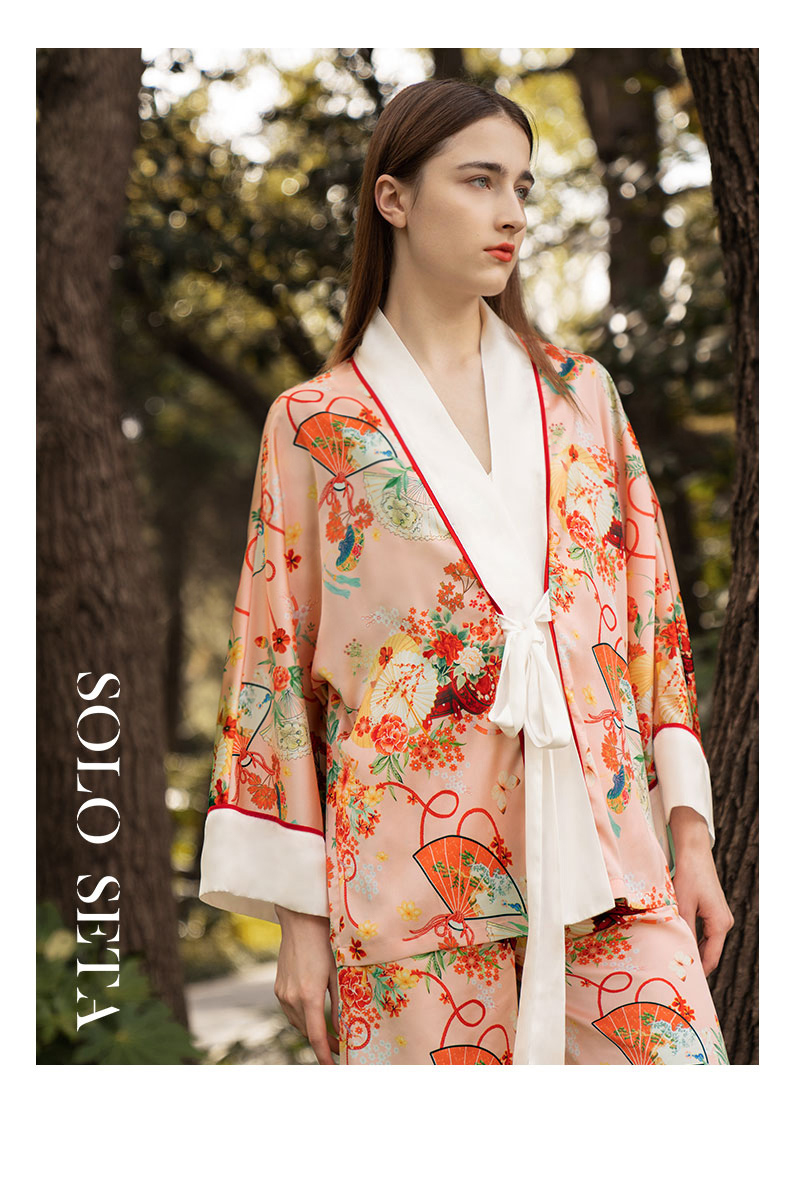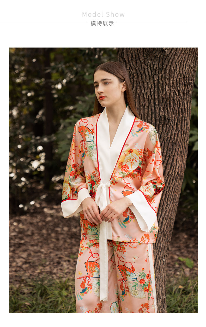 Solo seta真丝睡衣套装女桑蚕丝长袖家居服碎花系带奢华原创
