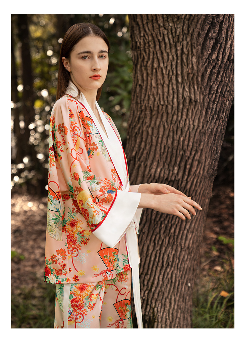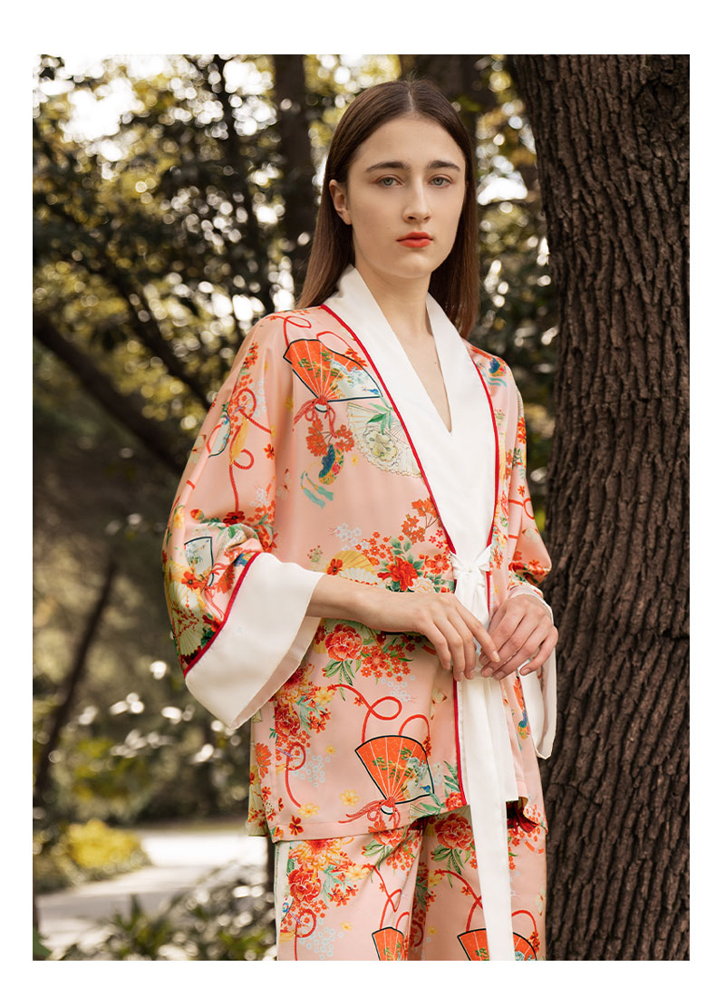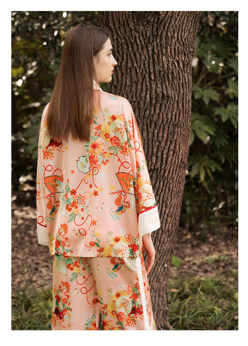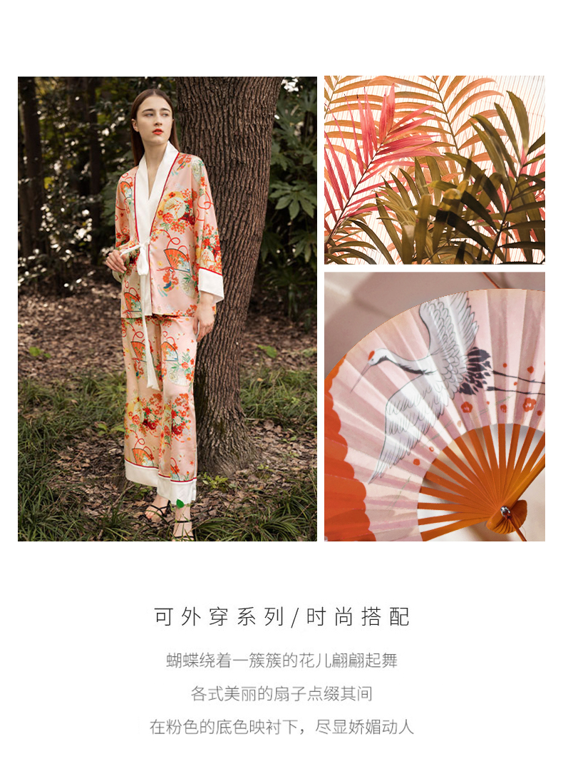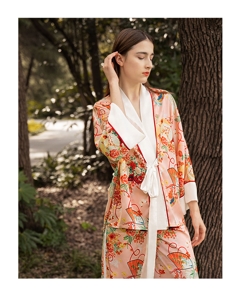Solo seta真丝睡衣套装女桑蚕丝长袖家居服碎花系带奢华原创