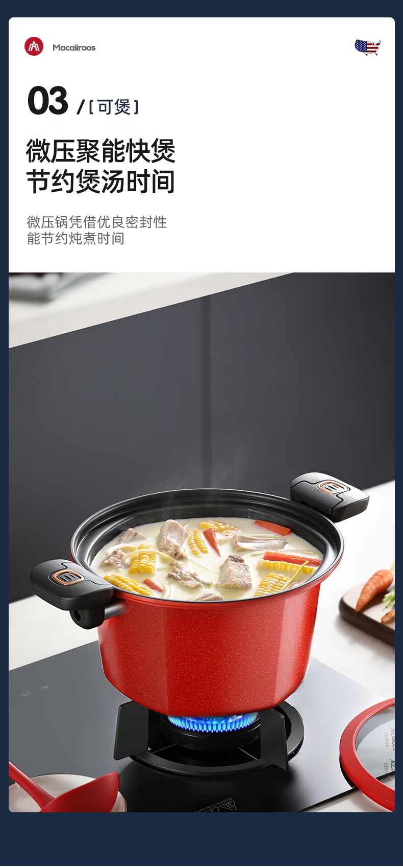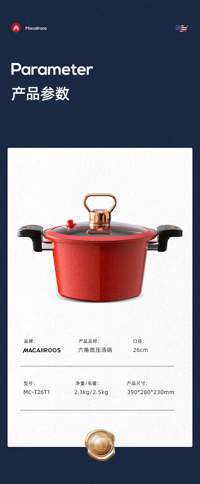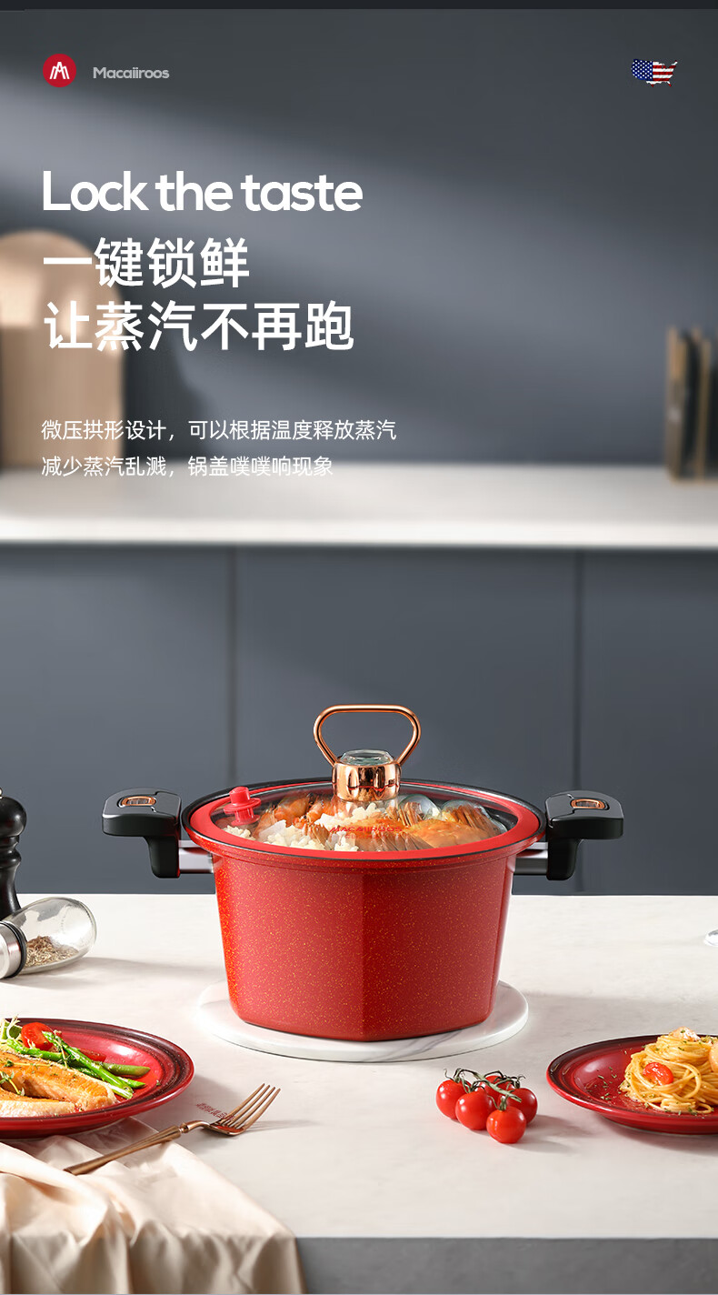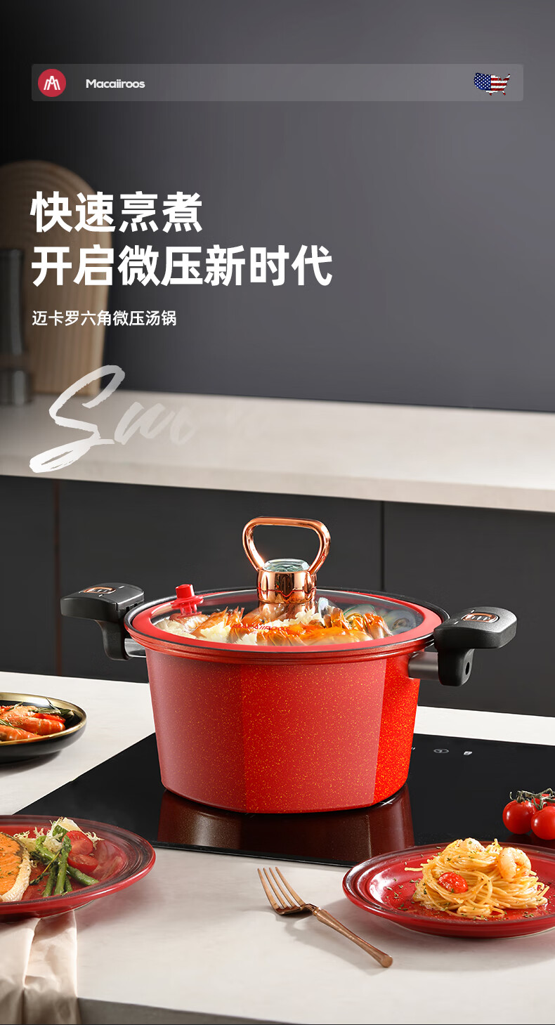 迈卡罗 六角微压锅 家用不粘锅燃气灶 5.5L MC-T26T1
