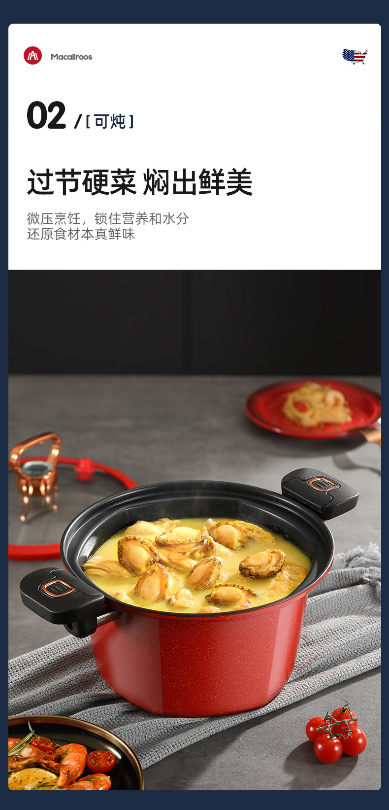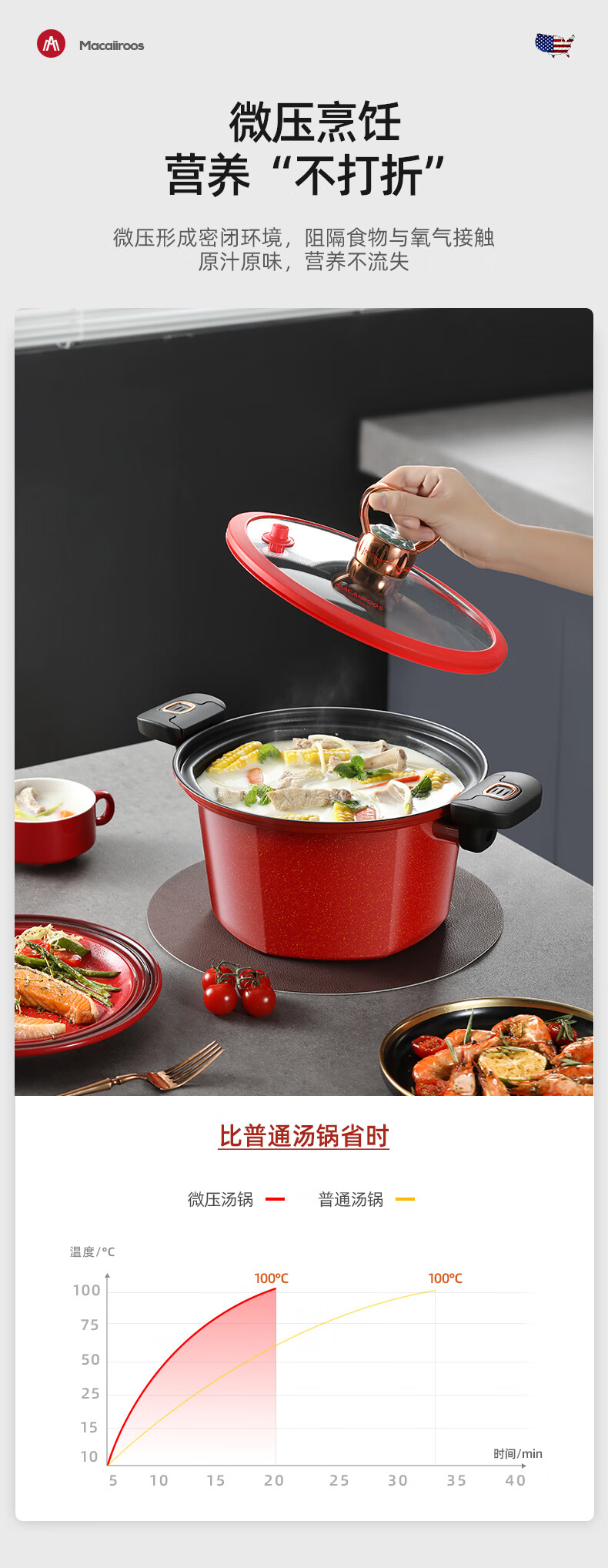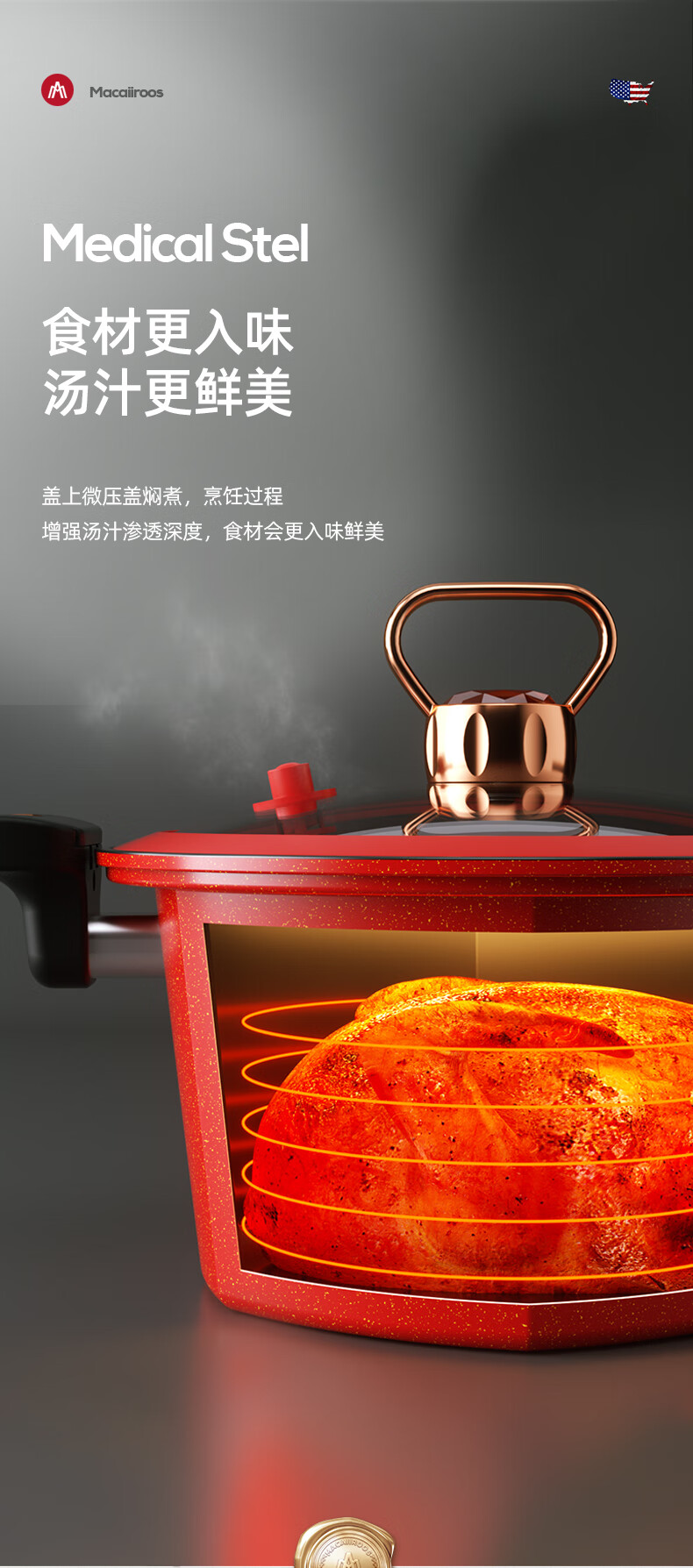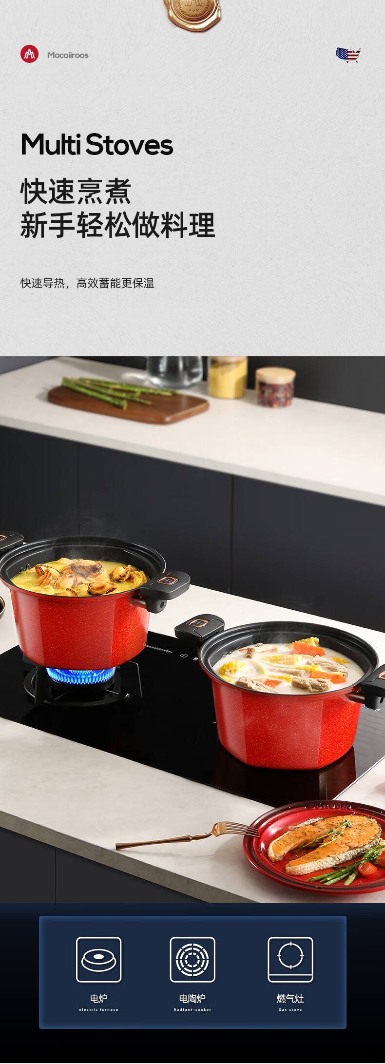 迈卡罗 六角微压锅 家用不粘锅燃气灶 5.5L MC-T26T1
