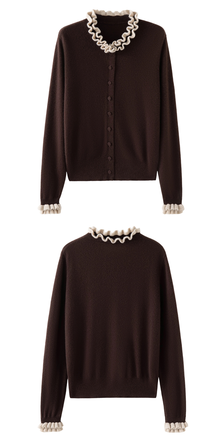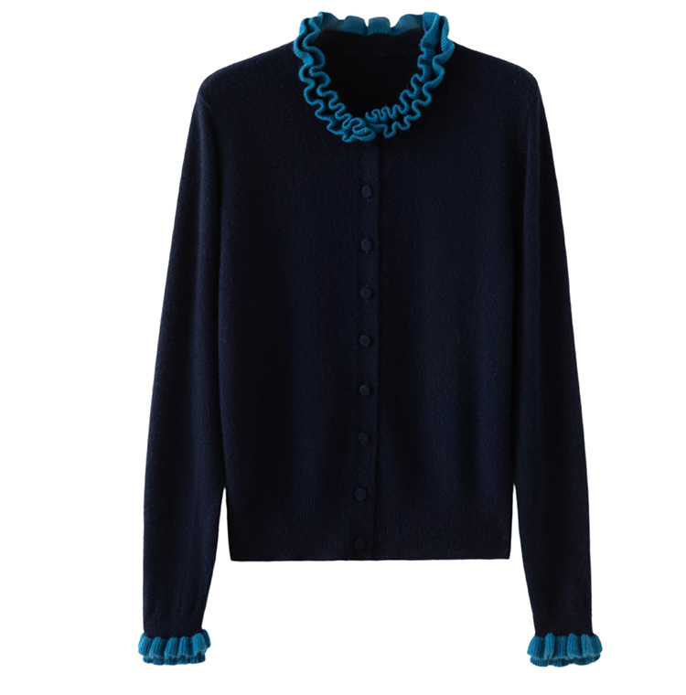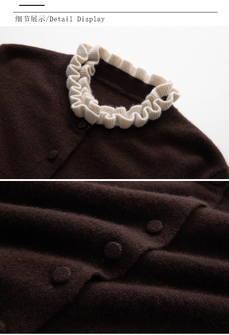 羊绒老钱风常规拼接纯色女士小香风针织上衣