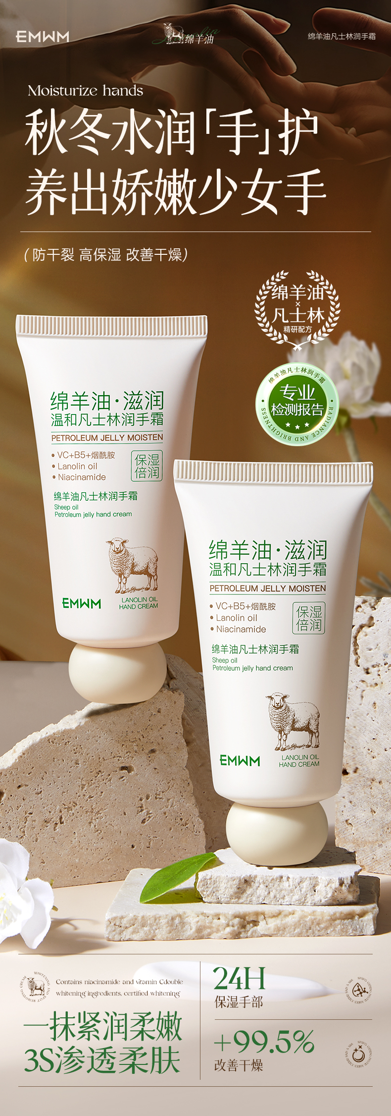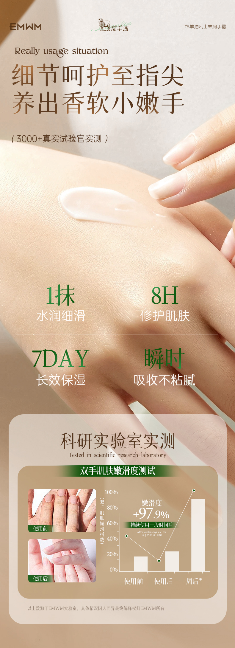 优选丨【秋冬保湿三件套】EMWM绵羊油/润手霜/唇油 深层补水保湿 质地轻盈不厚重 清爽不粘腻【护手霜50g 唇油10ML 身体乳500ML】