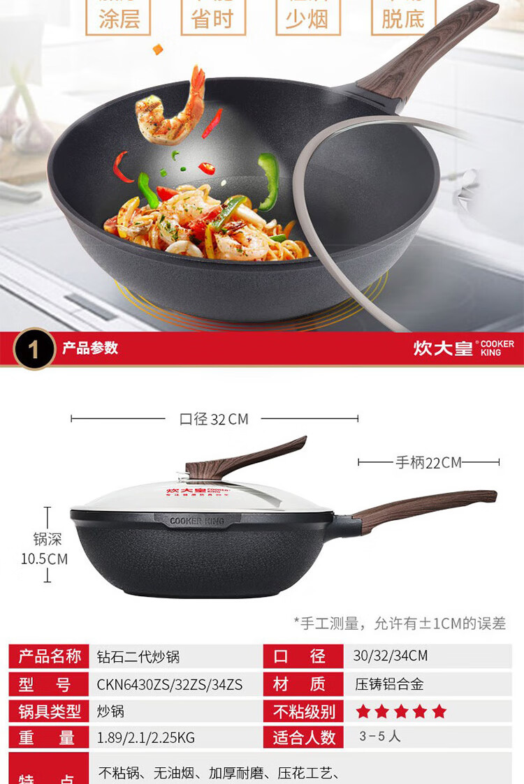 炊大皇 钻石二代炒锅32cm CKN6432ZS