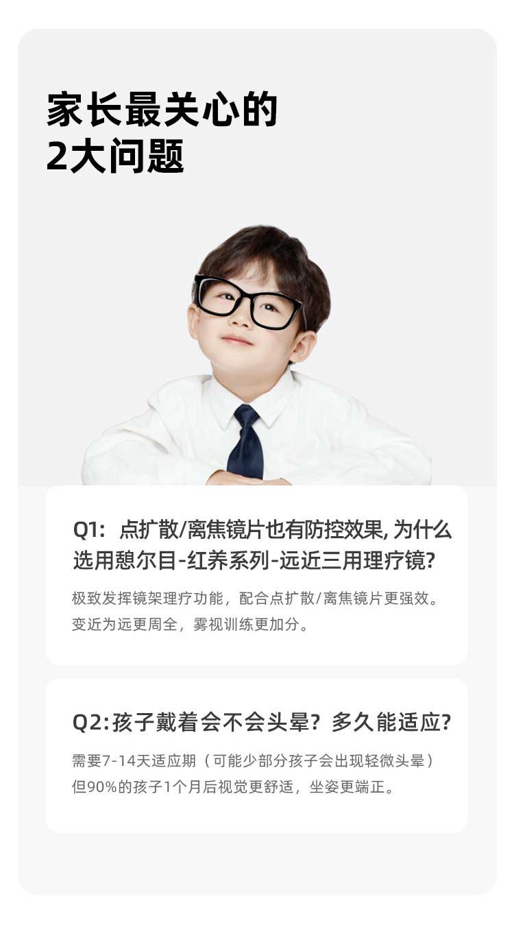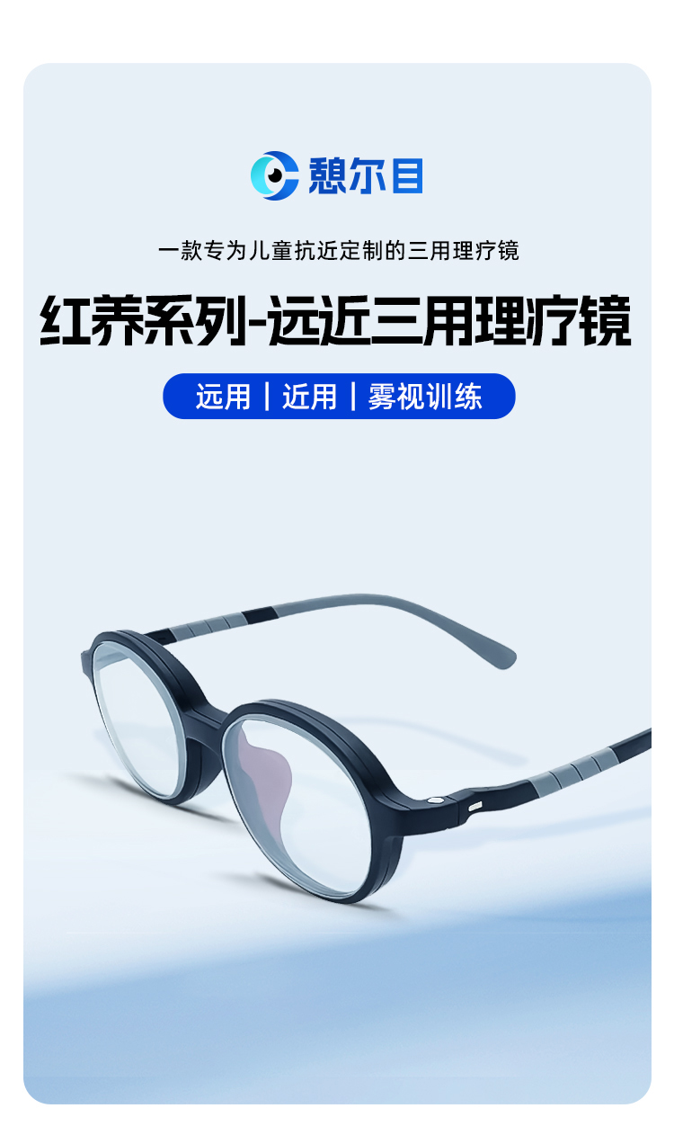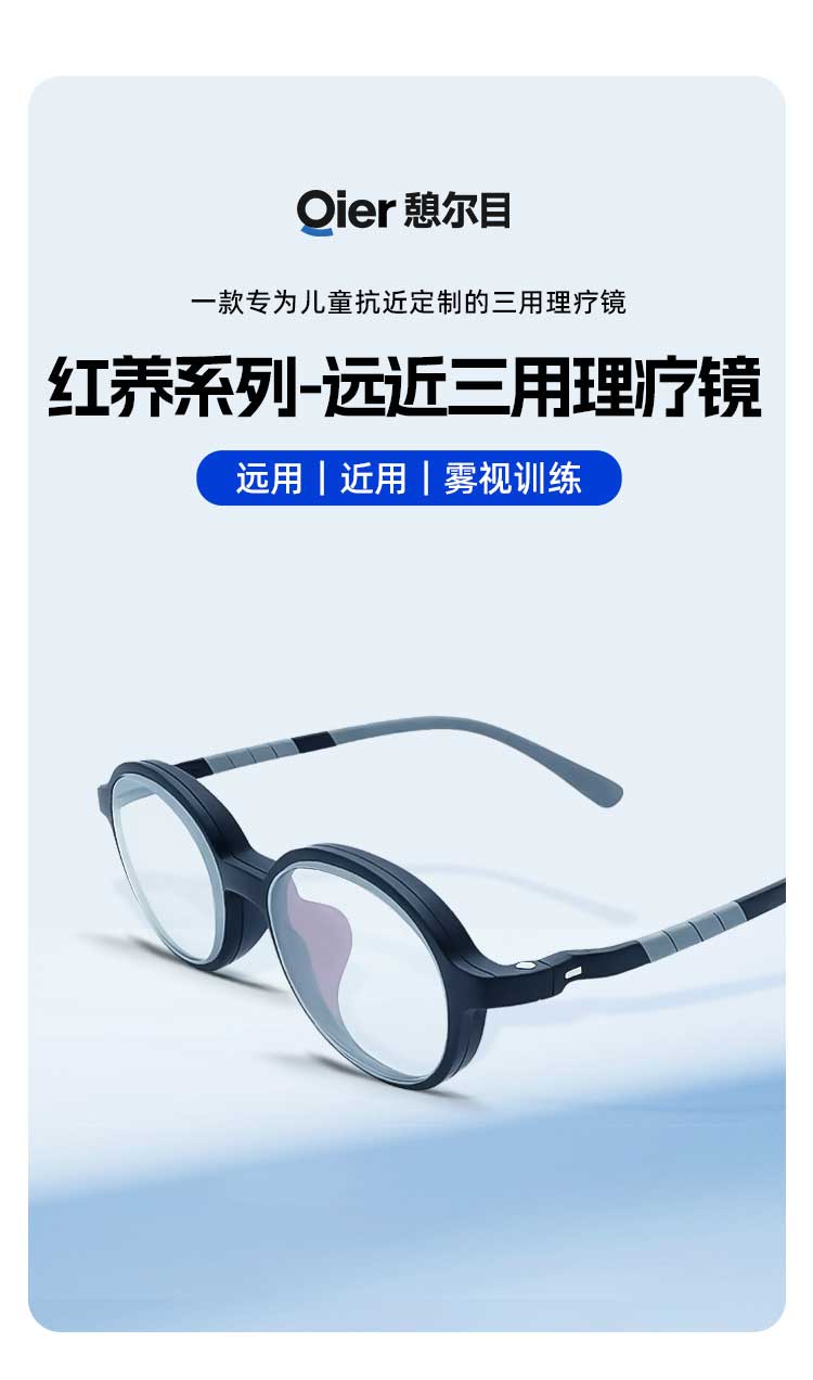 憩尔目 红养远近三用理疗镜 儿童眼镜 远用、近用、雾视训练
