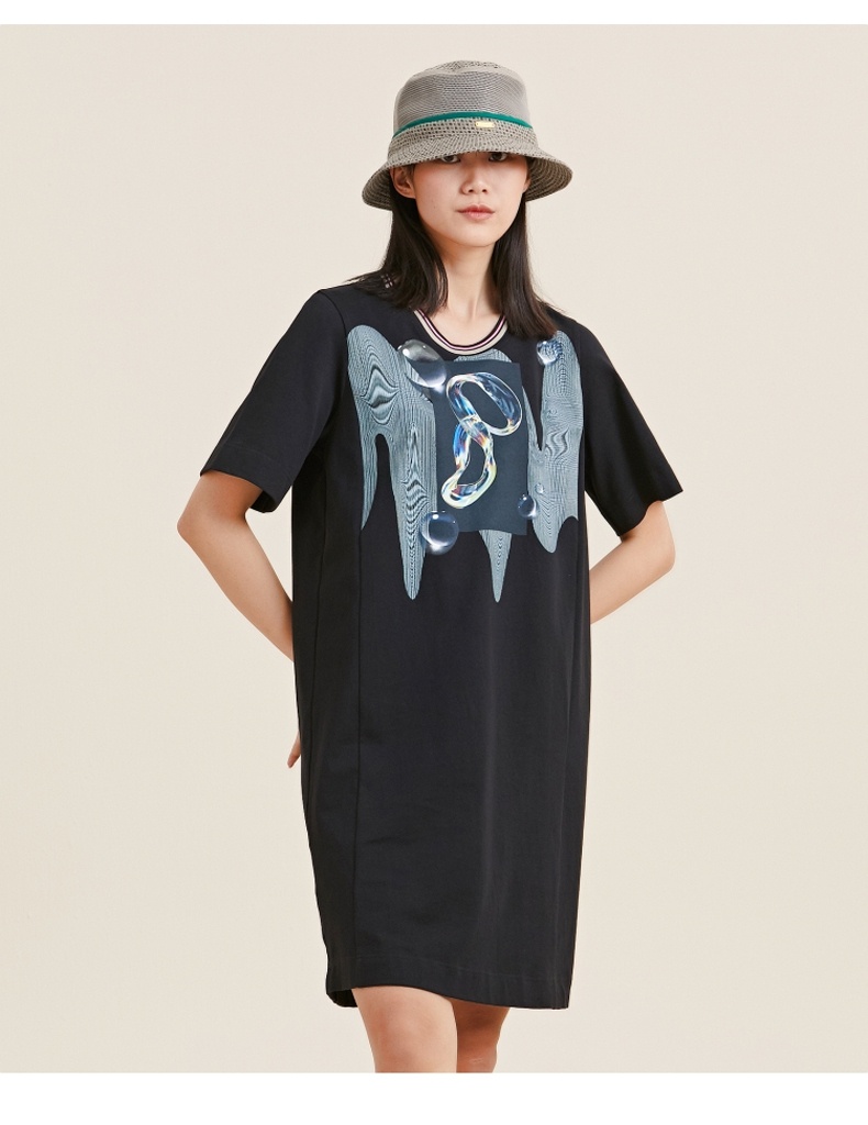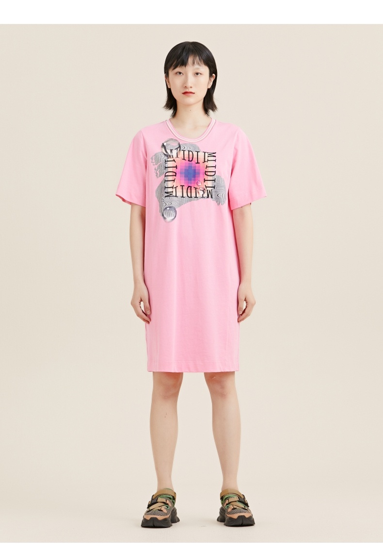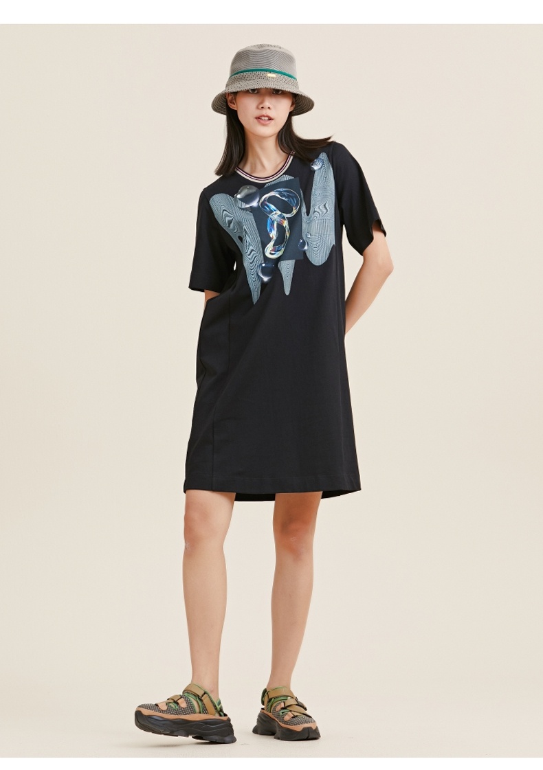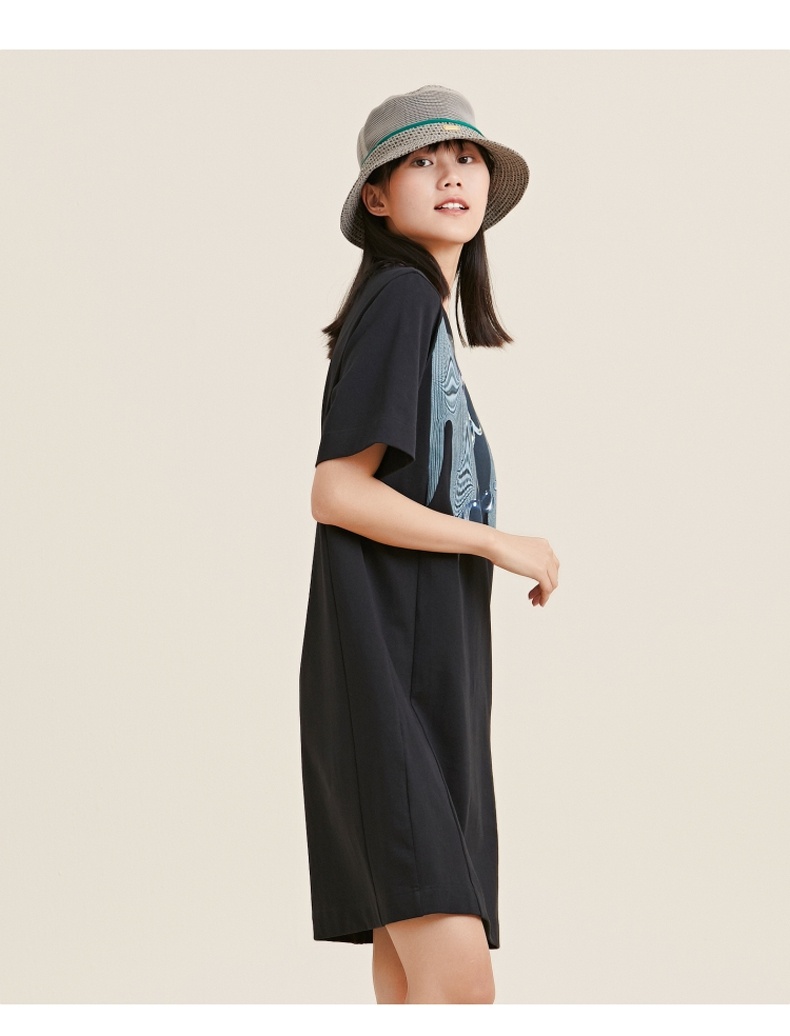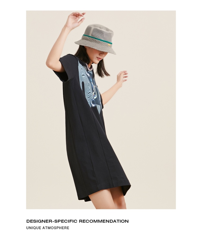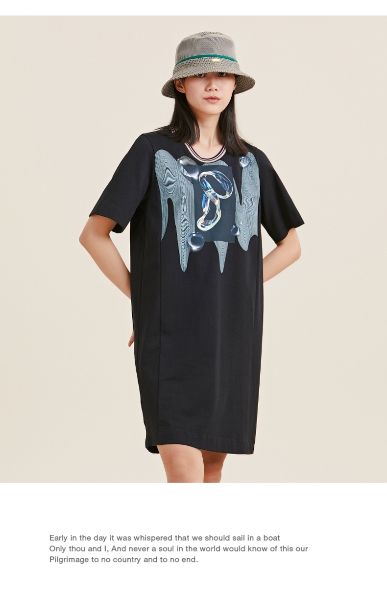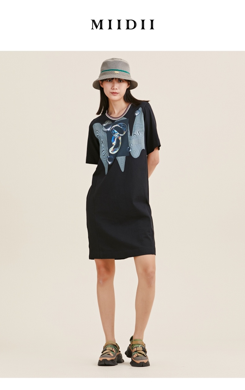 MIIDII/谜底纯棉连衣裙21夏新H型圆领图案印花闺蜜装212ML0881