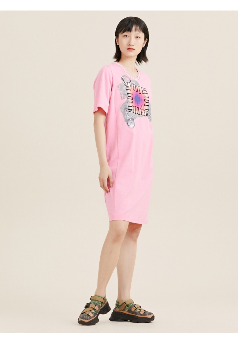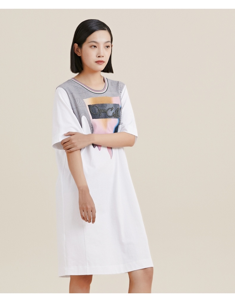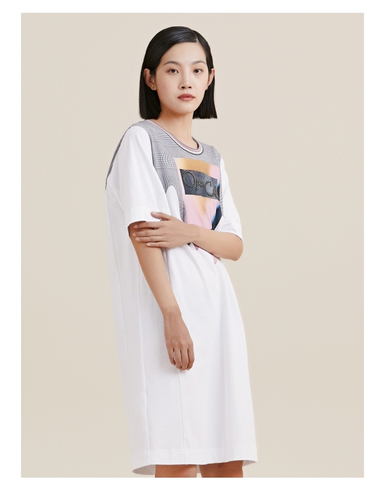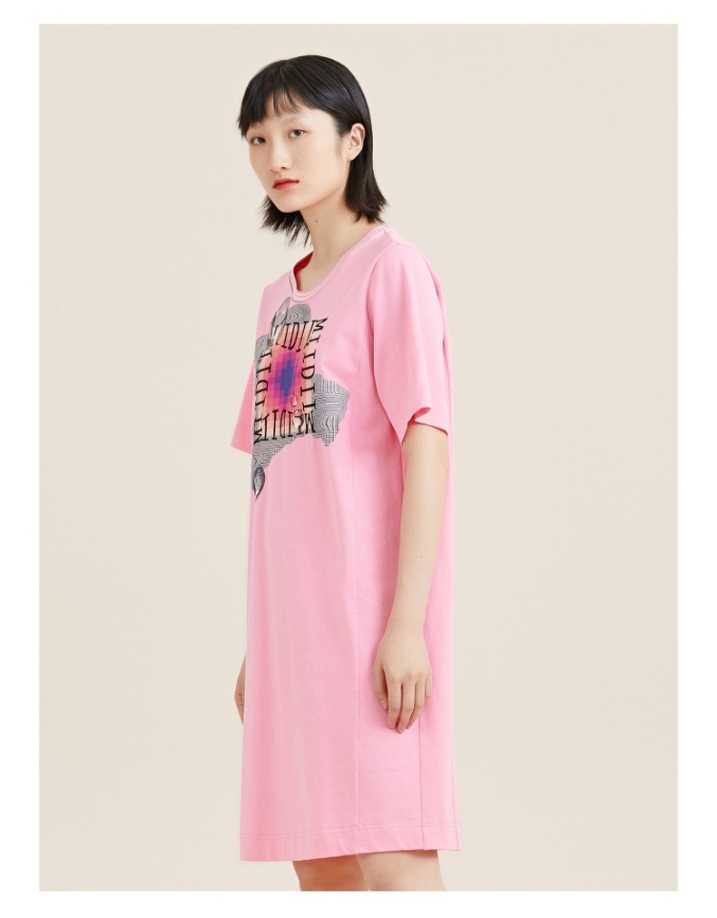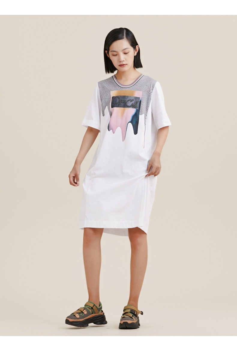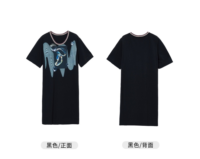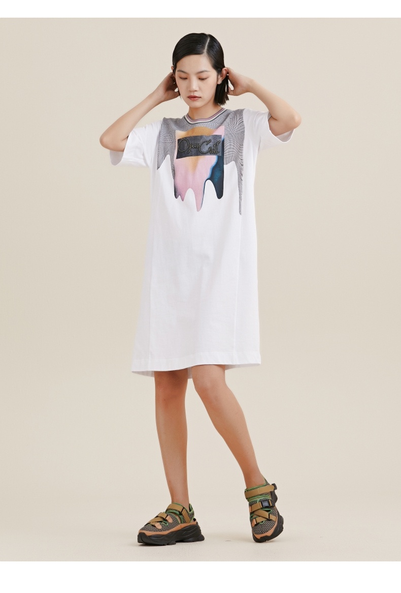 MIIDII/谜底纯棉连衣裙21夏新H型圆领图案印花闺蜜装212ML0881