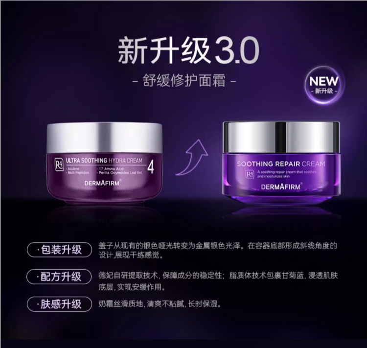 第三就是面霜肤感再度升级,肤感更加清爽不粘腻!,