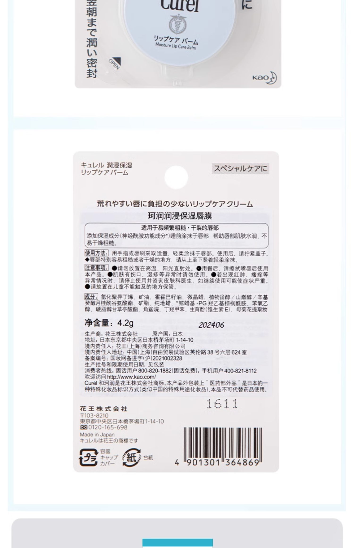 Curel/珂润 润浸保湿唇膜 4.2g【保质期:2025年7月28日】