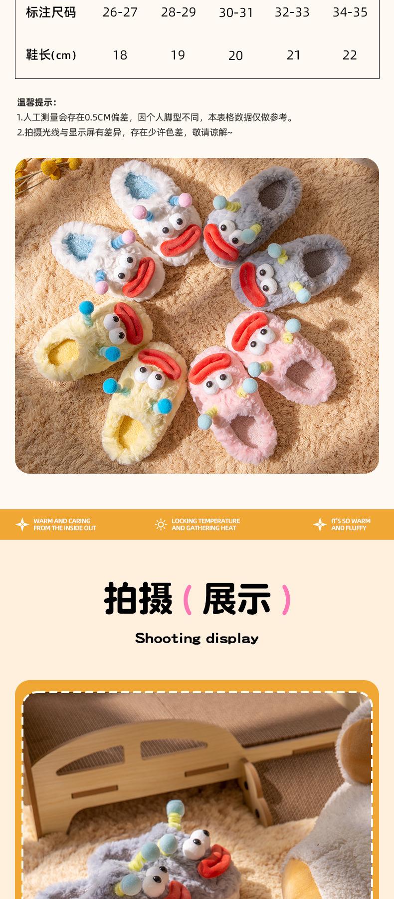 【可爱搞怪儿童棉拖鞋】秋冬季室内防滑保暖一家三口毛绒棉拖鞋